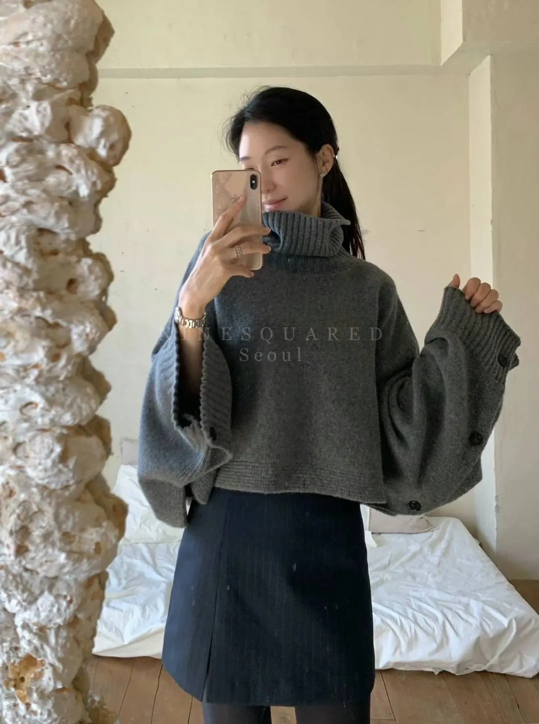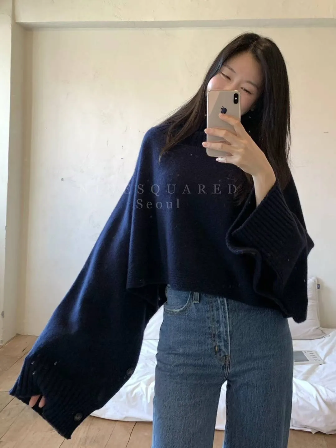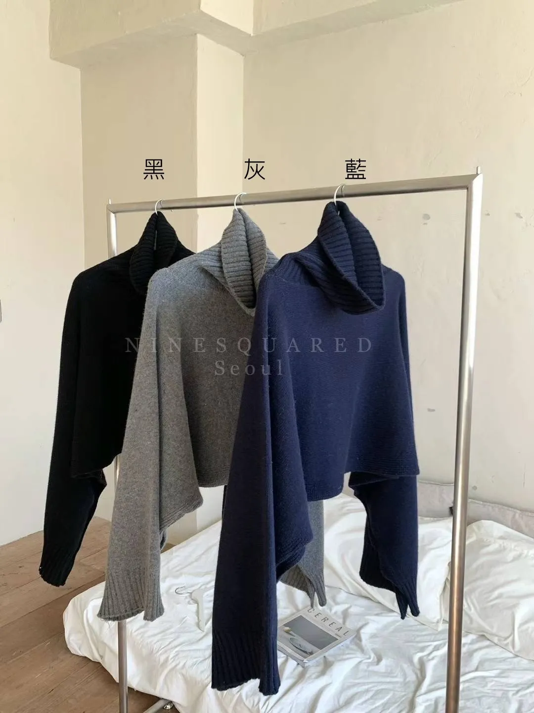 美麗諾羊毛+喀什米爾+尼龍 大寬寬飛鼠袖設計 舒適高領