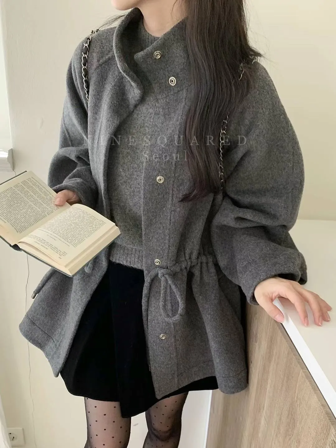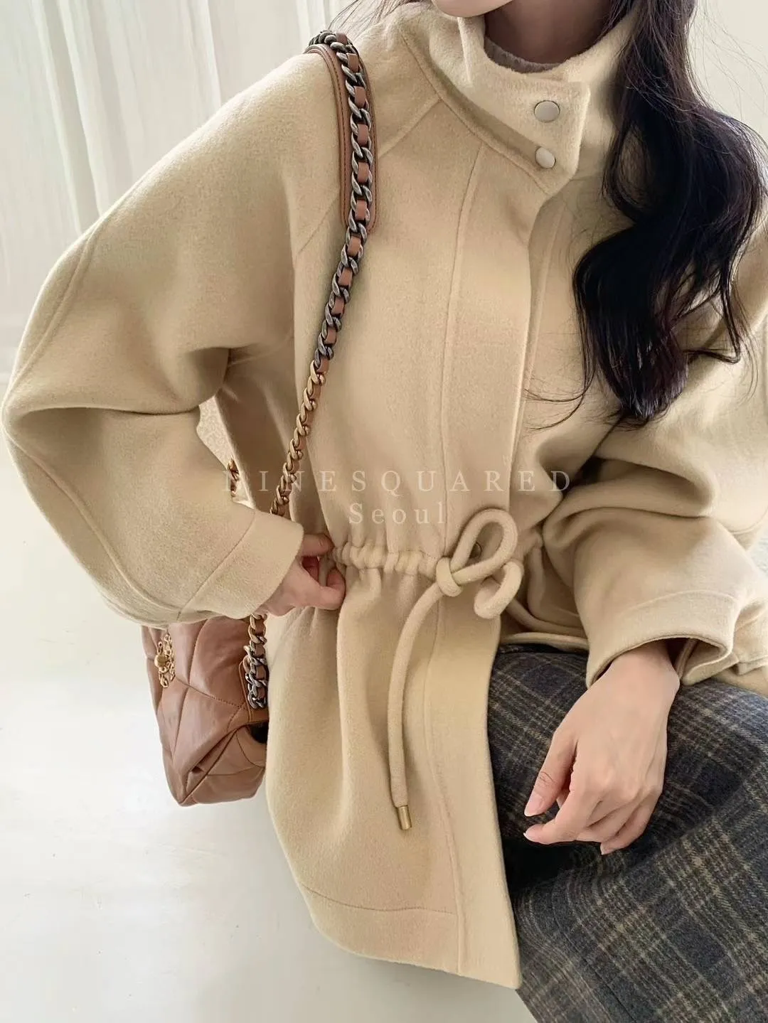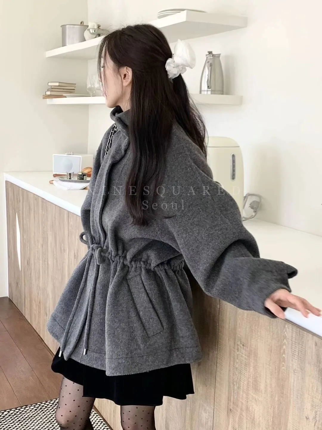 羊毛90%+尼龍 觸感舒適 細腰抽繩 壓釦穿脫 有口袋