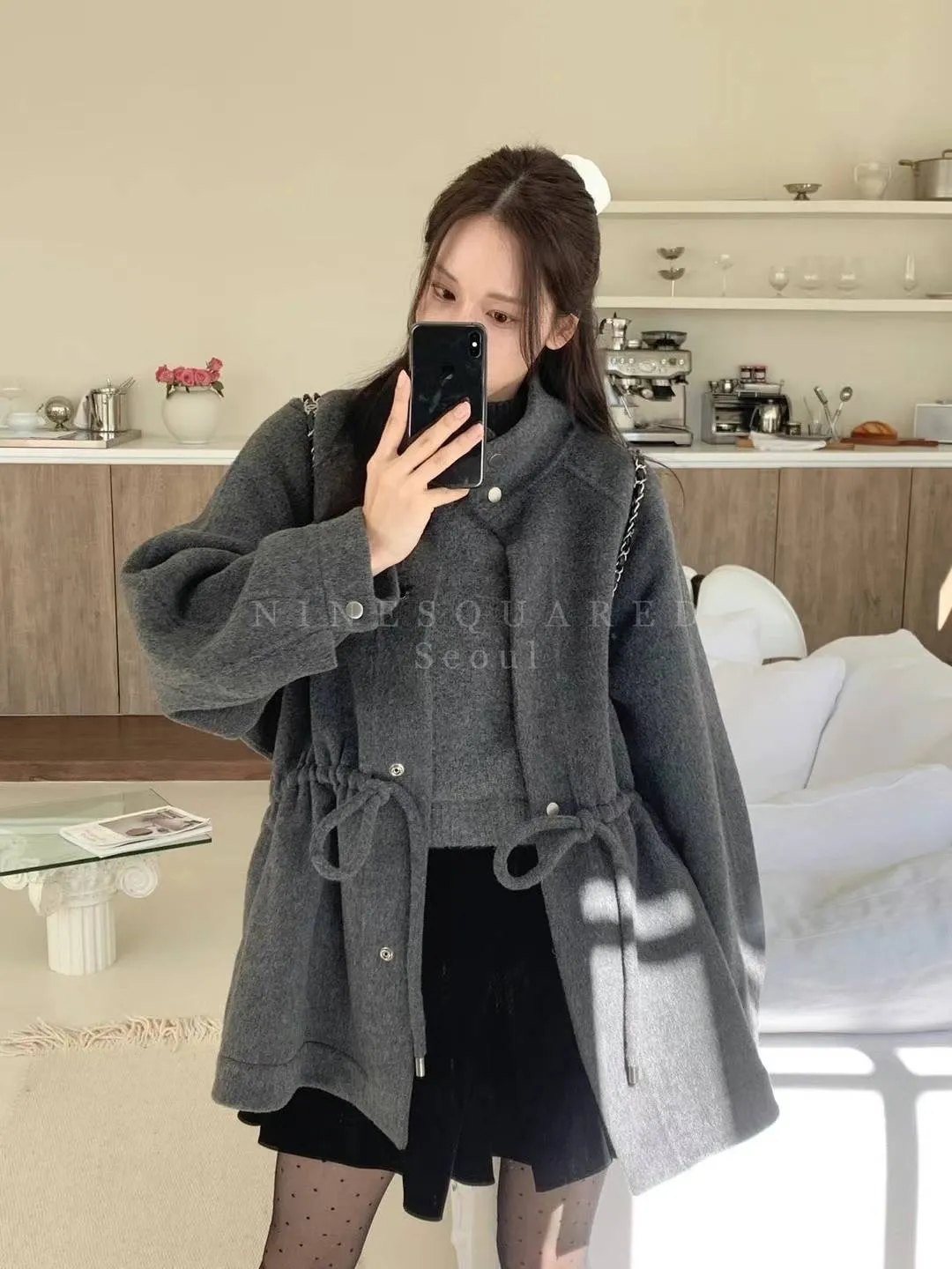 LV188推薦款細腰綁繩羊毛外套 灰 粉 奶茶 官網價$3880 線上價$3850