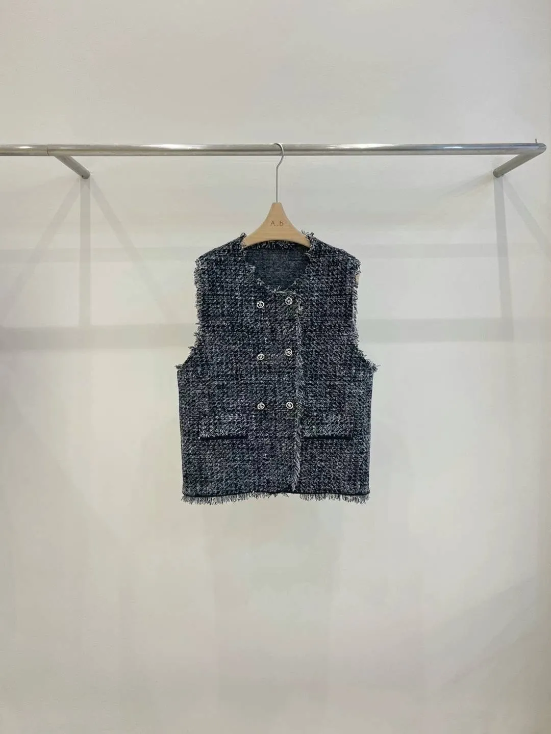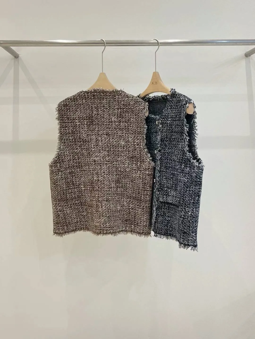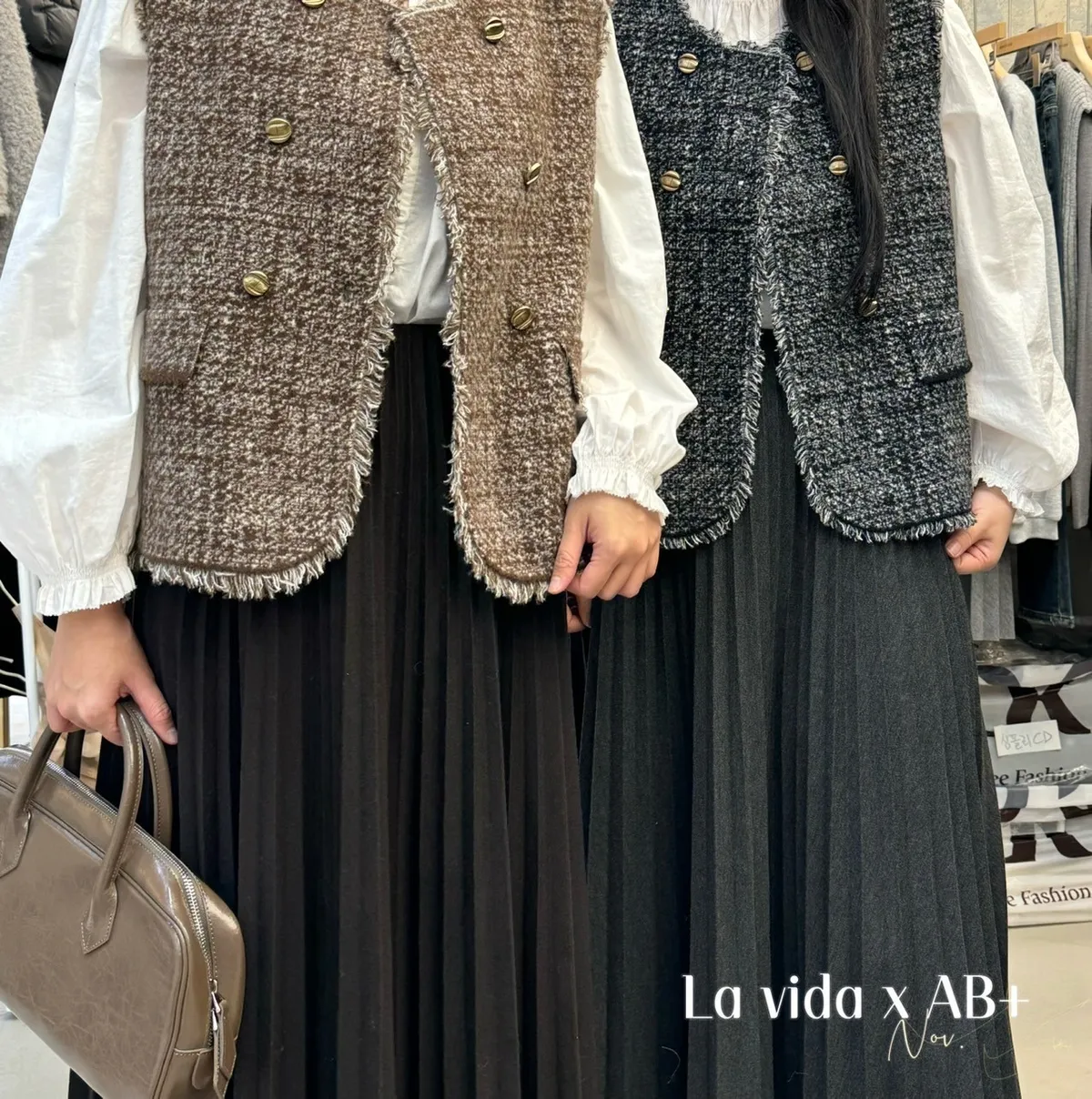 羊毛70%+聚酯 小香風千鳥織線 觸感高級 薄款柔軟 高級釦