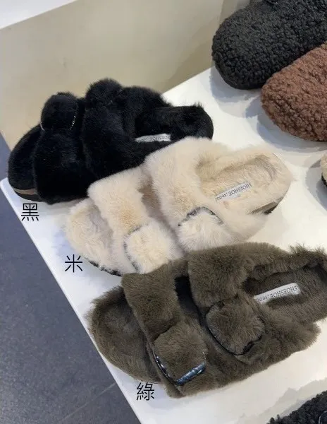 LV241雙橫柔軟順毛拖鞋 米 綠 黑 230-250(有半號) $930