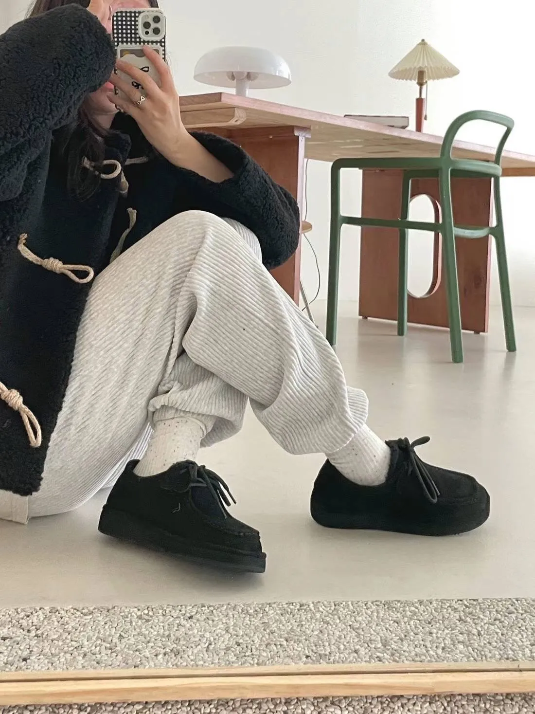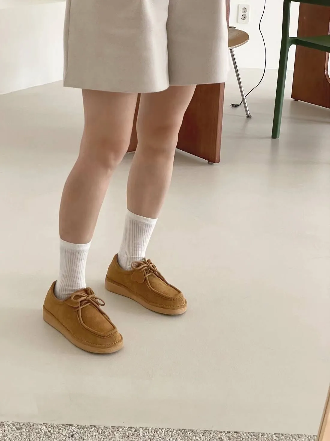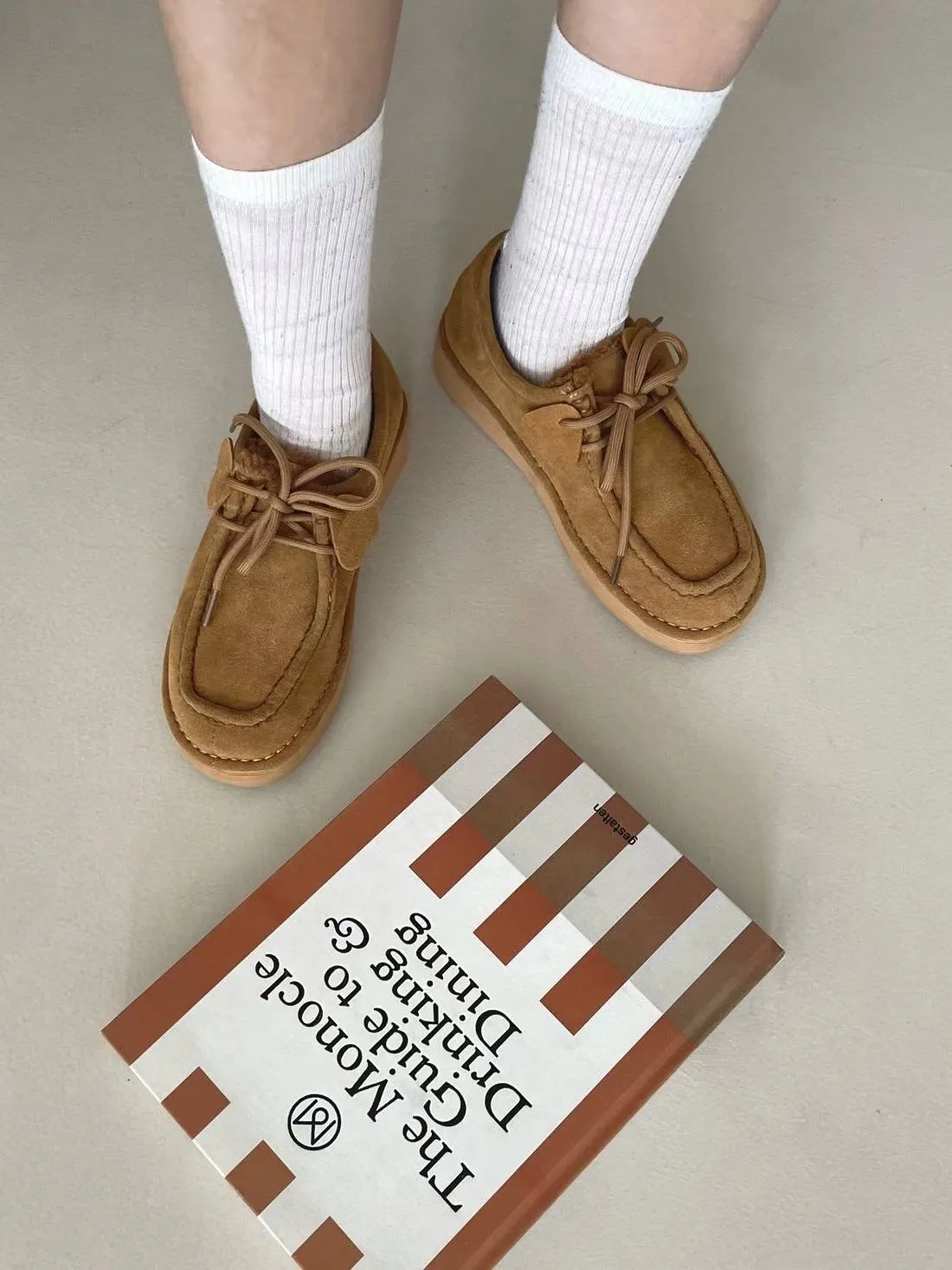 LV245復古可愛鞋帶麂皮鞋 黑 奶茶 230-250(有半號) $1190