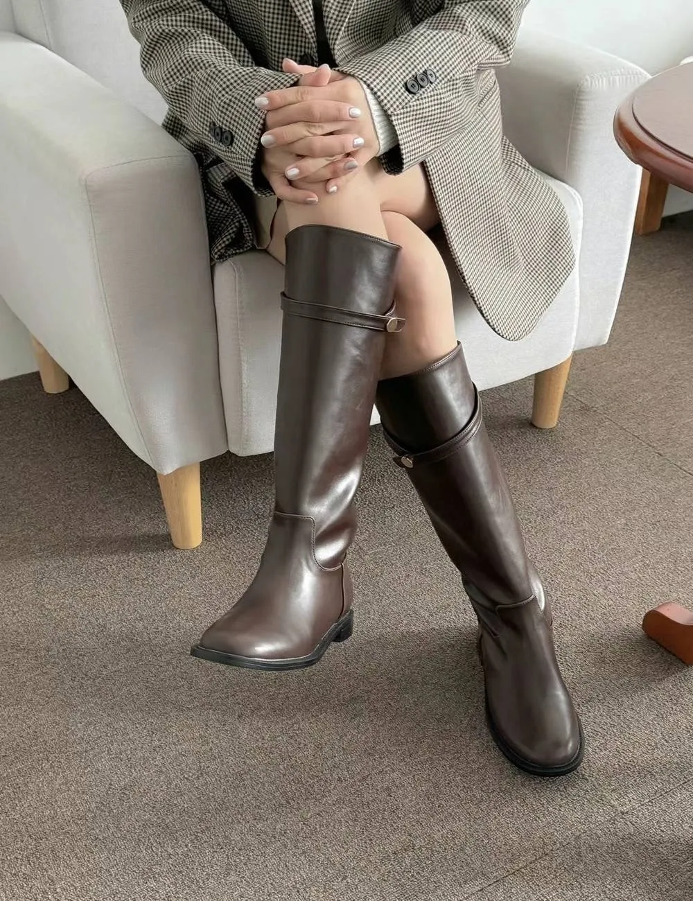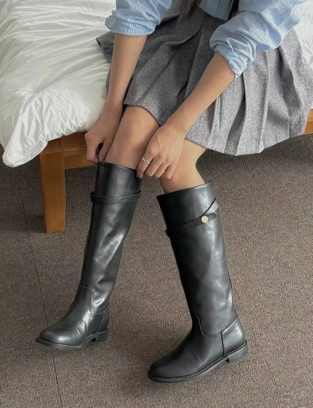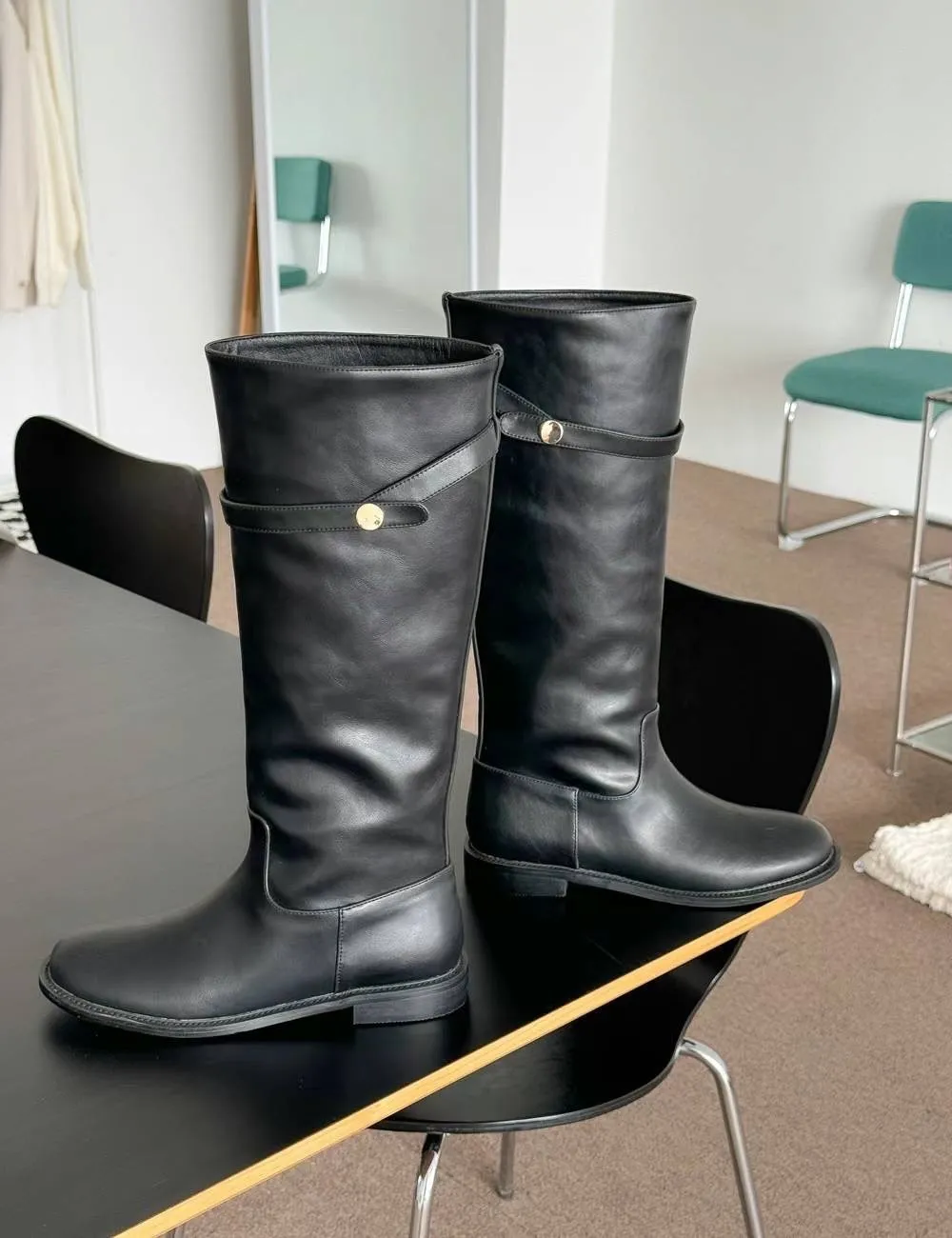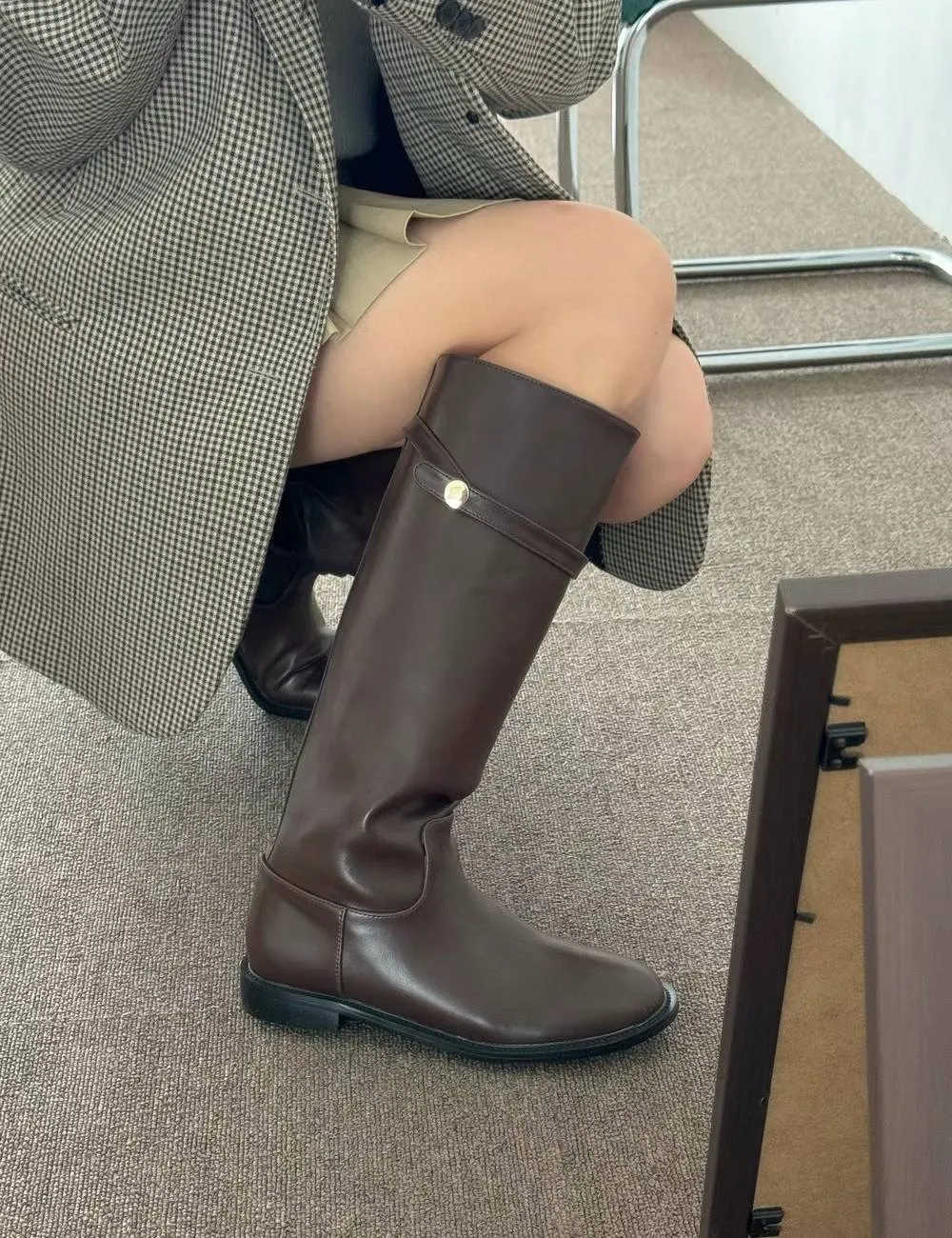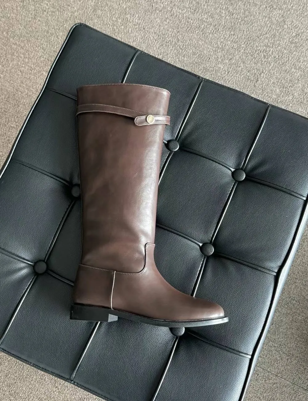 LV246側皮帶銀標長筒靴(皮革款) 咖 黑 225-250(有半號) $1290