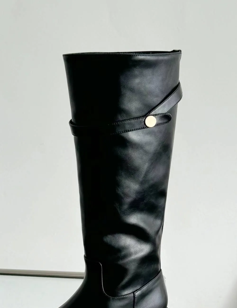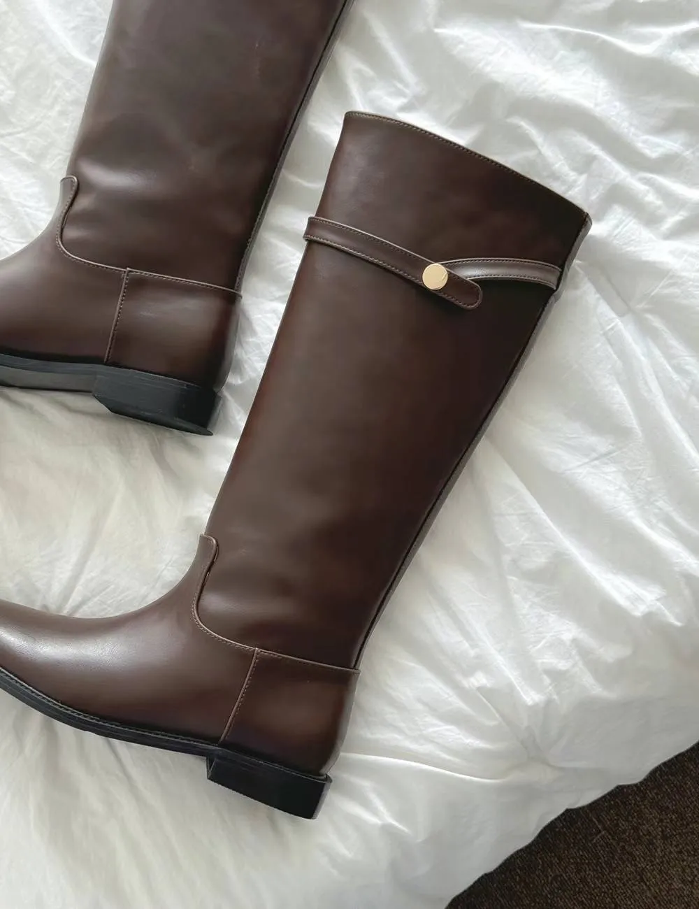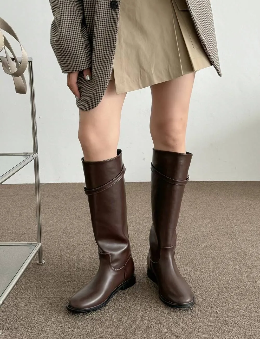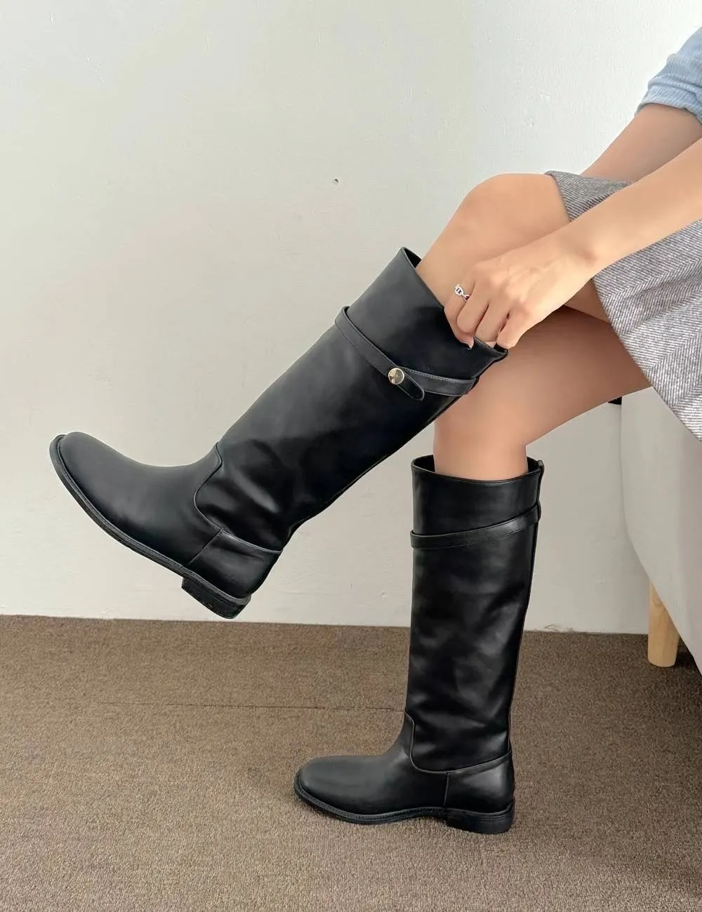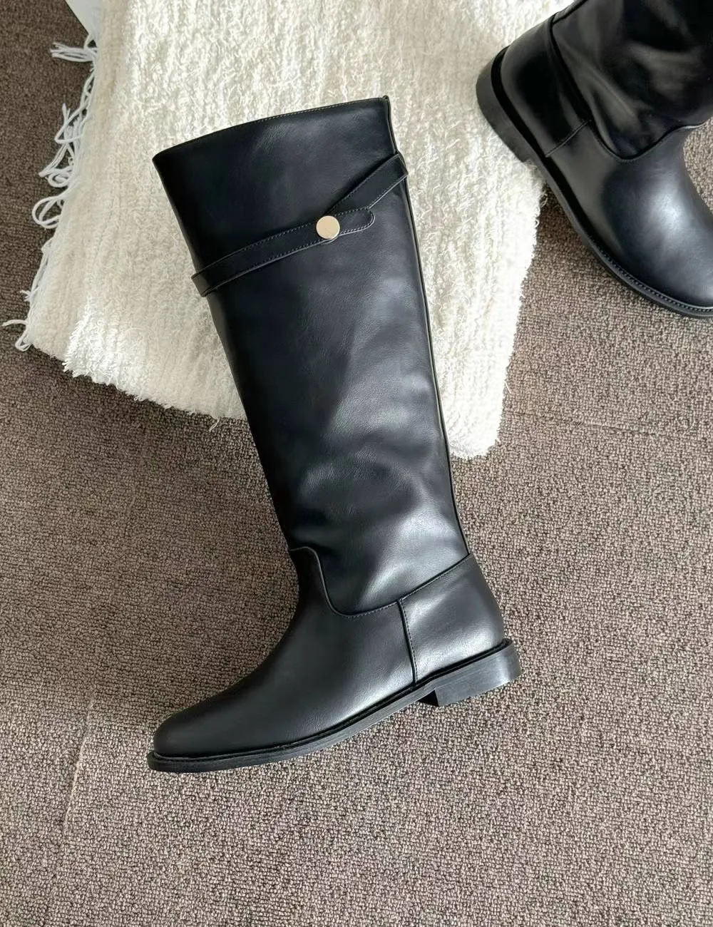 LV246側皮帶銀標長筒靴(皮革款) 咖 黑 225-250(有半號) $1290