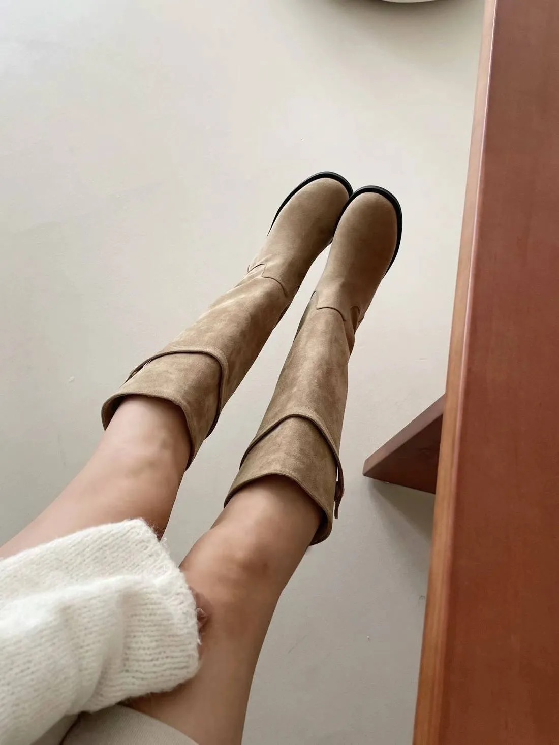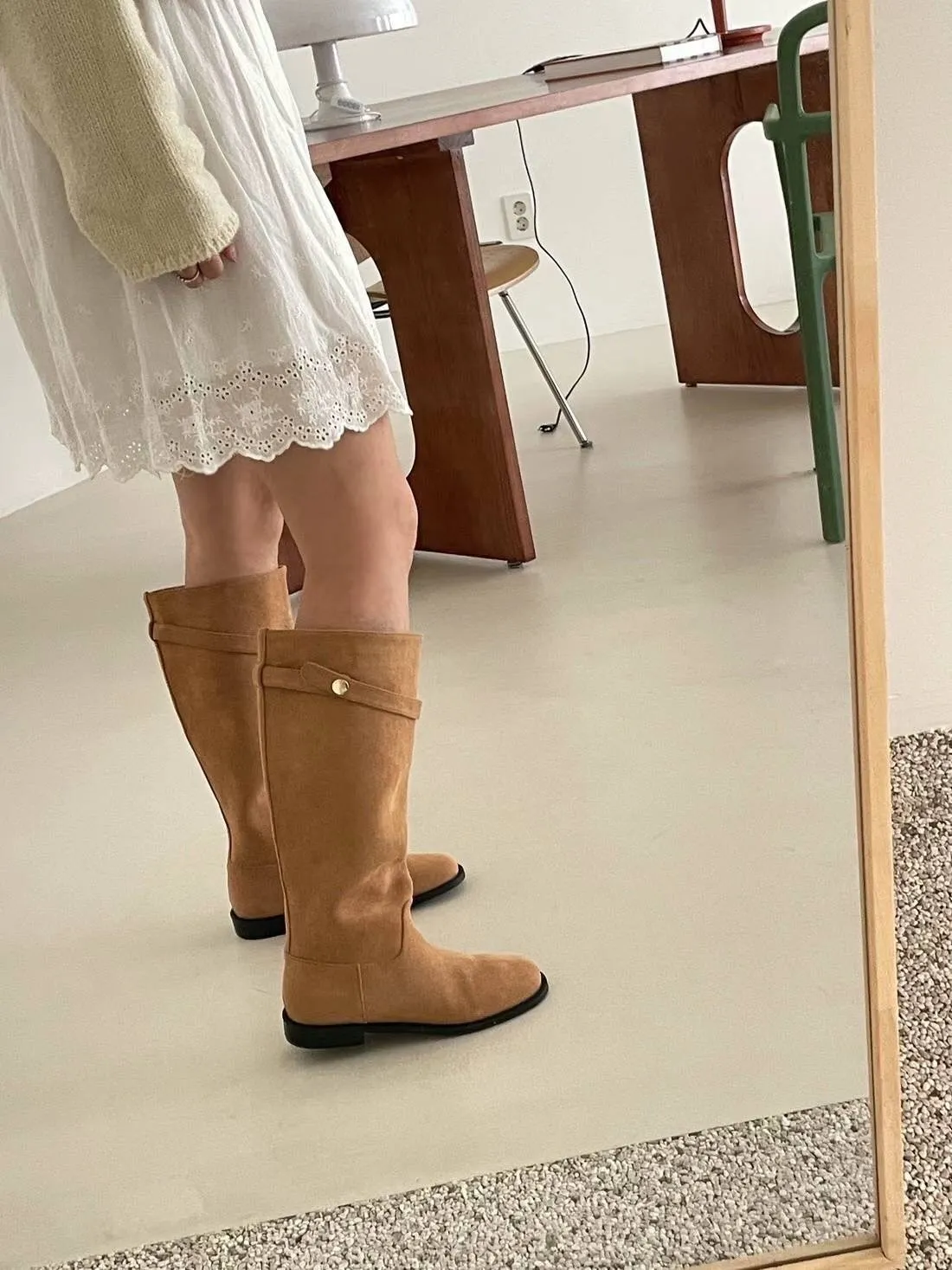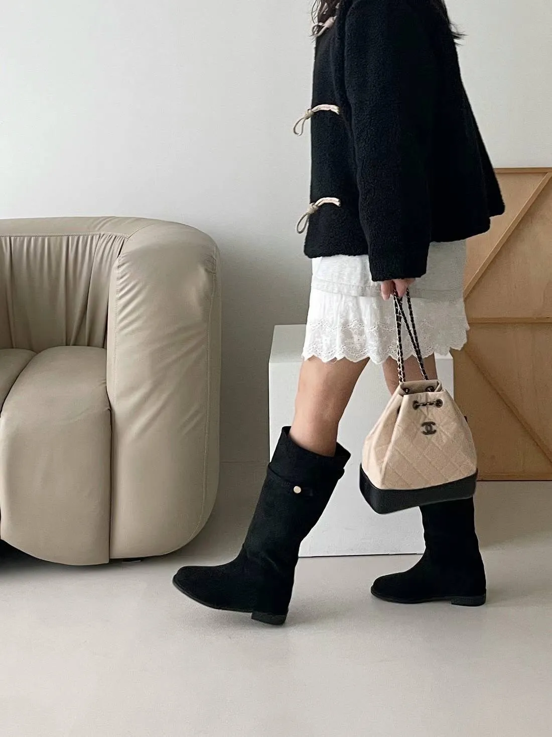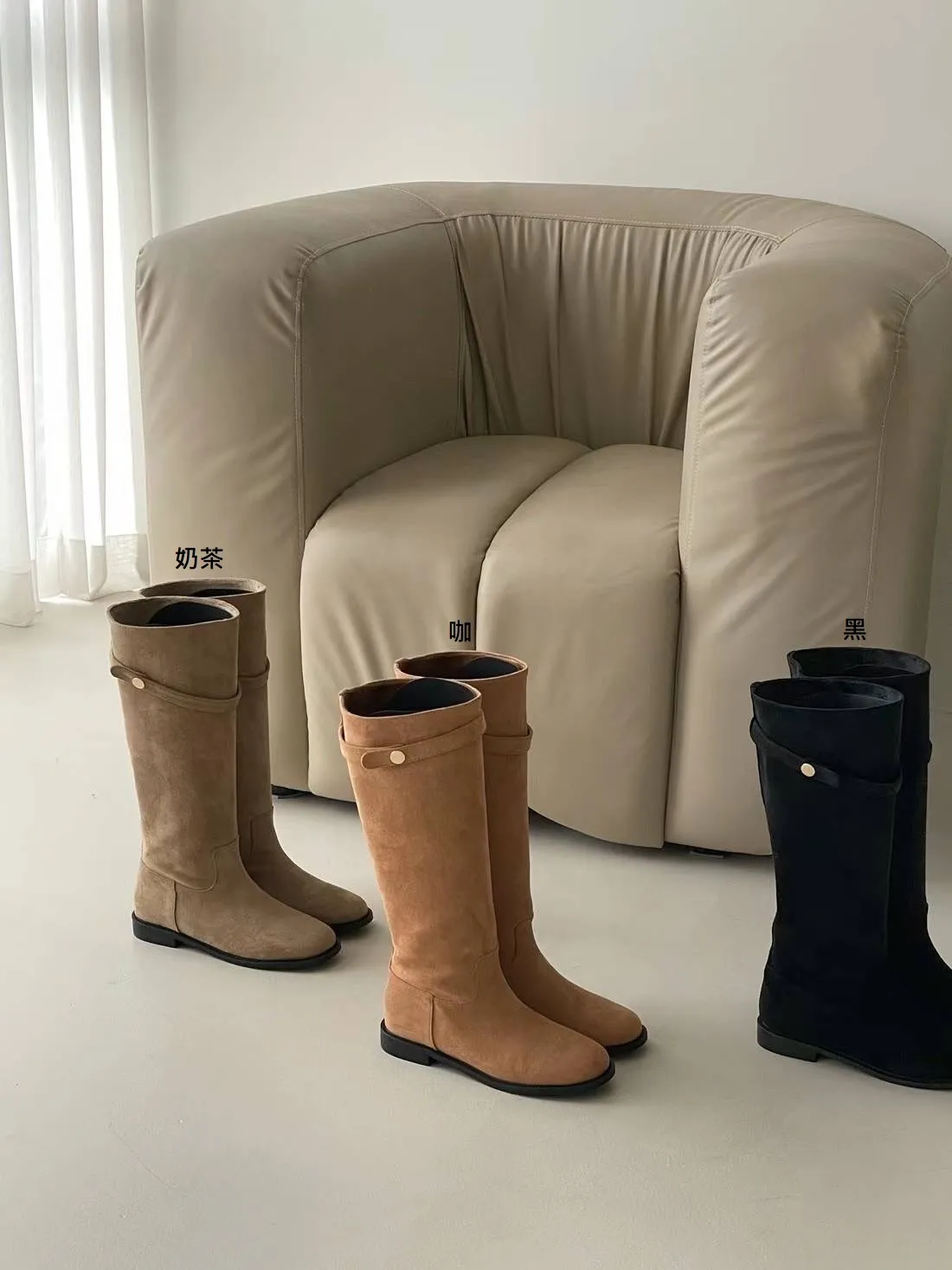 LV247側皮帶銀標長筒靴(麂皮款) 咖 黑 奶茶 225-250(有半號) $1290