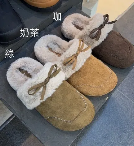 LV253滑順毛毛蝴蝶結麂皮拖鞋 咖 綠 奶茶 230-250(有半號) $840