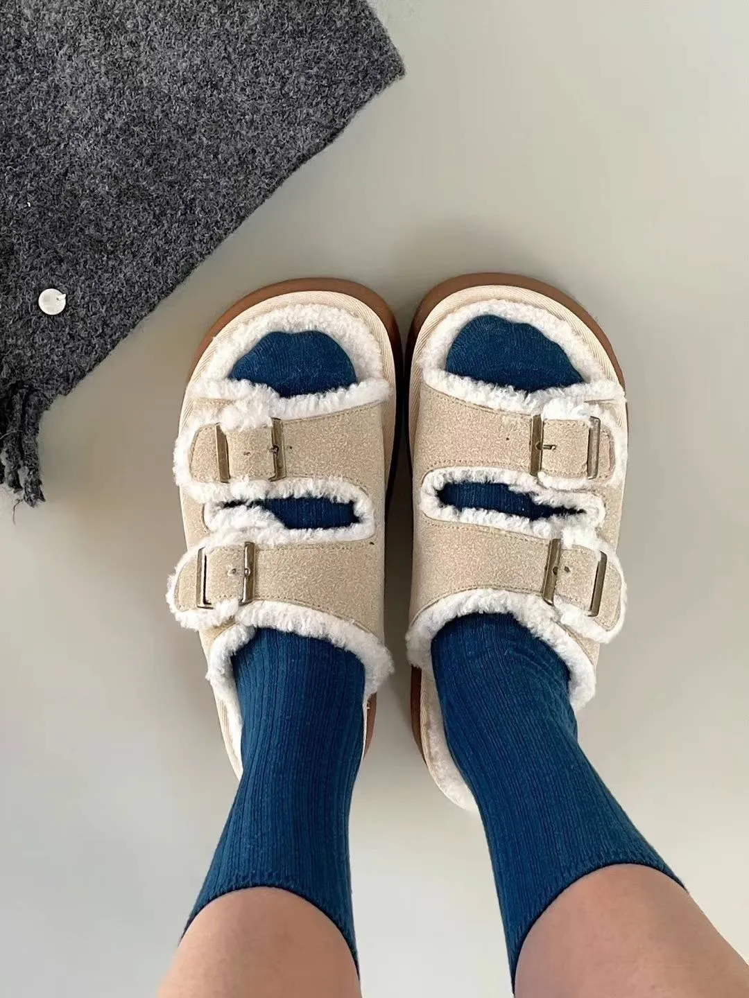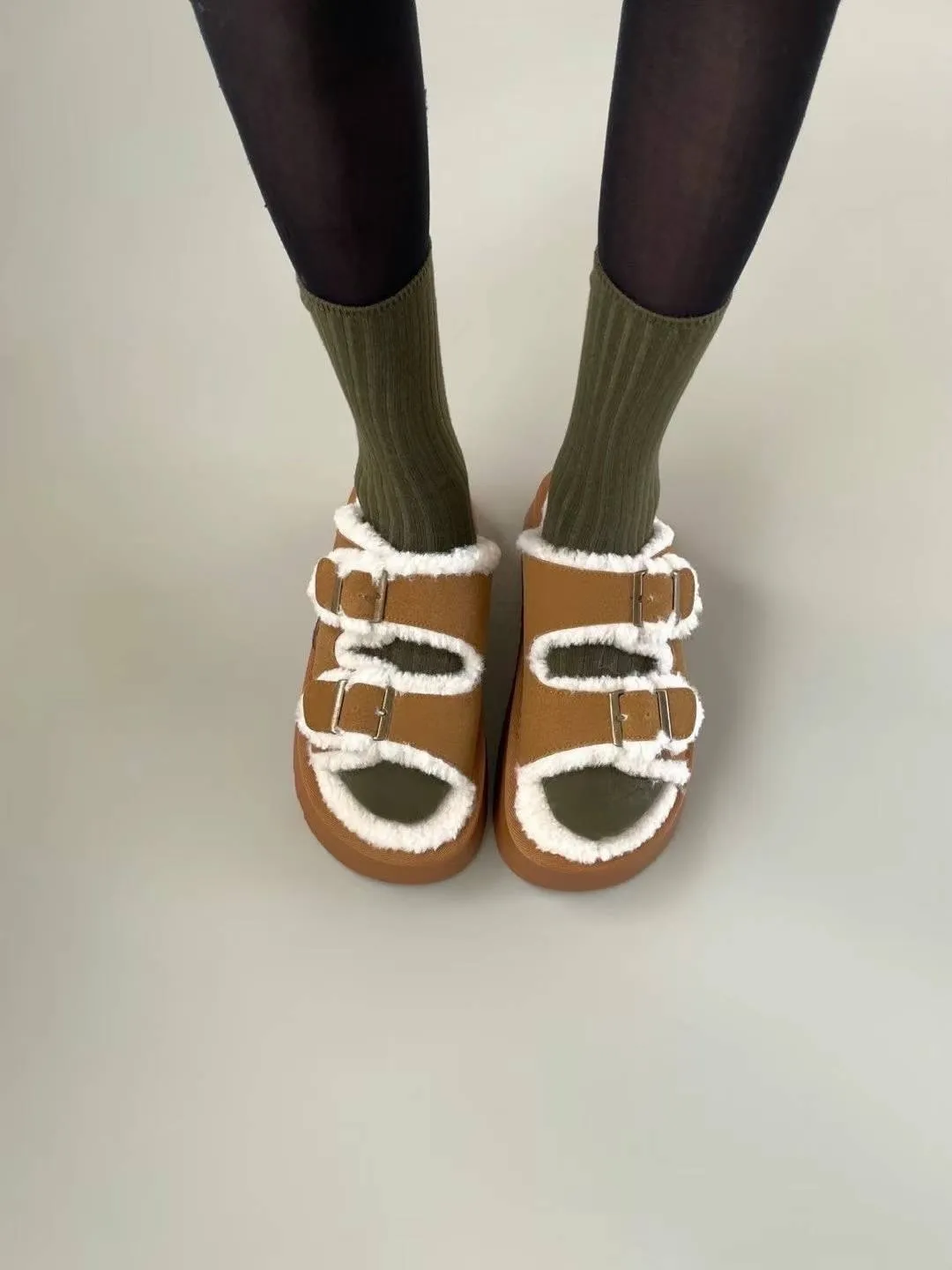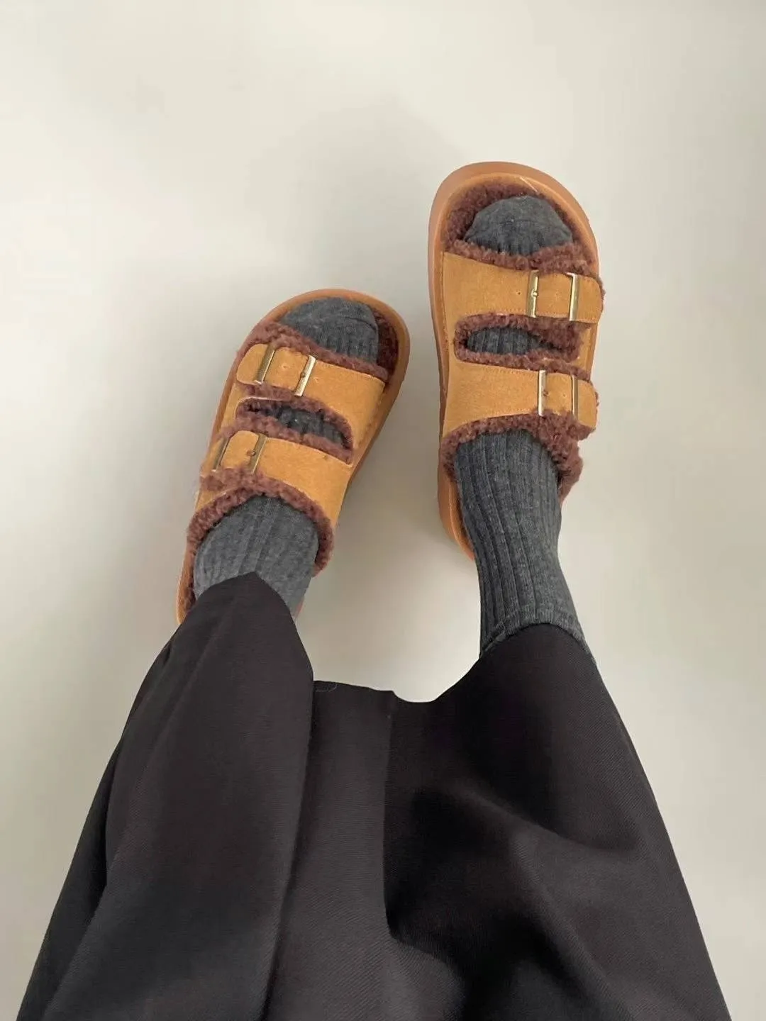 LV255毛毛雙橫休閒脫鞋 米 咖 奶茶 230-250(有半號) $770