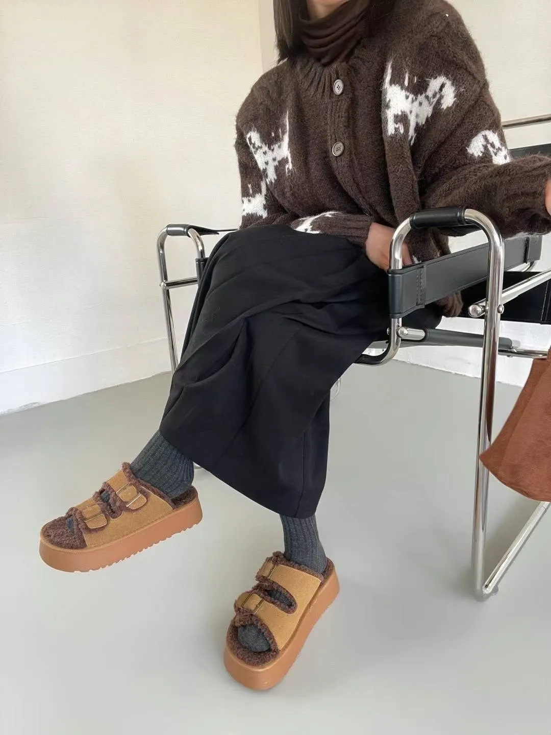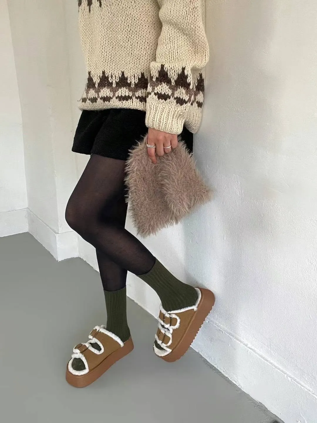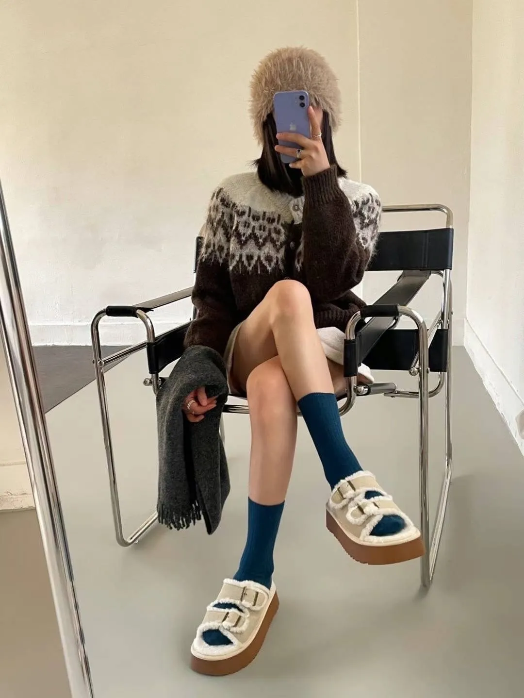 LV255毛毛雙橫休閒脫鞋 米 咖 奶茶 230-250(有半號) $770