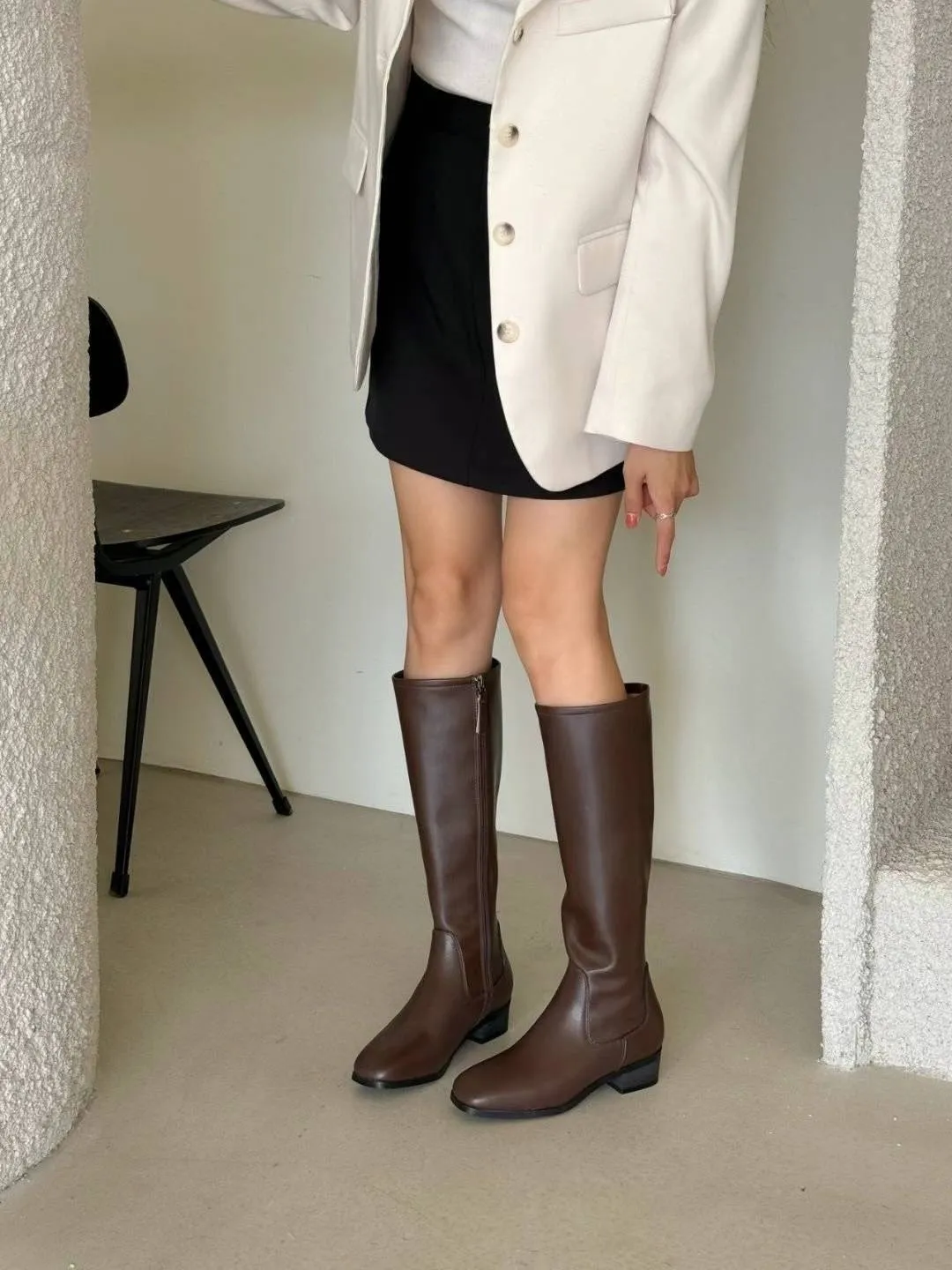 LV257內增高的拉鍊長靴 米 奶茶 咖 黑 225-250(有半號) $1620