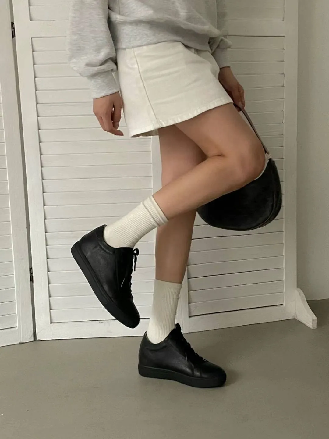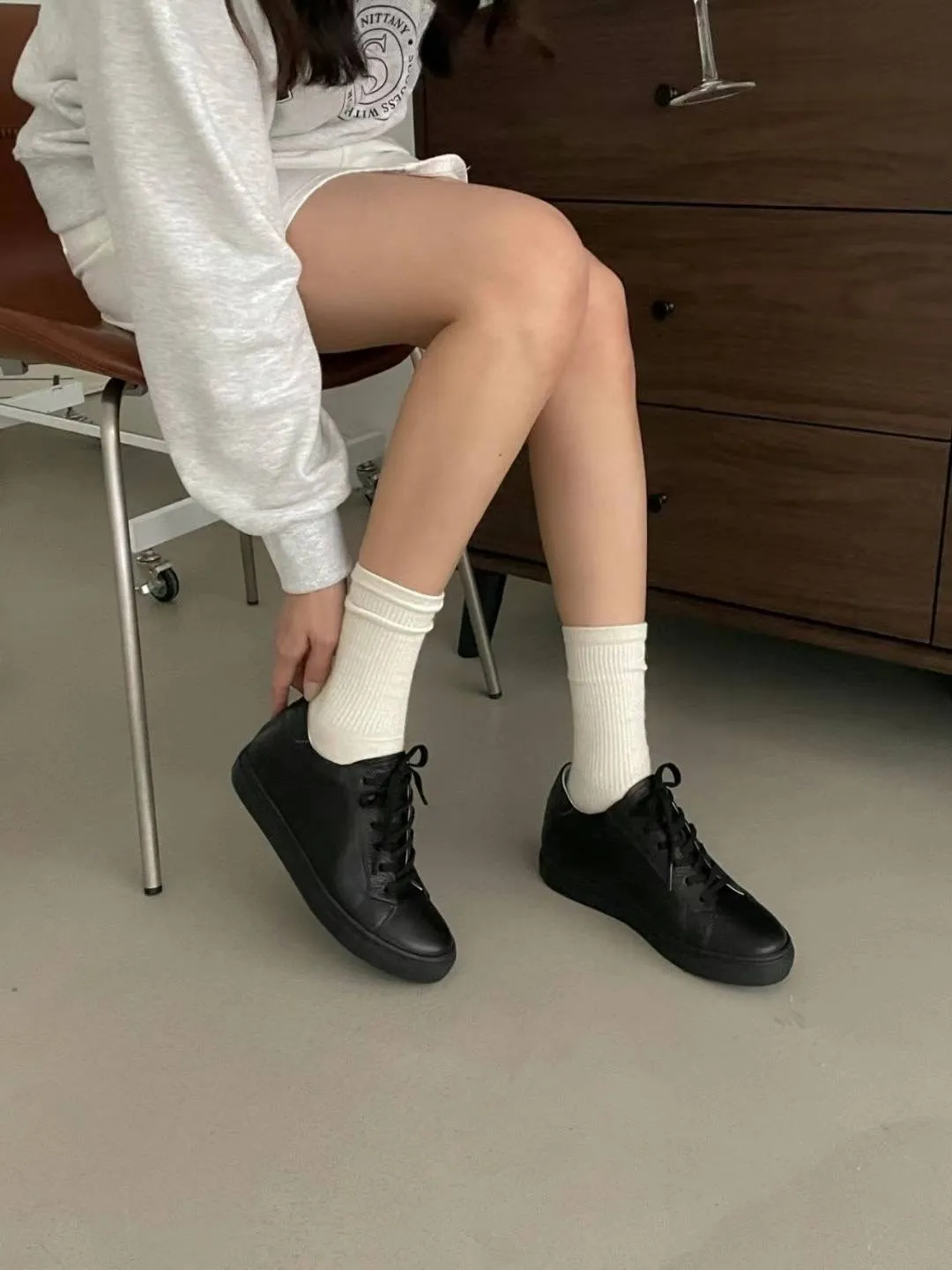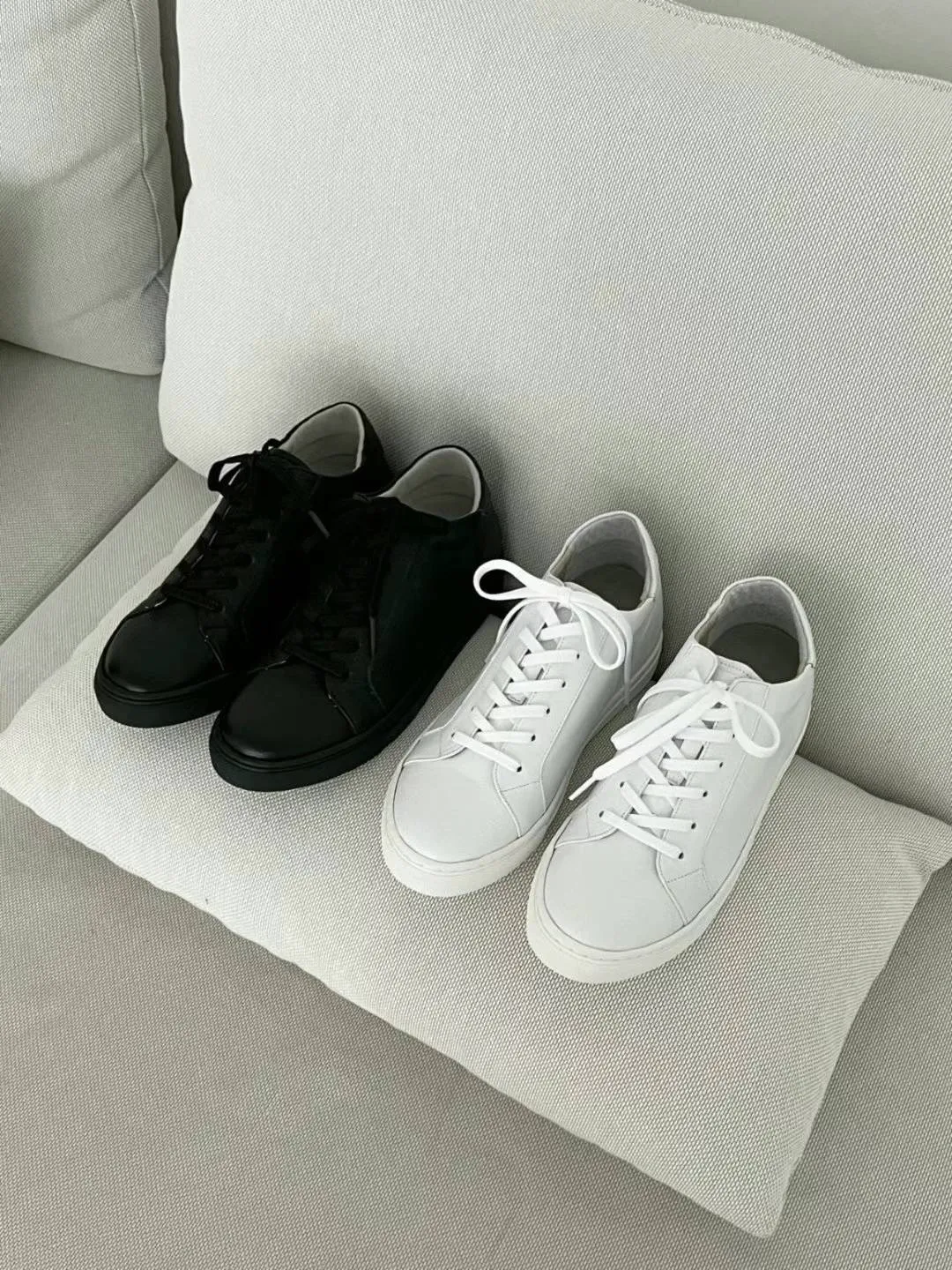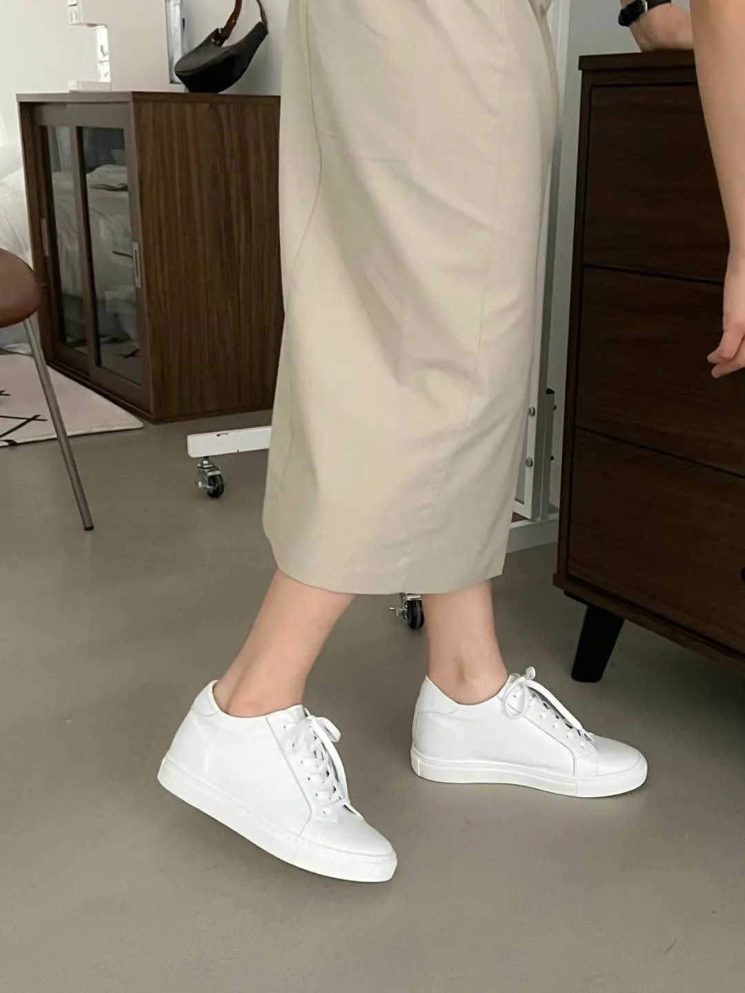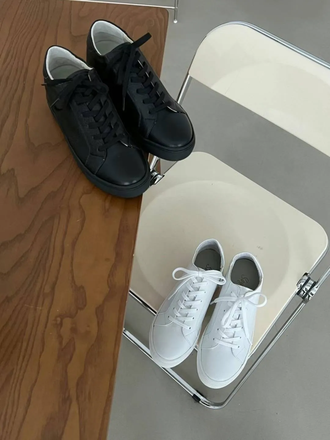 LV259內增高手綁鞋帶牛皮小白鞋 白 黑 225-250(有半號) $1220