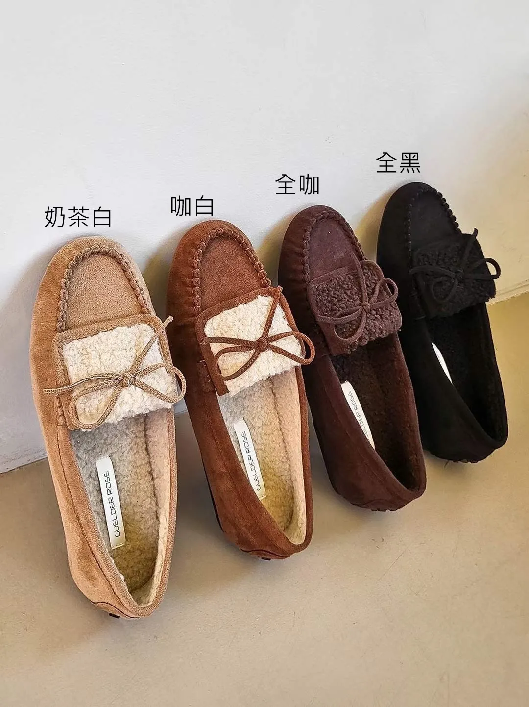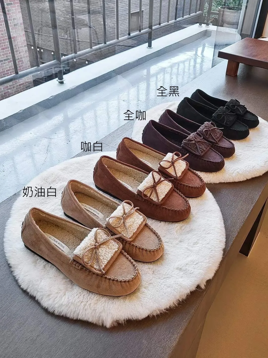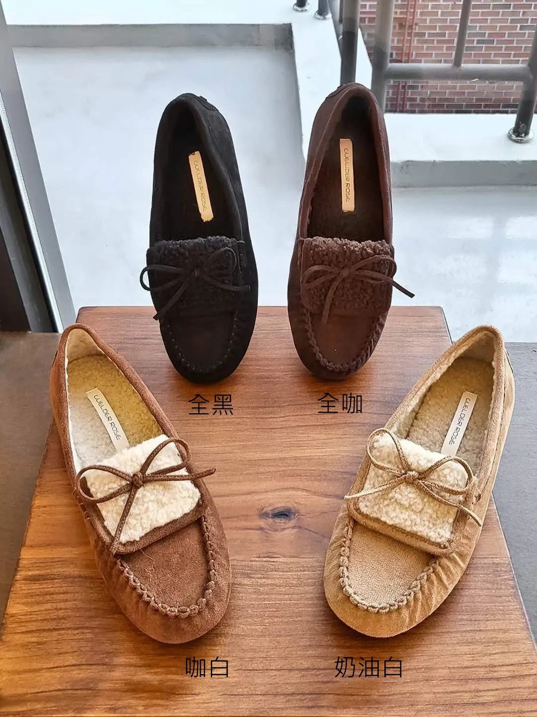 LV260牛皮毛毛蝴蝶結豆豆鞋 全黑 全咖 奶茶白 咖白 230-255(有半號) $1050