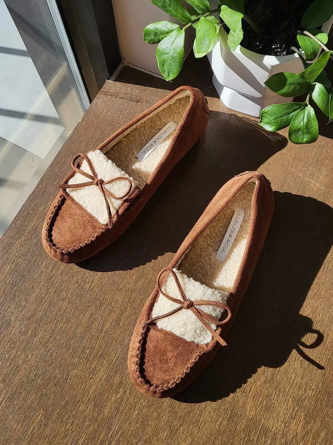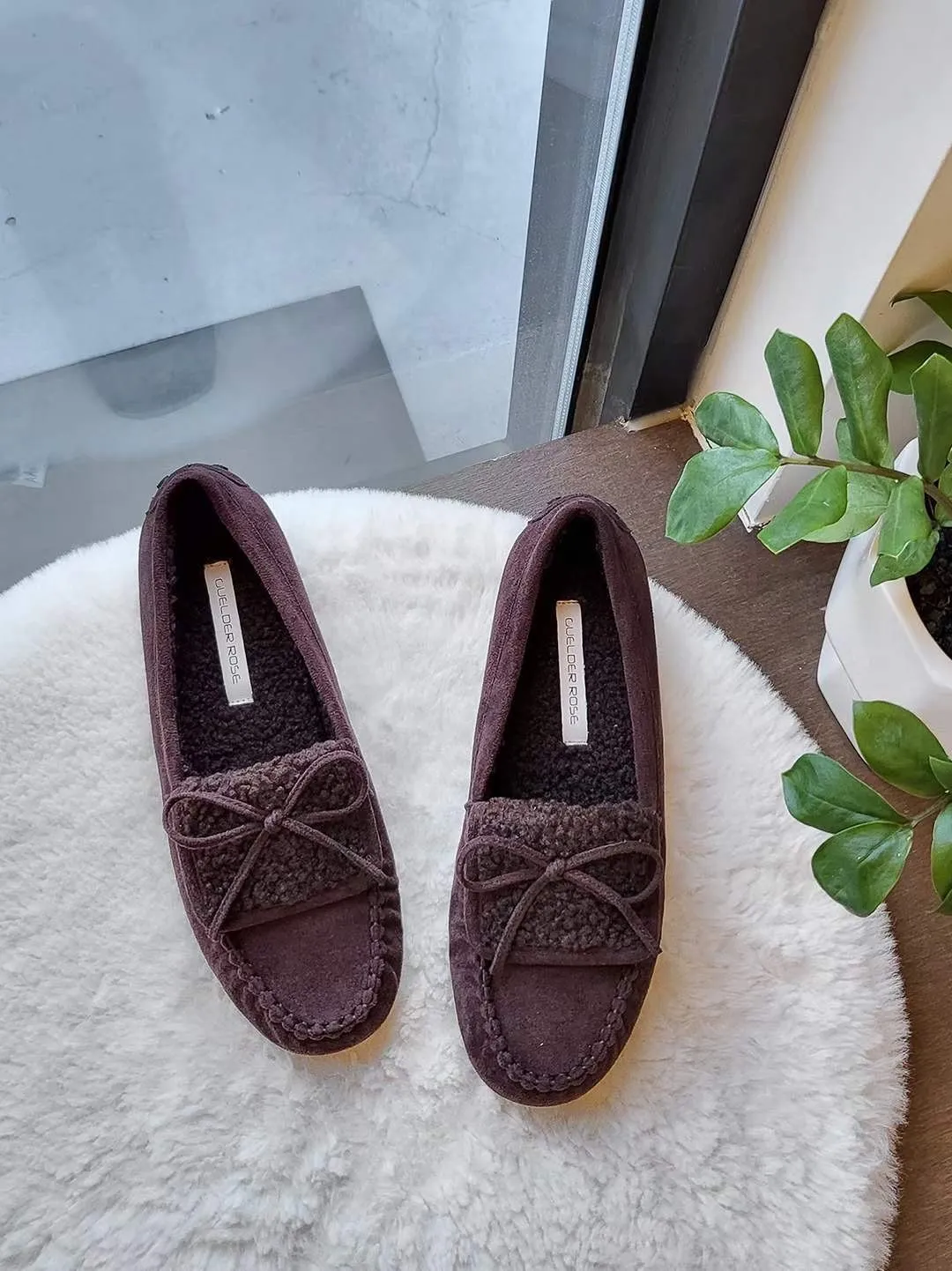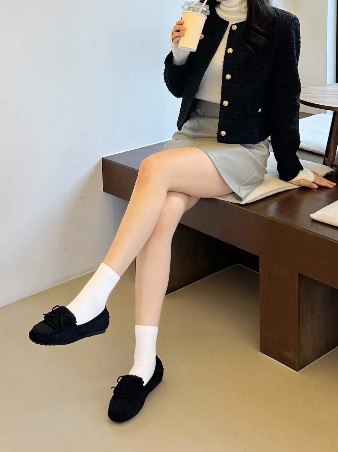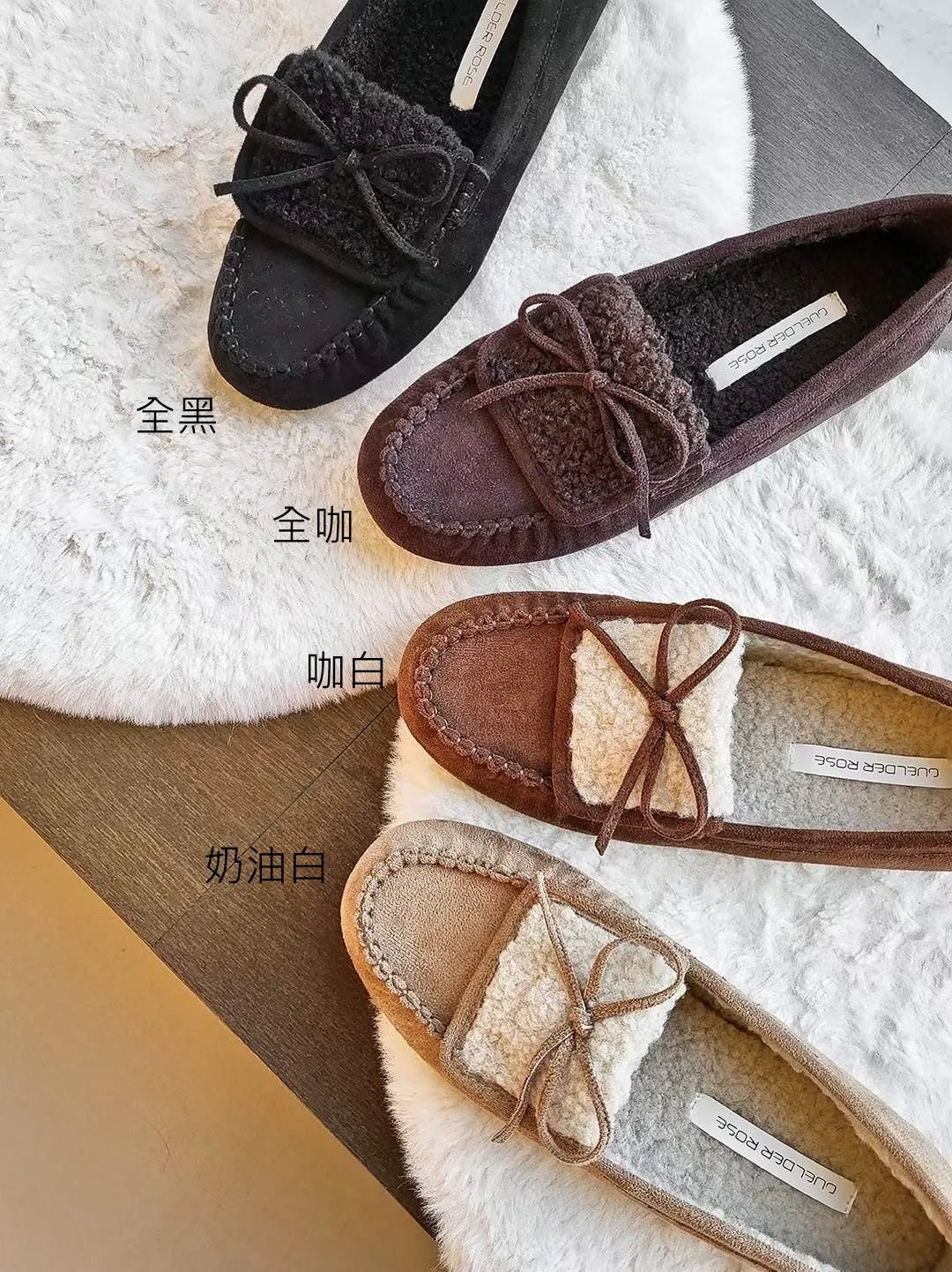 LV260牛皮毛毛蝴蝶結豆豆鞋 全黑 全咖 奶茶白 咖白 230-255(有半號) $1050