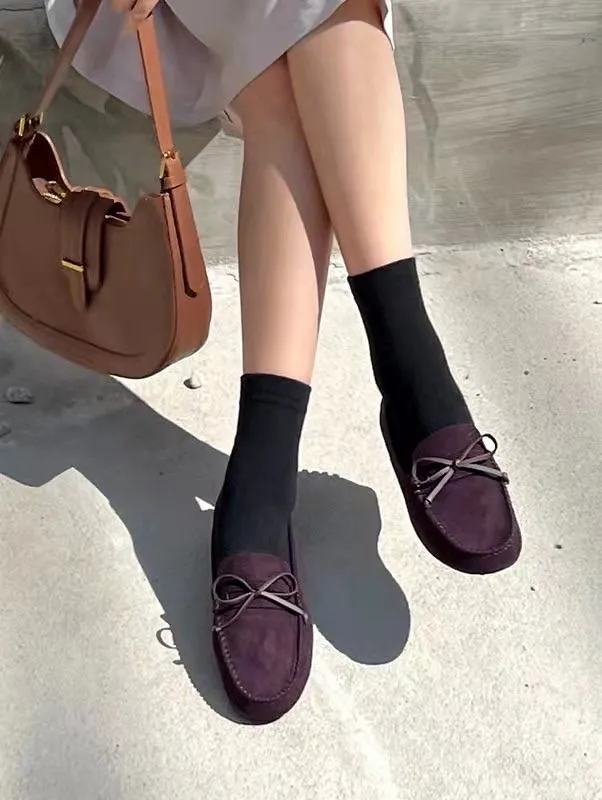 LV261牛皮蝴蝶結8色豆豆鞋 咖 紫 灰 紅 綠 黑 藍 奶茶 230-255(有半號) $1050