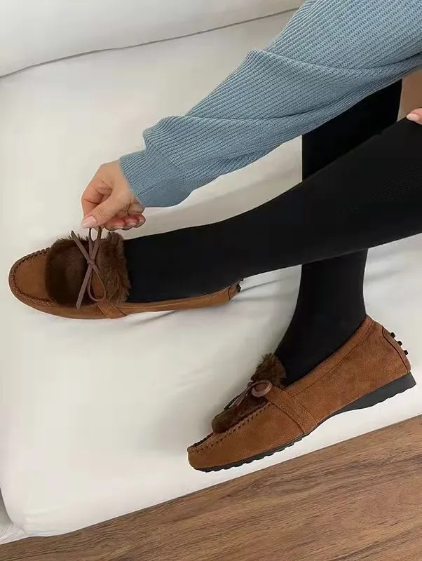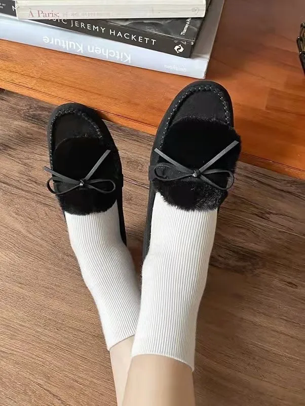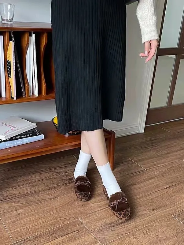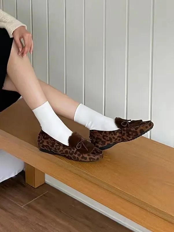 LV262牛皮毛毛蝴蝶結鞋子 咖 黑 奶茶 豹紋 230-255(有半號) $1080
