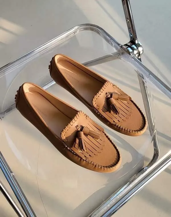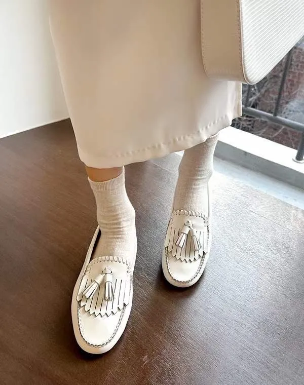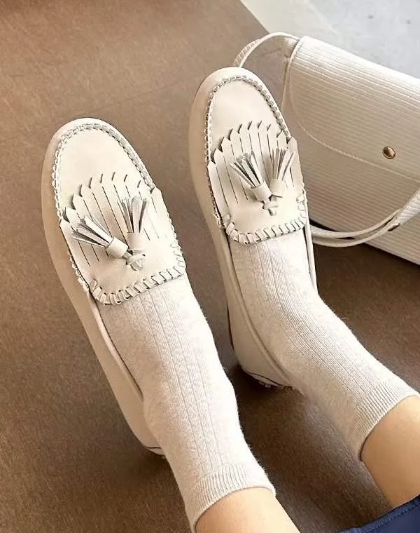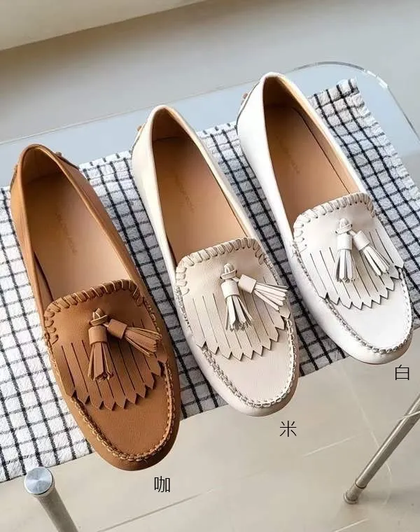 LV265牛皮流蘇豆豆鞋 白 米 咖 230-255(有半號) $1190