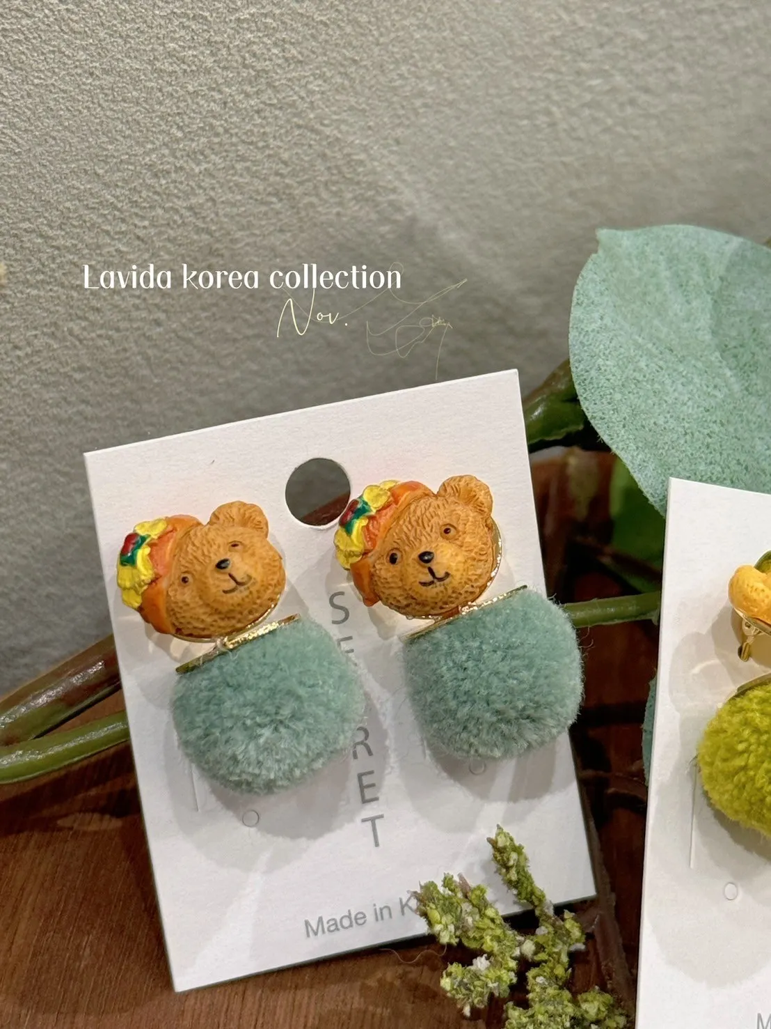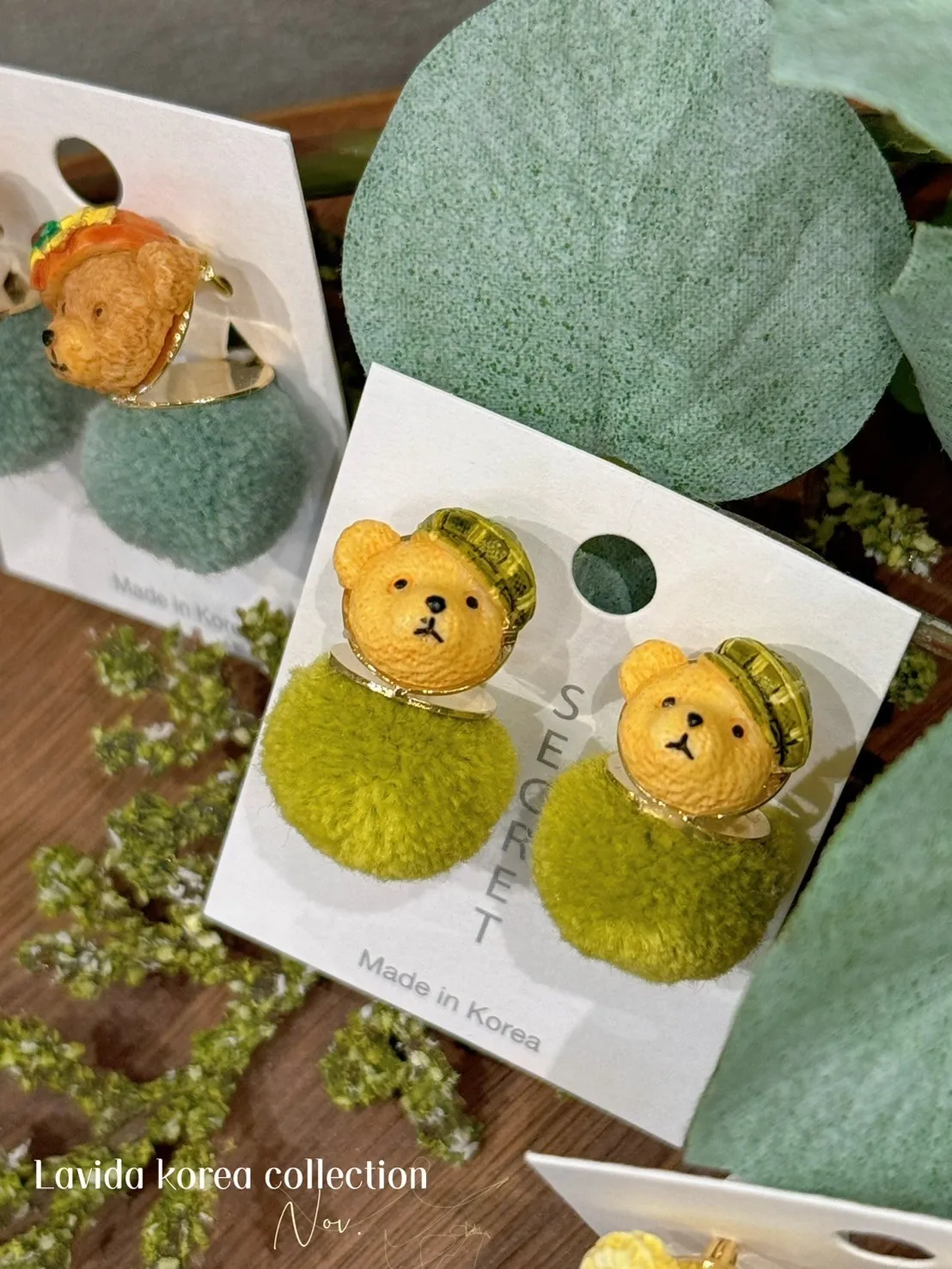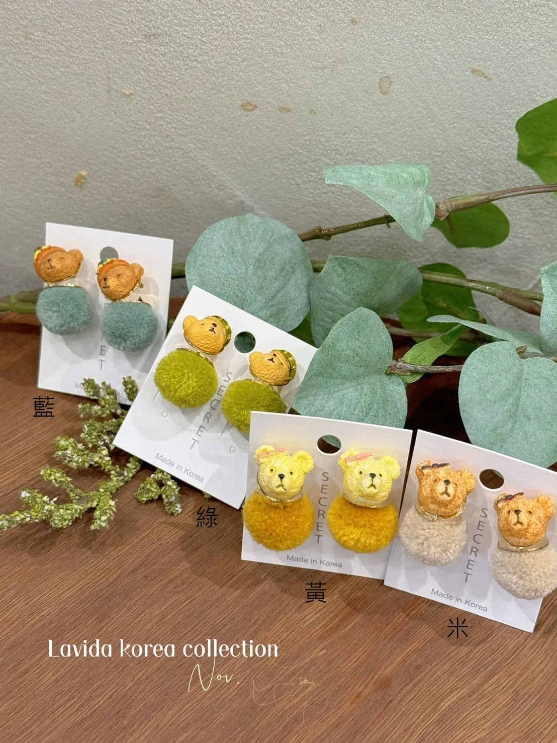 LV288熊熊小球勾釦耳環(只有耳針) 米 黃 綠 藍 $230