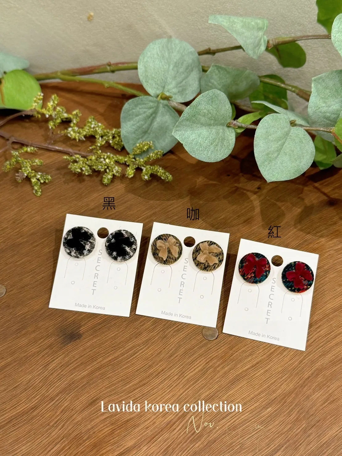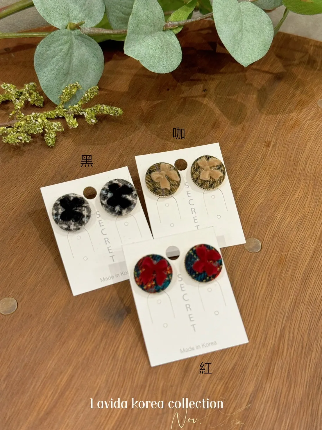 LV289可愛小鈕扣蝴蝶結耳環 咖 黑 紅 耳針$240 耳夾(矽)$260
