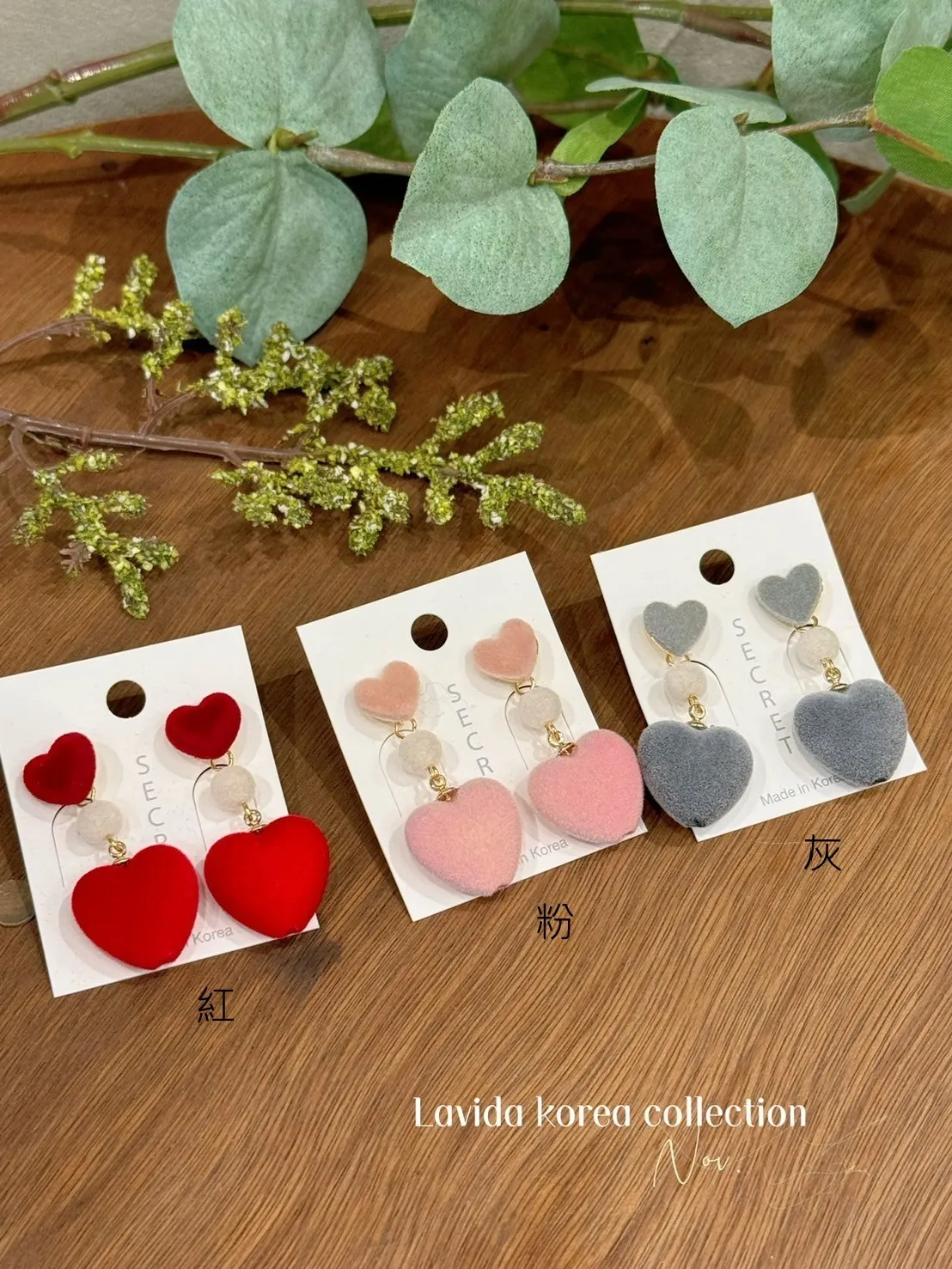 LV290雙愛心耳環 粉 紅 灰 耳針$230 耳夾(矽)$ 250