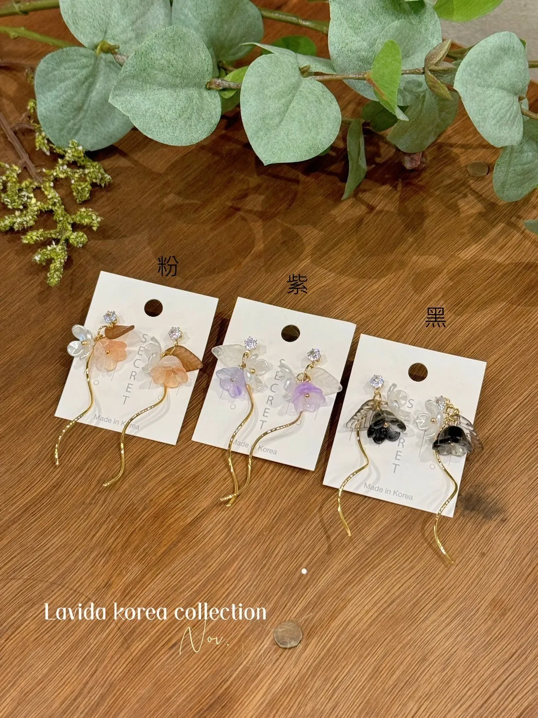 LV291推薦款小花銀鈴華爾滋耳環 紫 粉 黑 耳針$240 耳夾(矽)$260