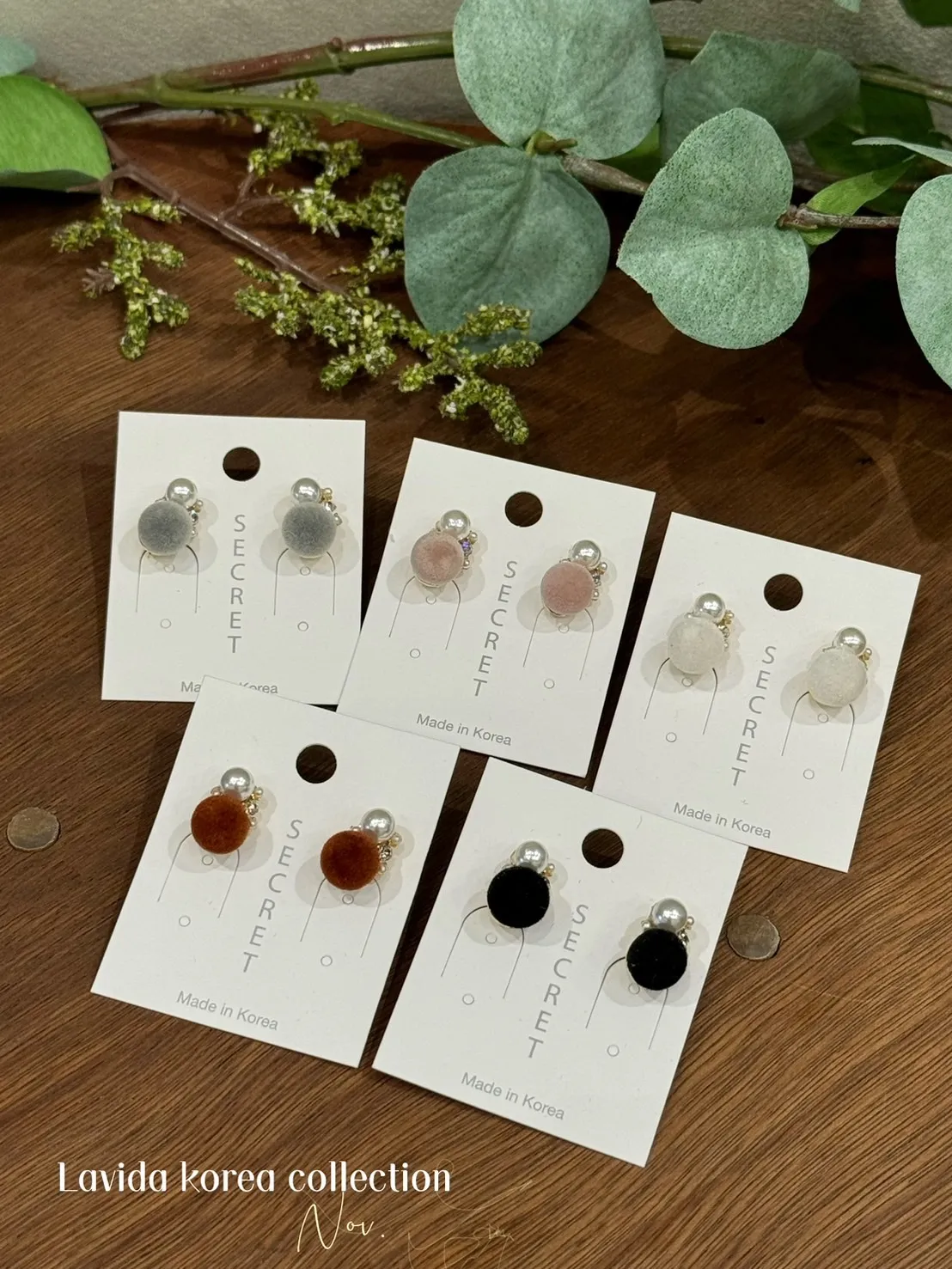 LV294小雪人鑲鑽珍珠耳環 白 粉 灰 咖 黑 耳針$230 耳夾(矽)$250