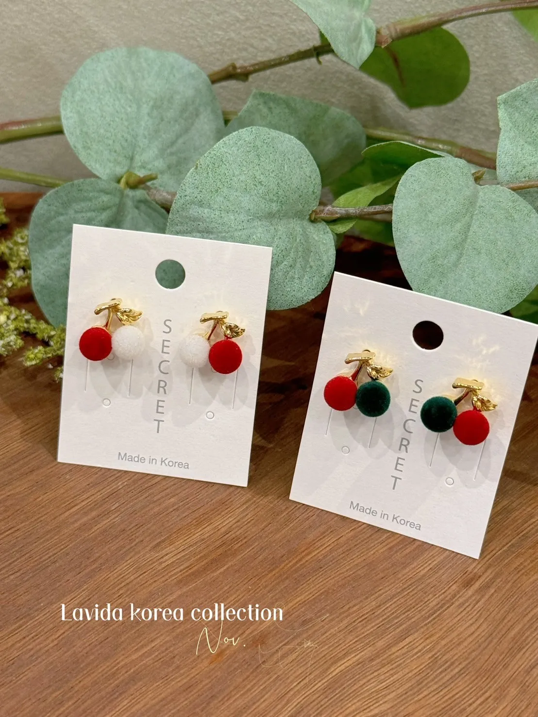 LV297聖誕櫻桃耳環 白 綠 耳針$230 耳夾(矽)$250