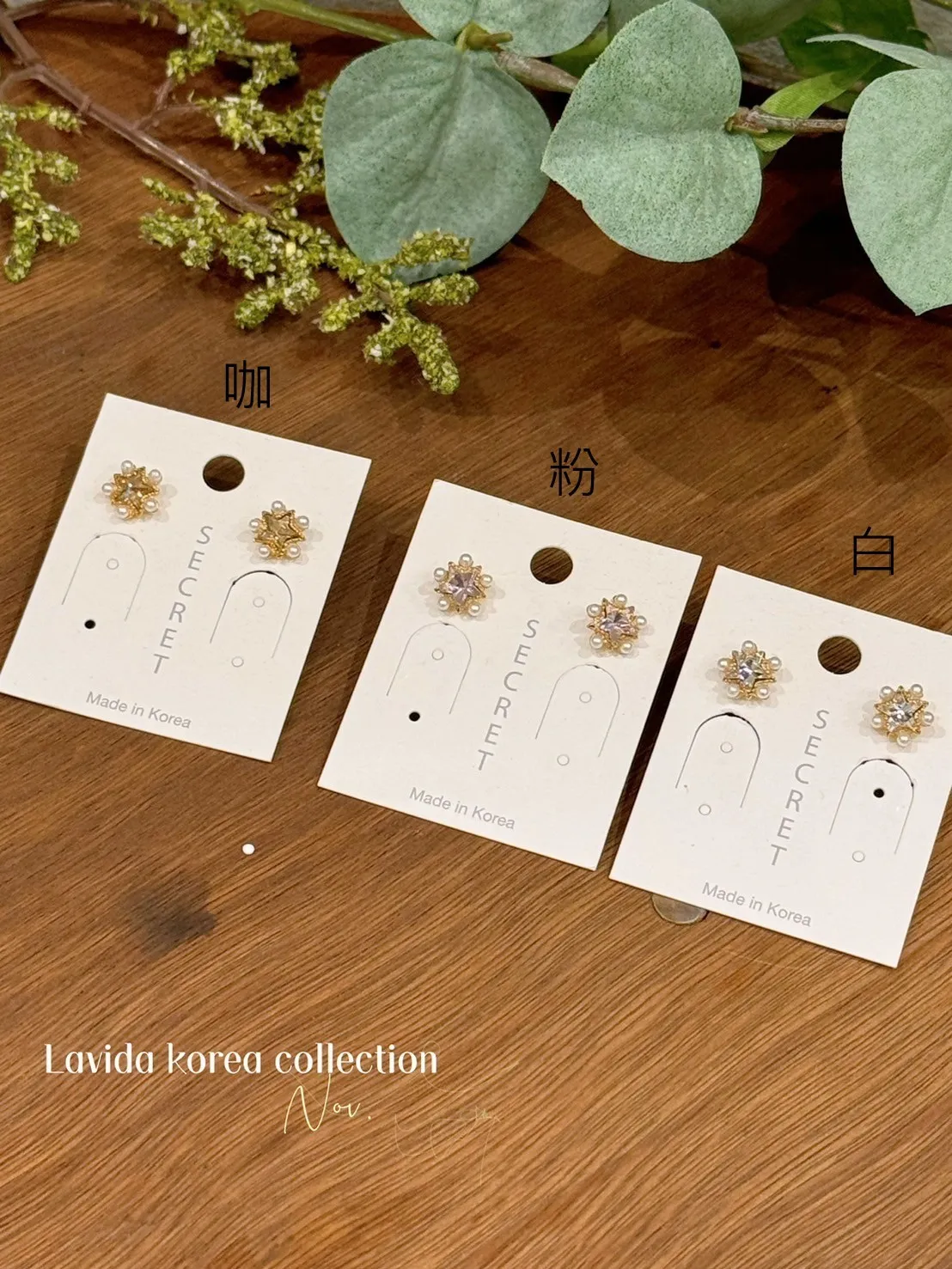 LV302鑽星透晶珍珠耳環 白 粉 咖 耳針$220 耳夾(矽)$240