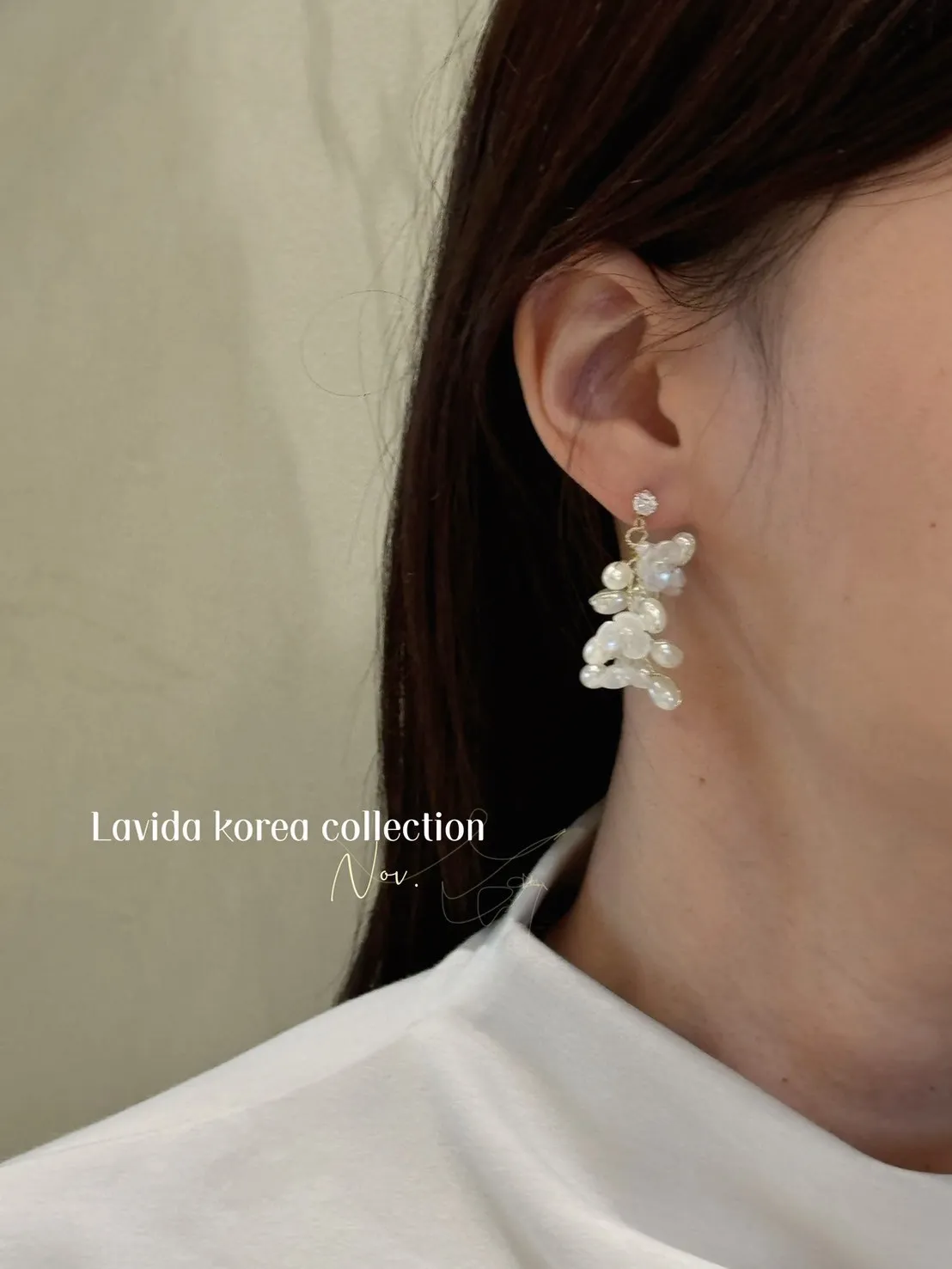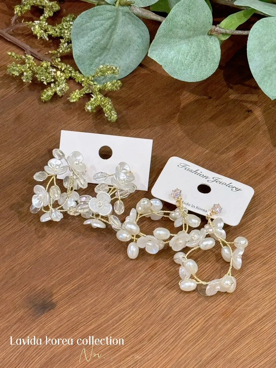 LV303氣質花圈耳環 珍珠 水晶 耳針$250 耳夾(矽)$270