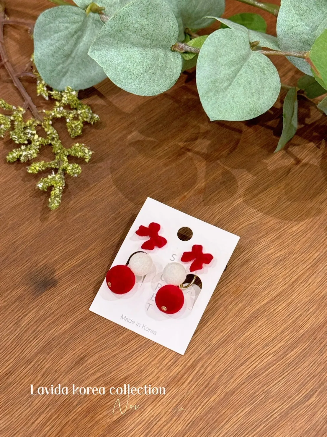 LV306存在感紅白球球蝴蝶結耳環 $240