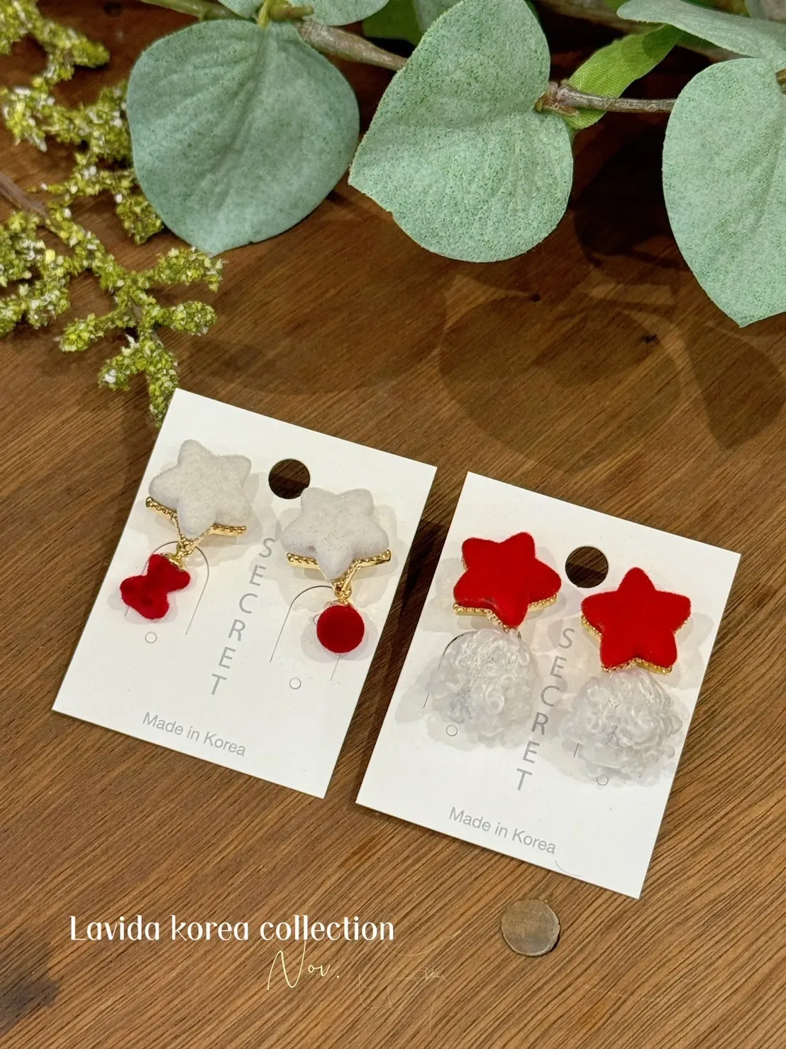 LV307雪白紅絲絨星星耳環(星星分色) 紅 白 耳針$240 耳夾(矽)$260