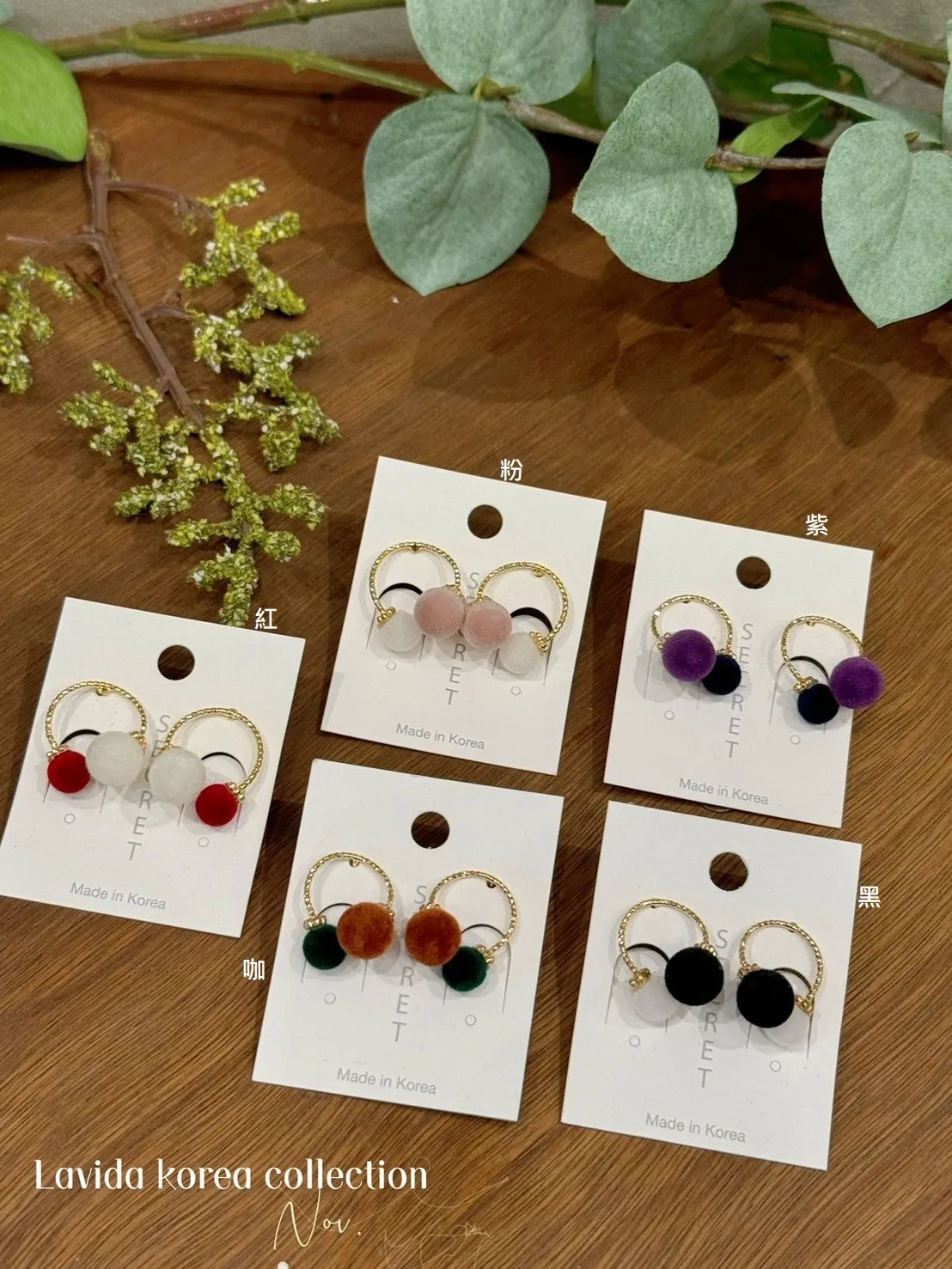 LV308曲線球球耳環 紫 粉 紅 咖 黑 耳針$230 耳夾(矽)$250