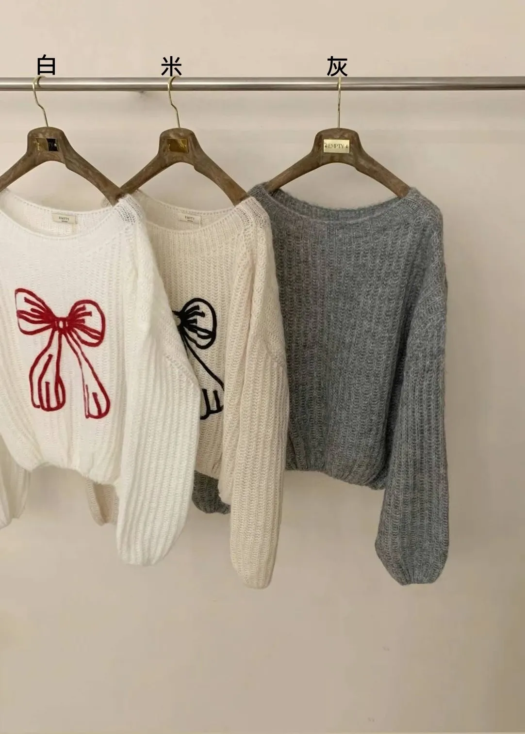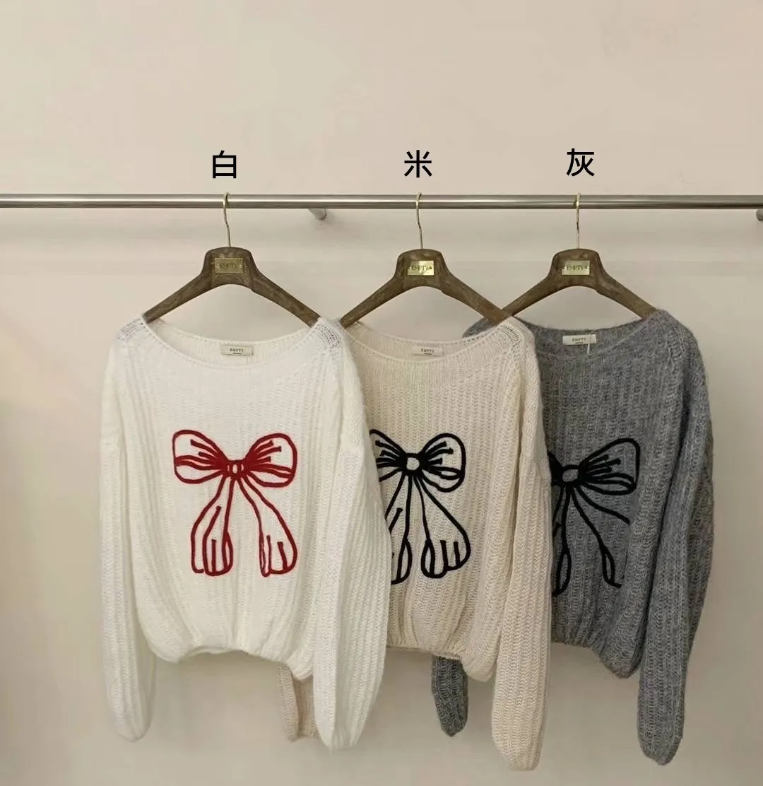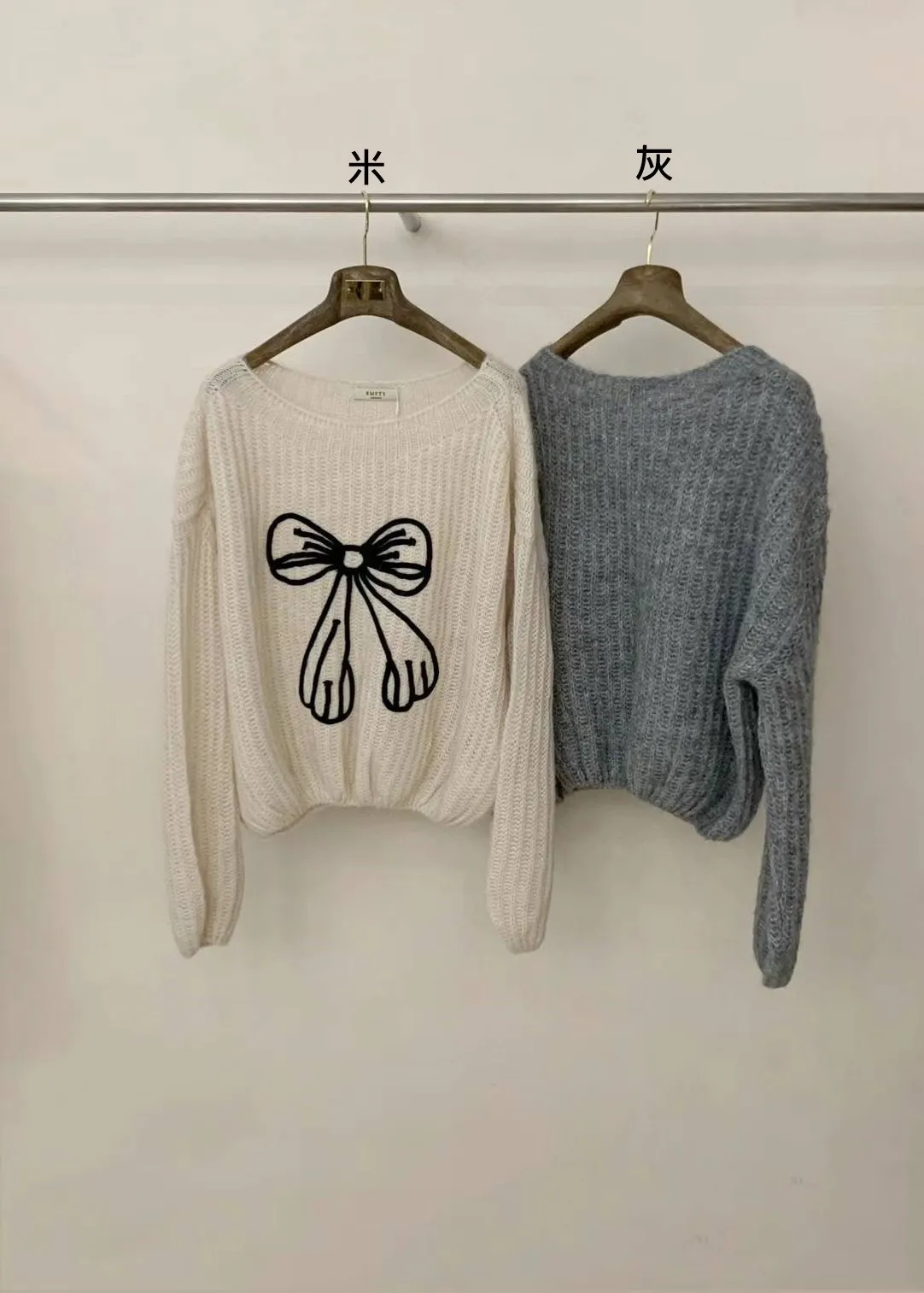 LV511寬領鎖骨蝴蝶結針織上衣 白 米 灰 官網價$1050 線上價$1020