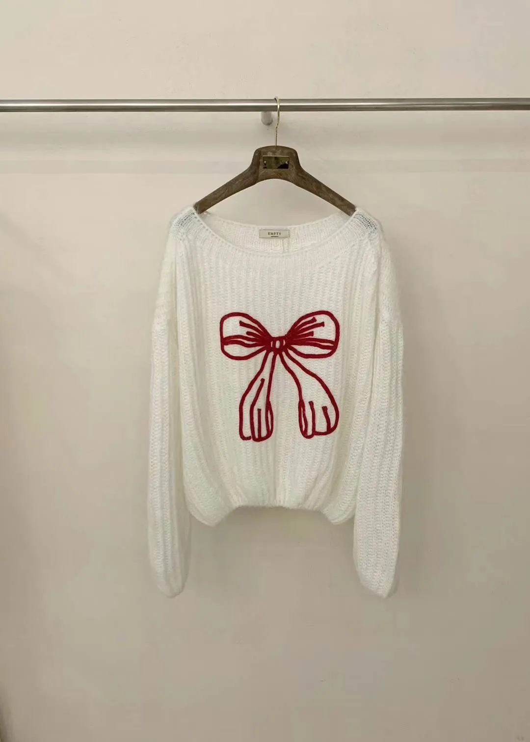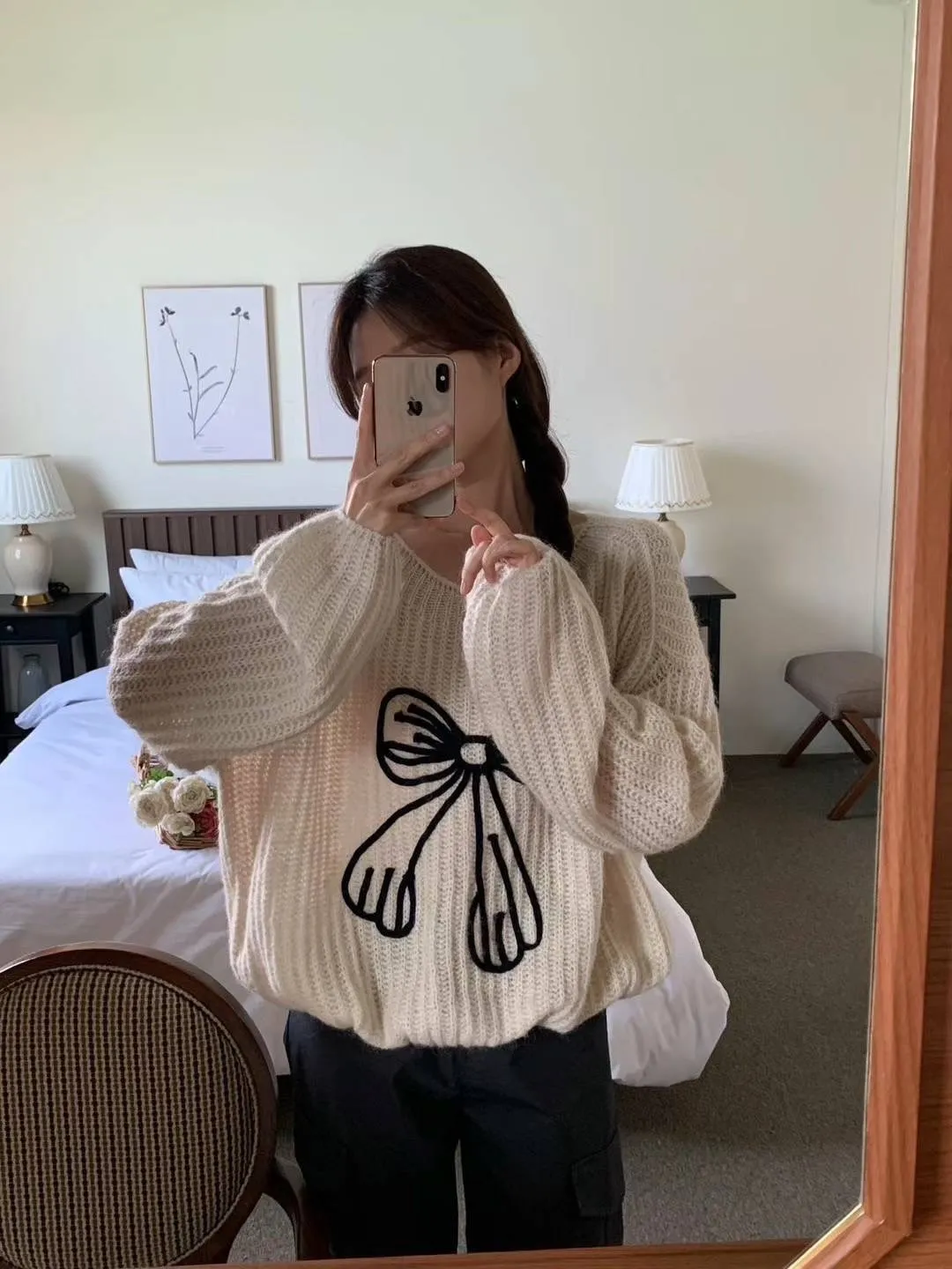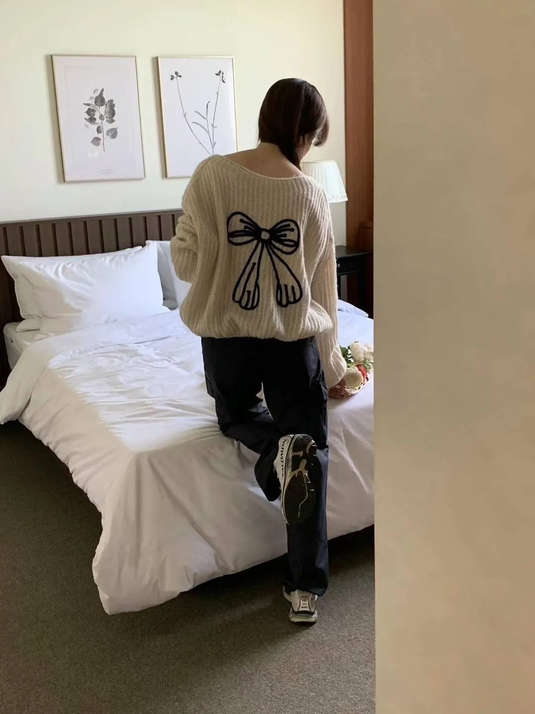 LV511寬領鎖骨蝴蝶結針織上衣 白 米 灰 官網價$1050 線上價$1020