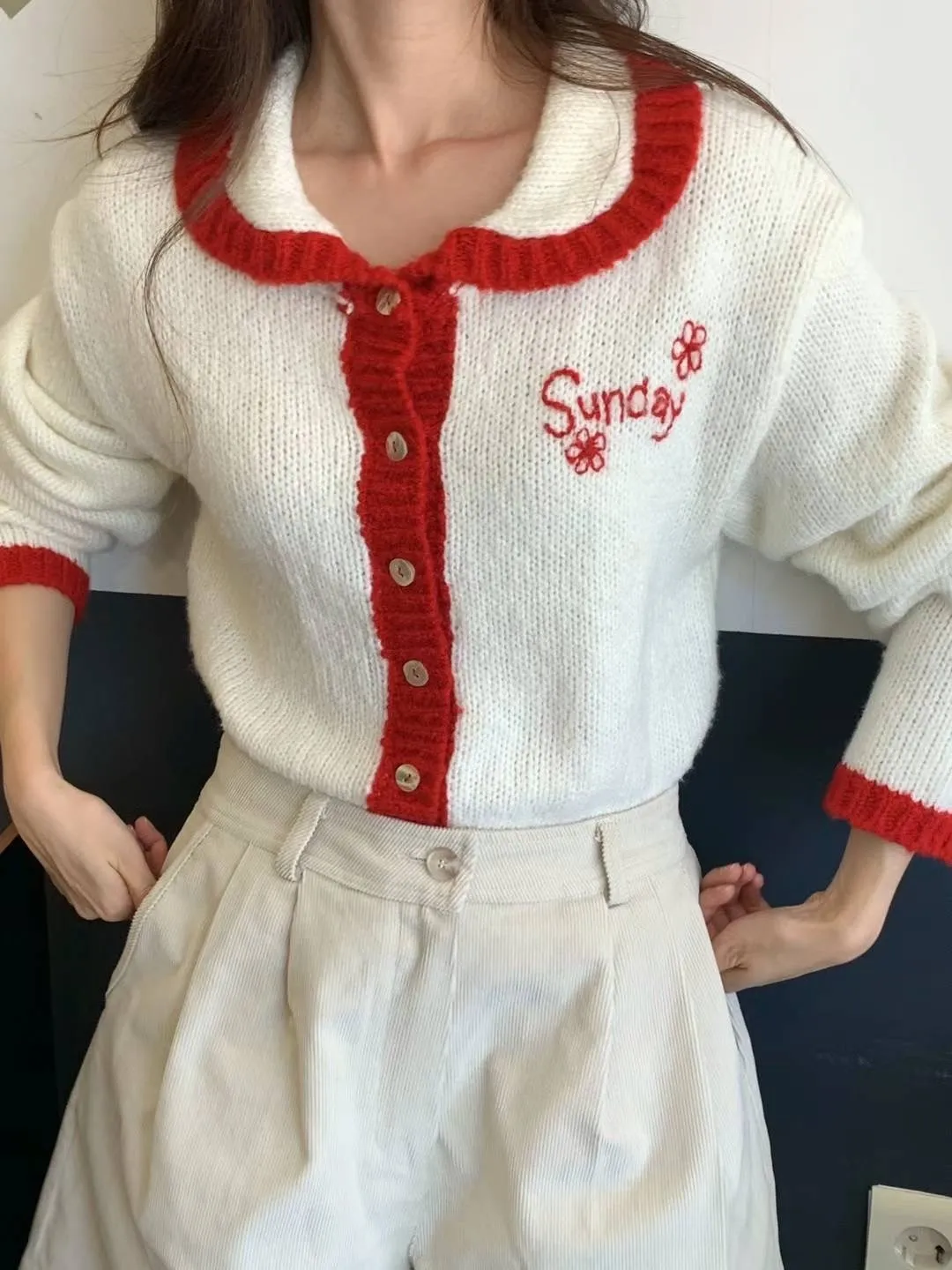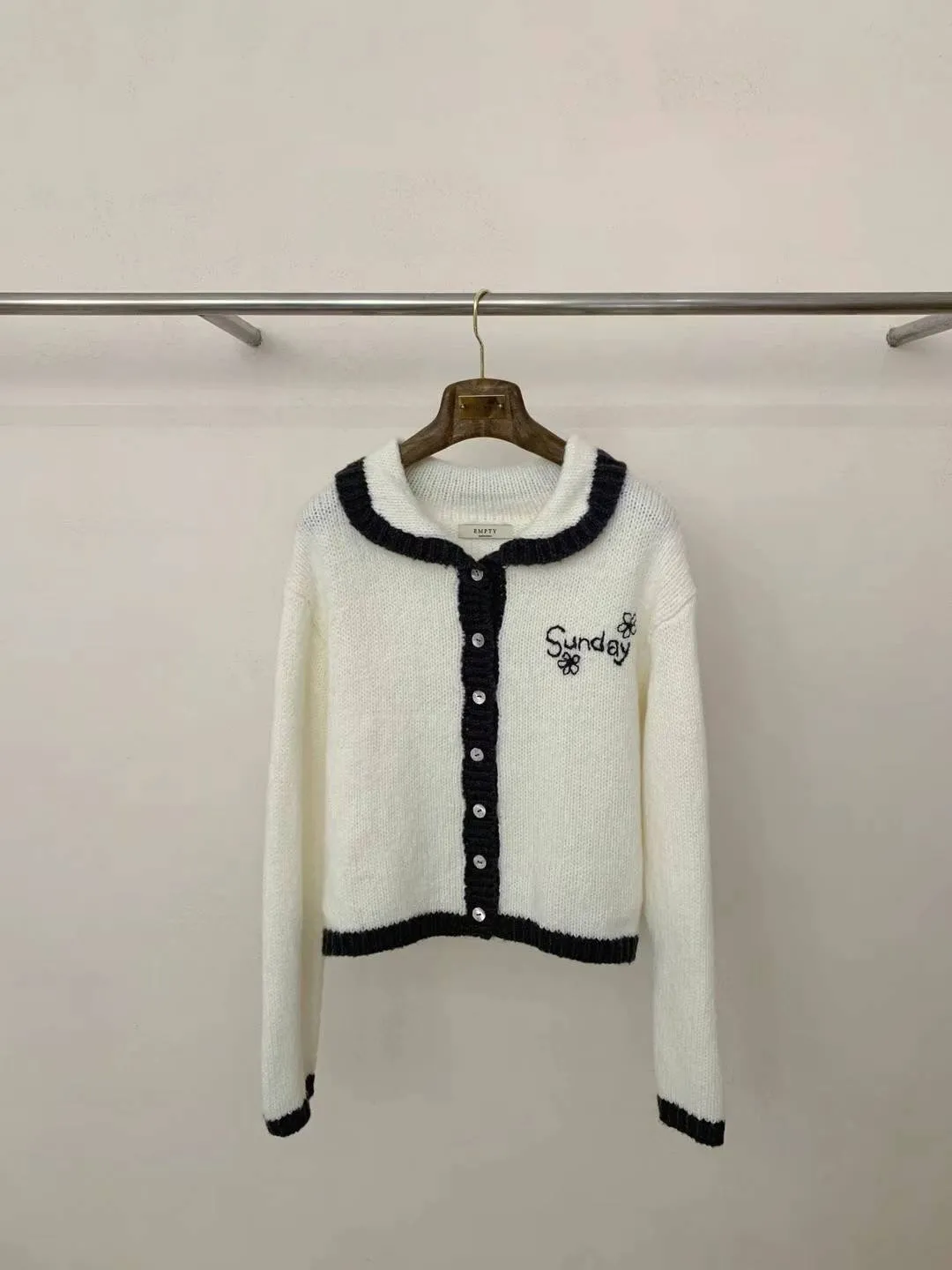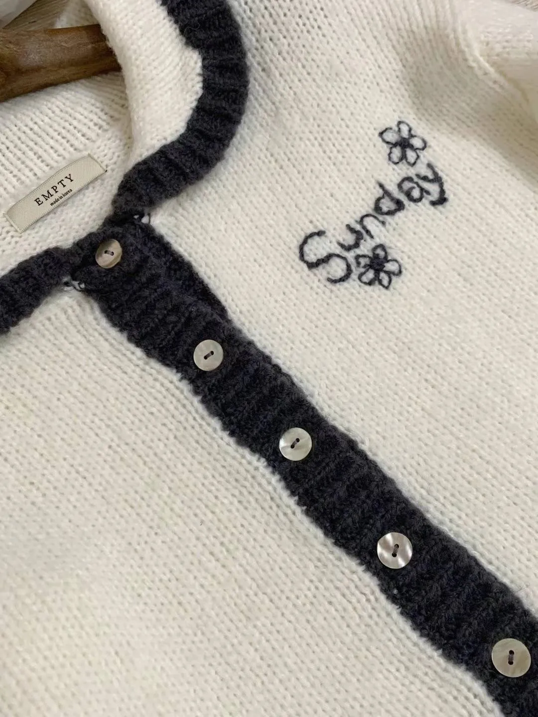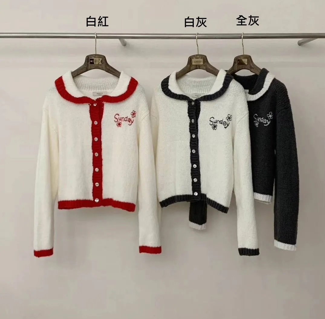 LV514跳色英文小花針織上衣外套 白灰 白紅 全灰 官網價$1290 線上價$1260