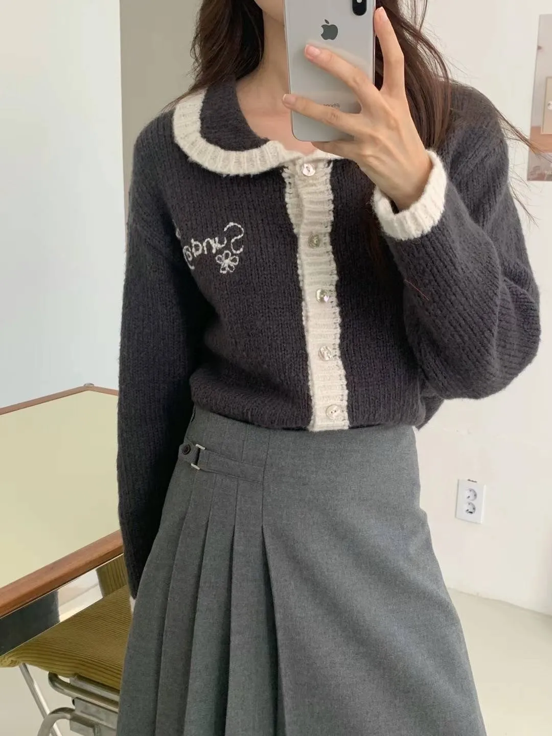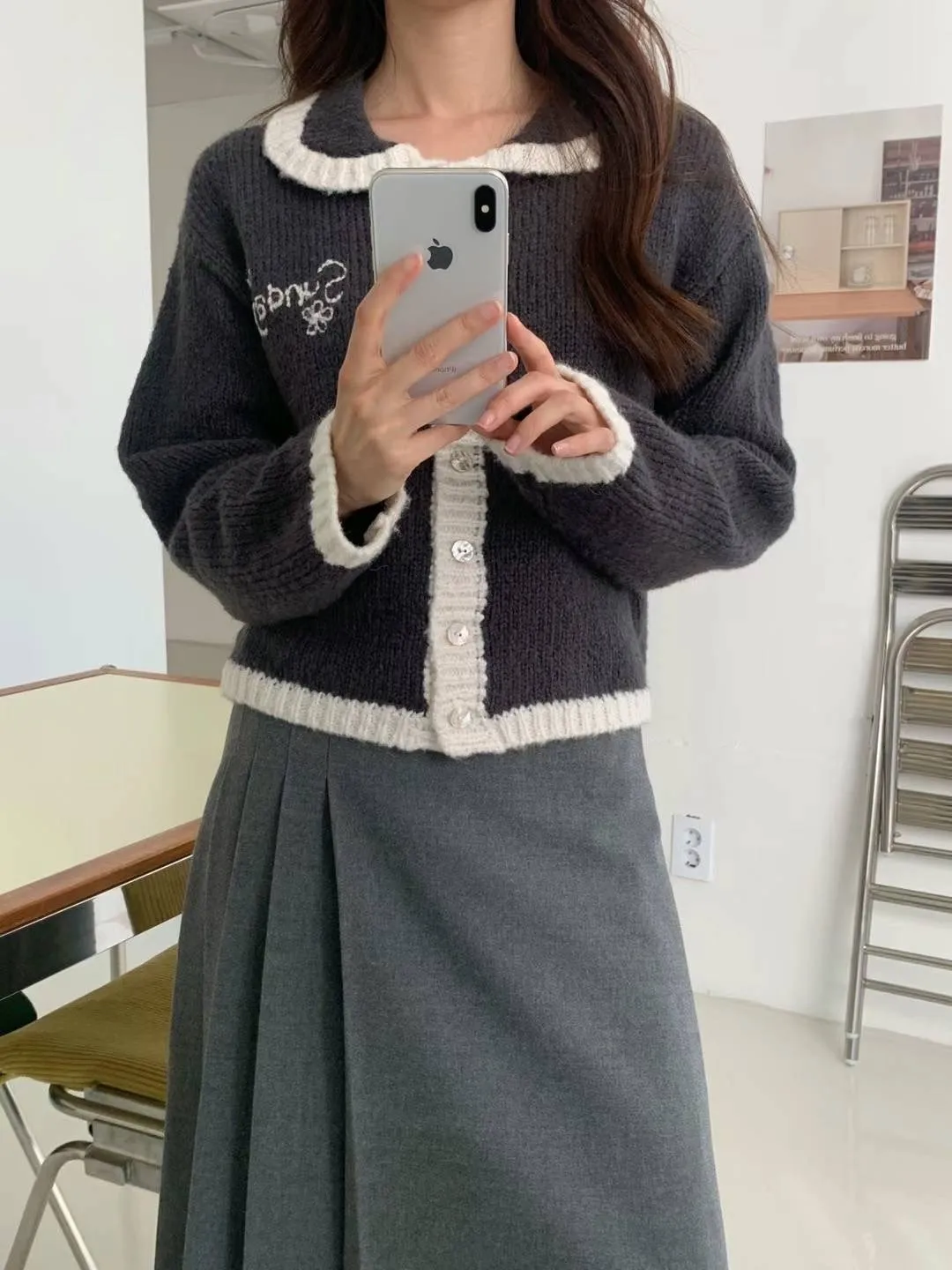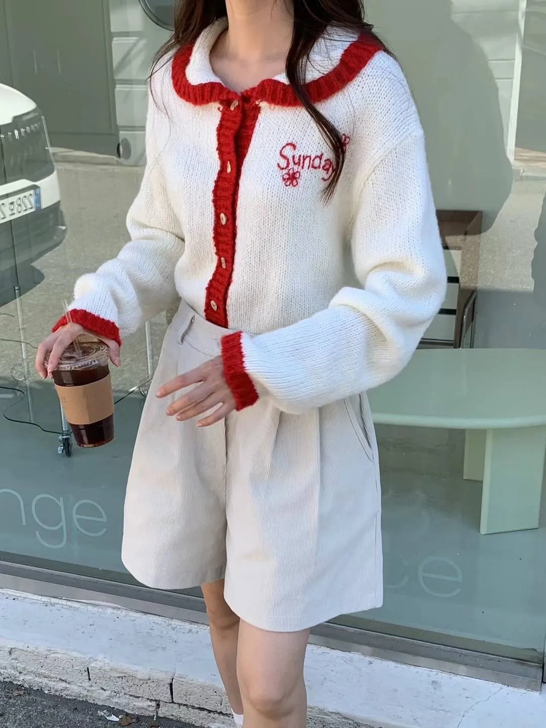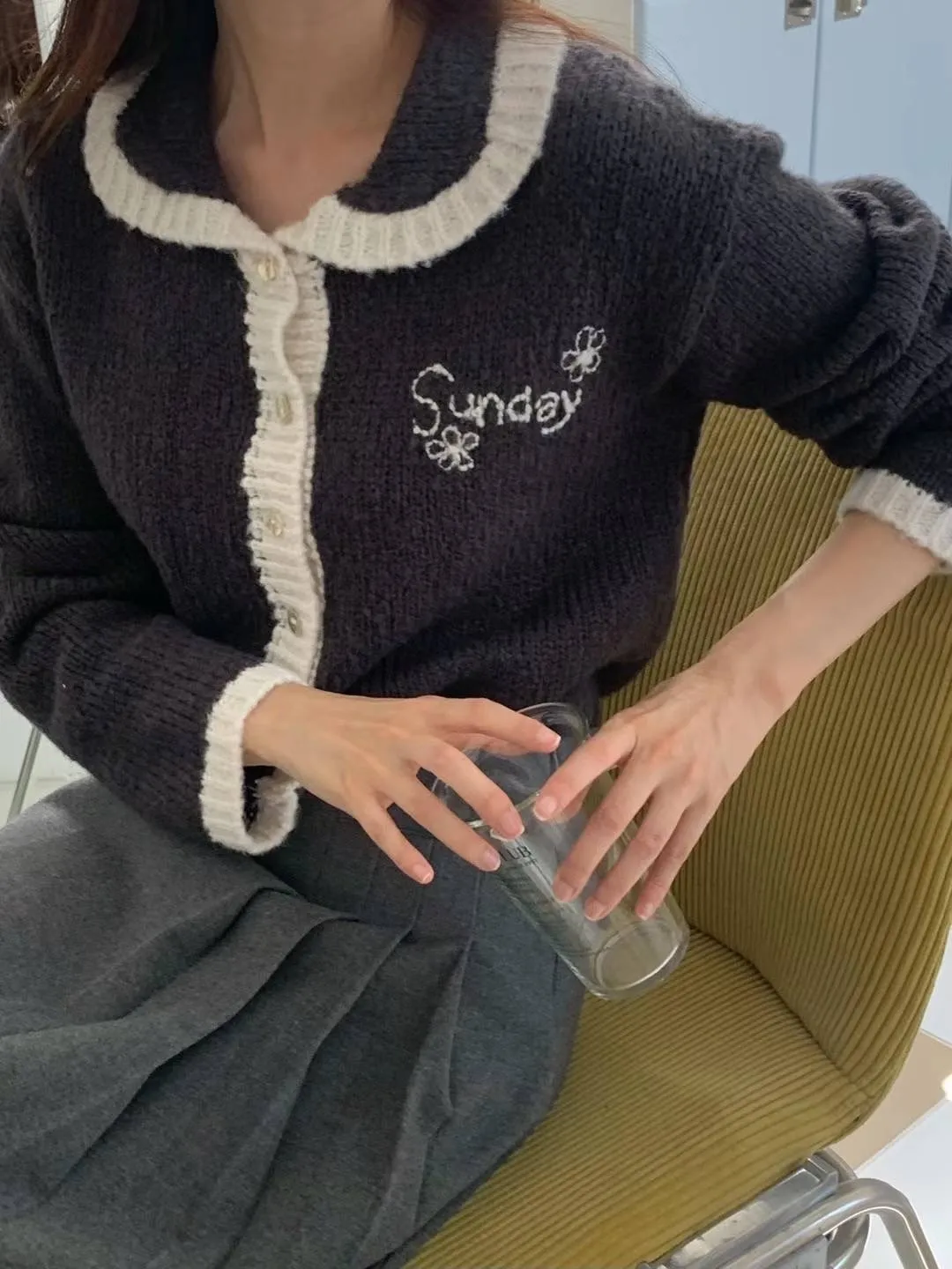 LV514跳色英文小花針織上衣外套 白灰 白紅 全灰 官網價$1290 線上價$1260