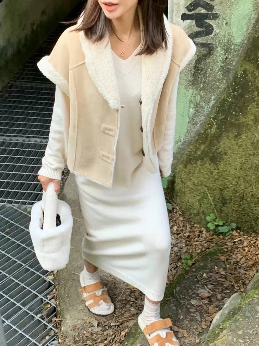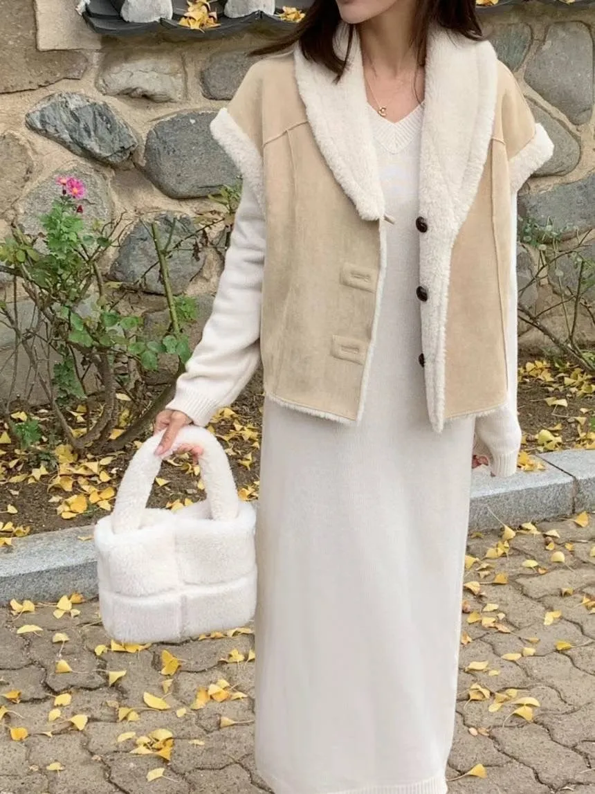 LV518推薦款麂皮兩面穿背心 米 咖 官網價$1520 線上價$1490