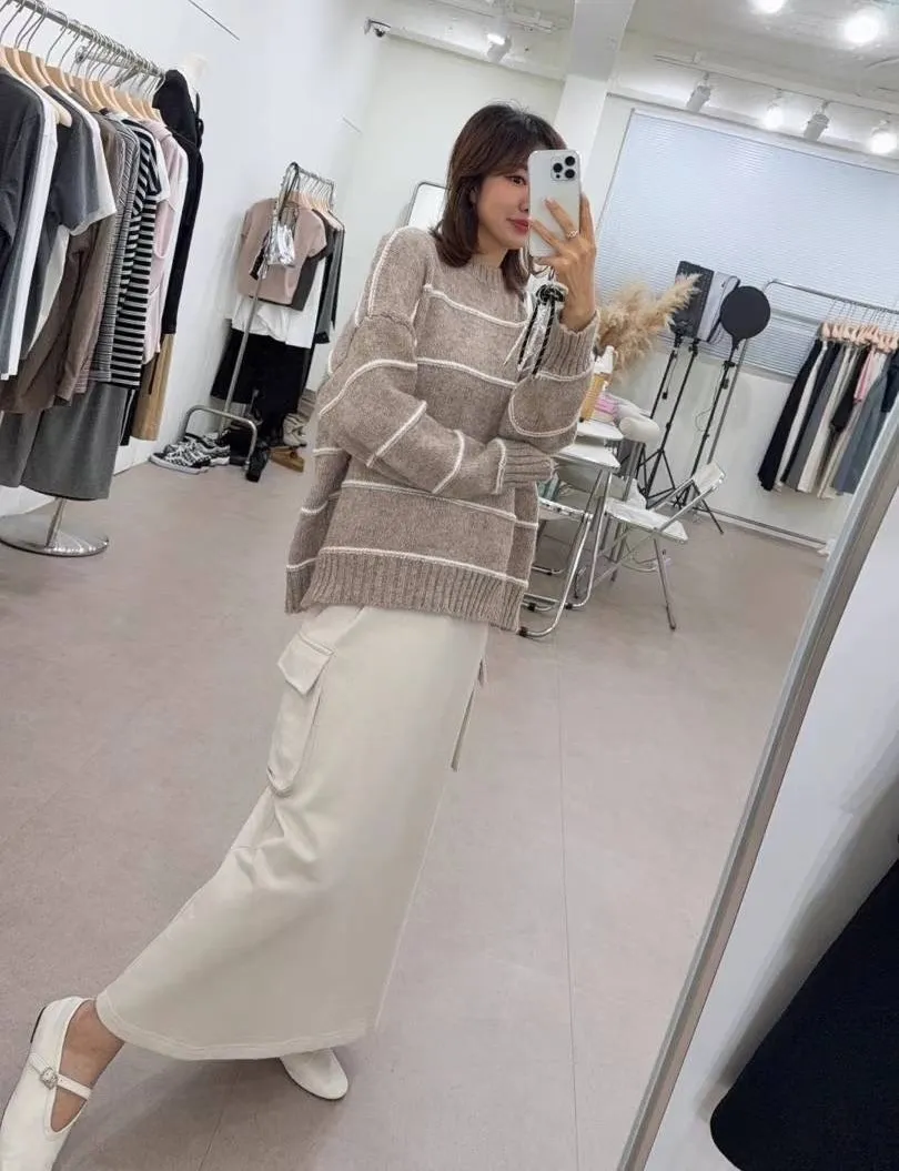 LV553溫柔條紋針織上衣 米 灰 奶茶 官網價$929 永恆甜甜價$899