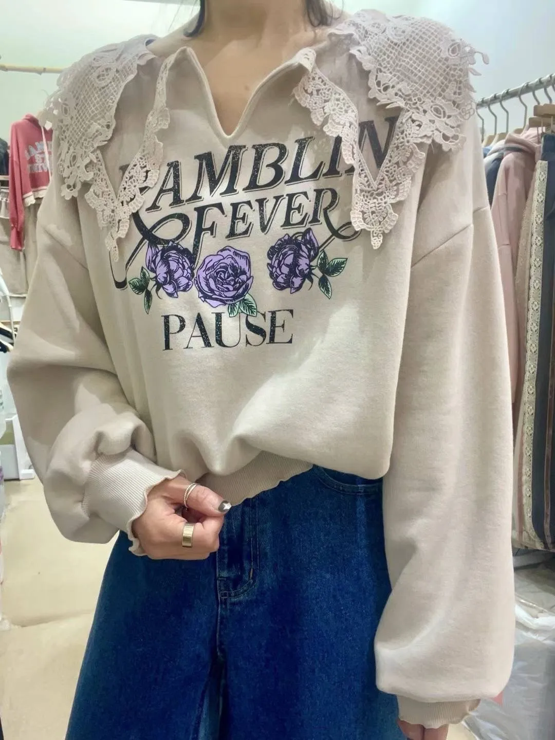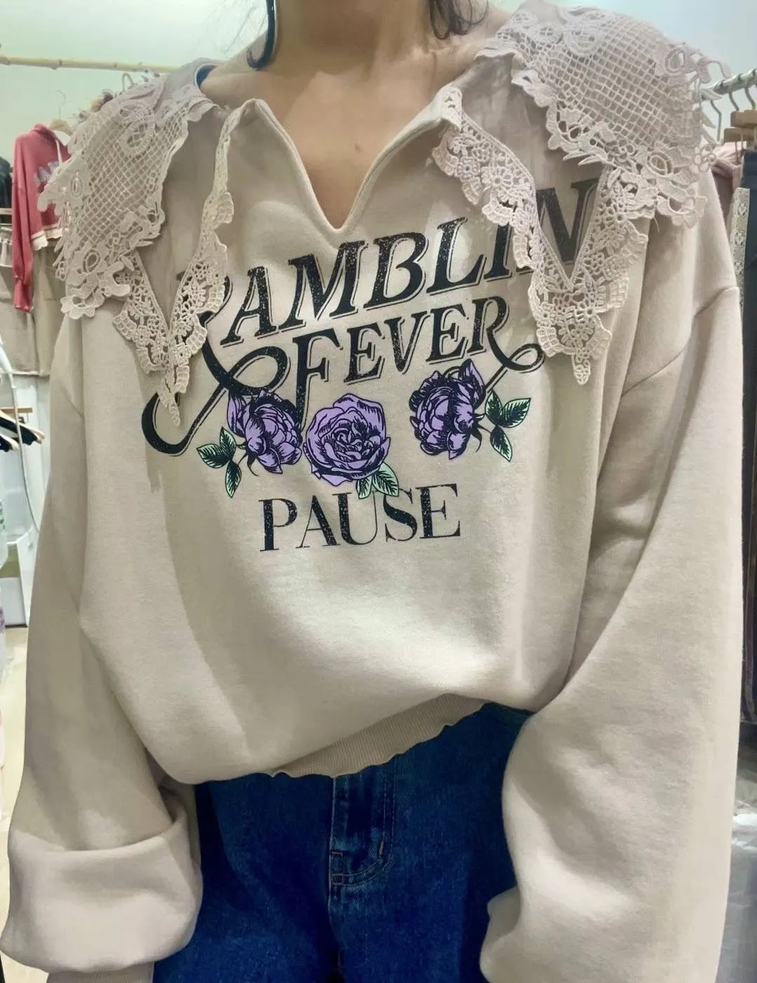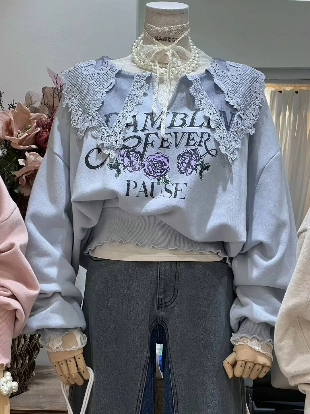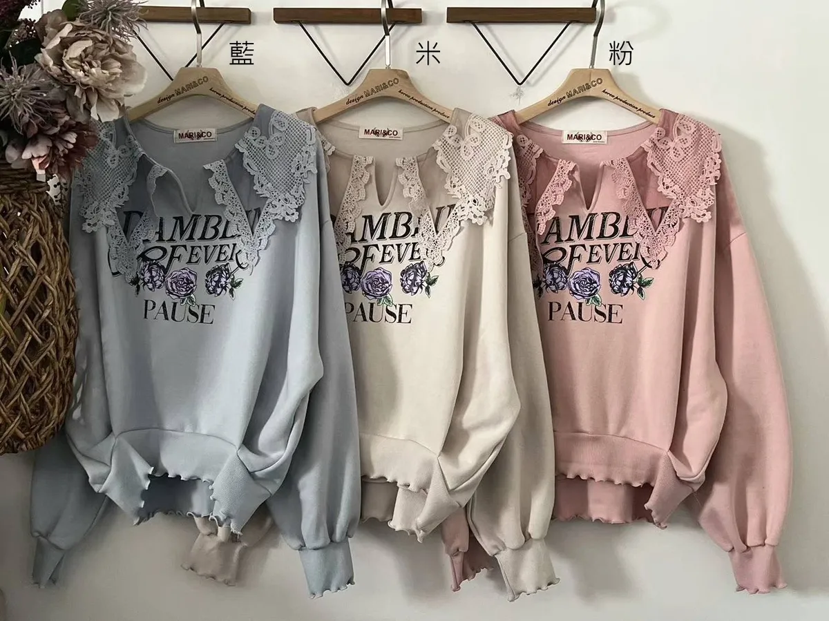 LV600透光蕾絲雙層領pause上衣 米 藍 粉 官網價$1320 線上價$1290
