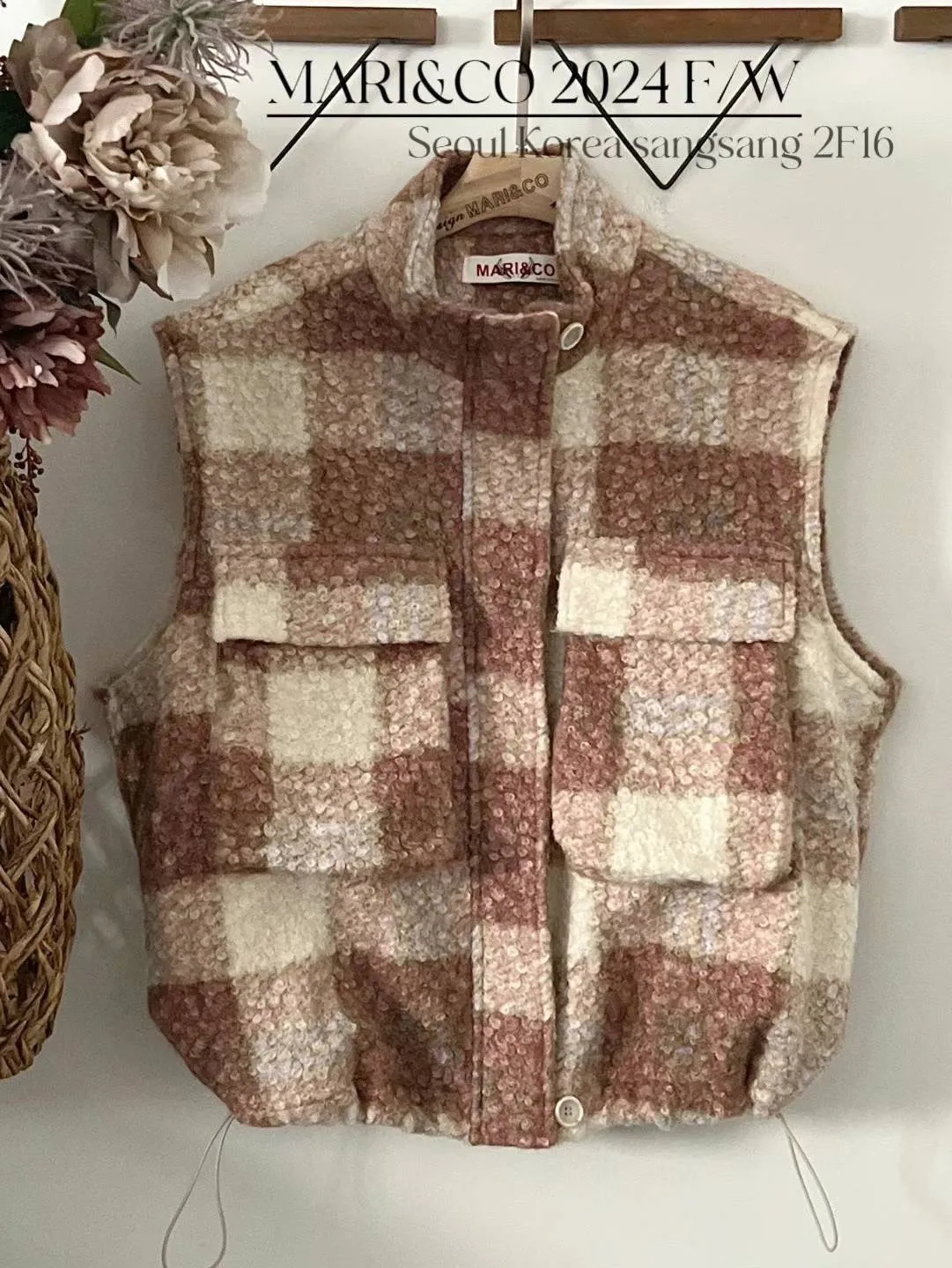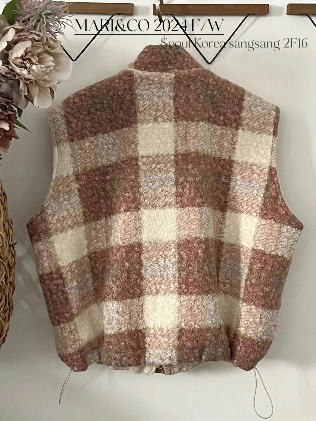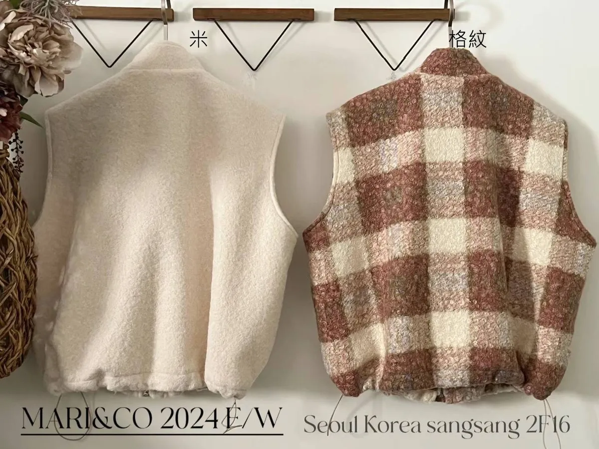 LV601細緻圈圈Q毛背心 米 格紋 官網價$2120 線上價$2090