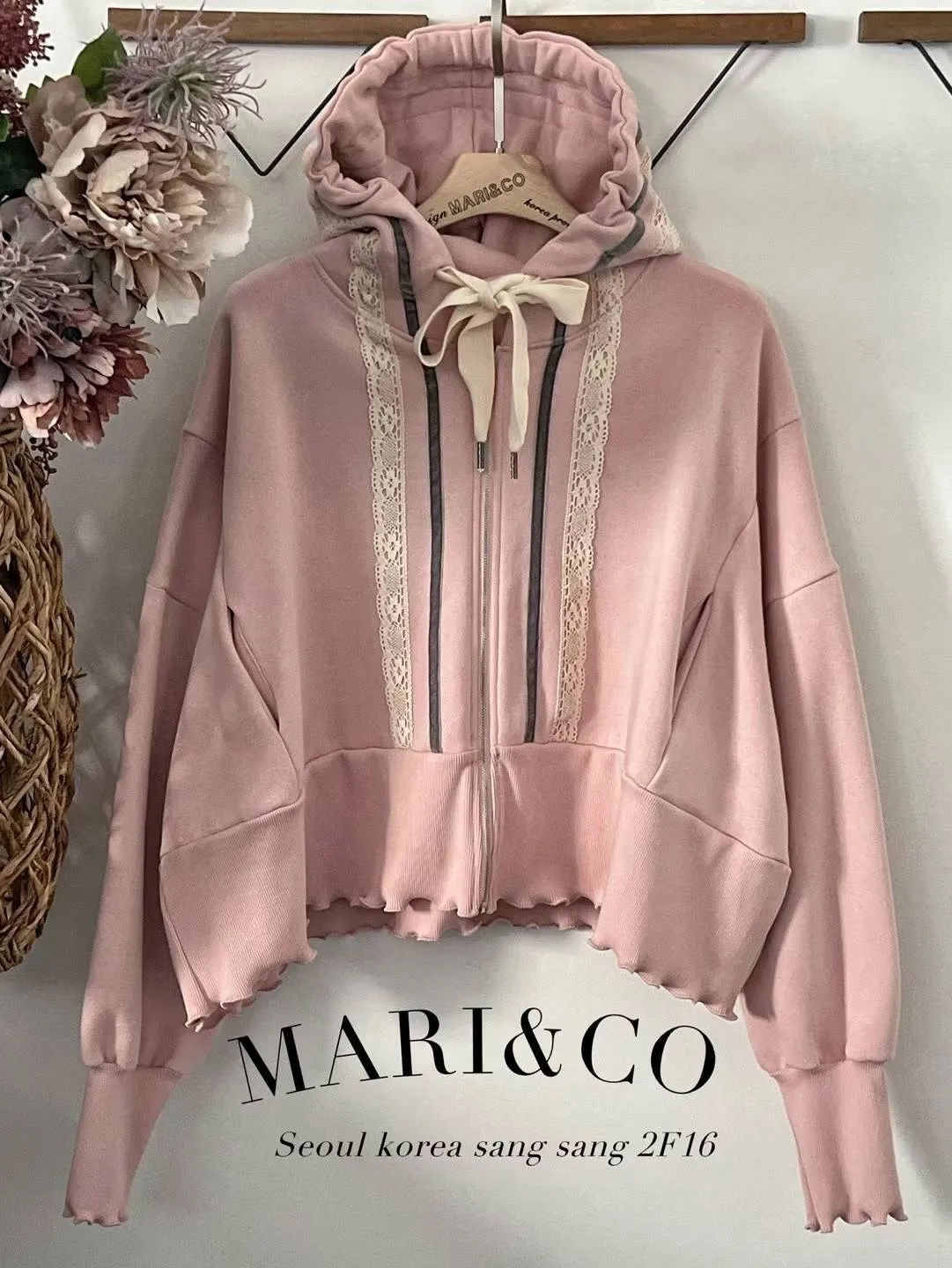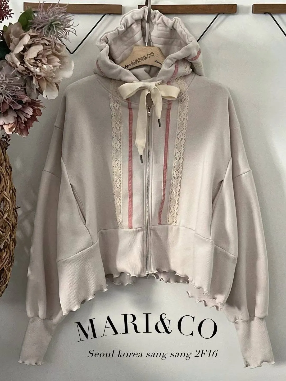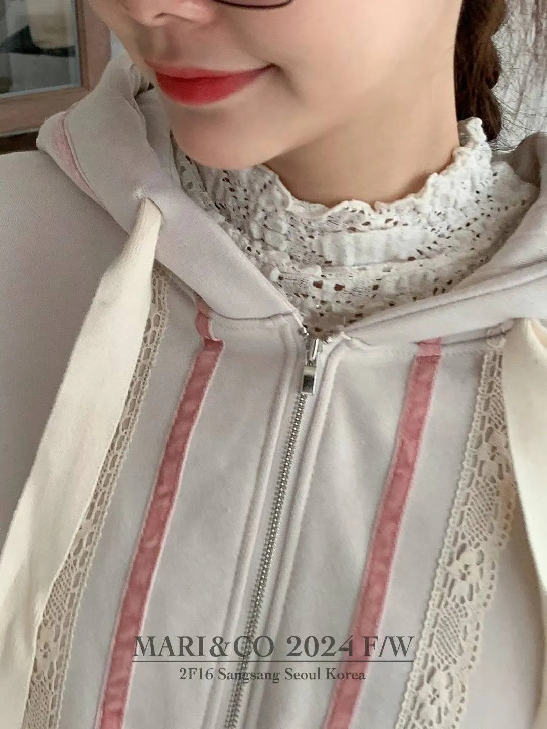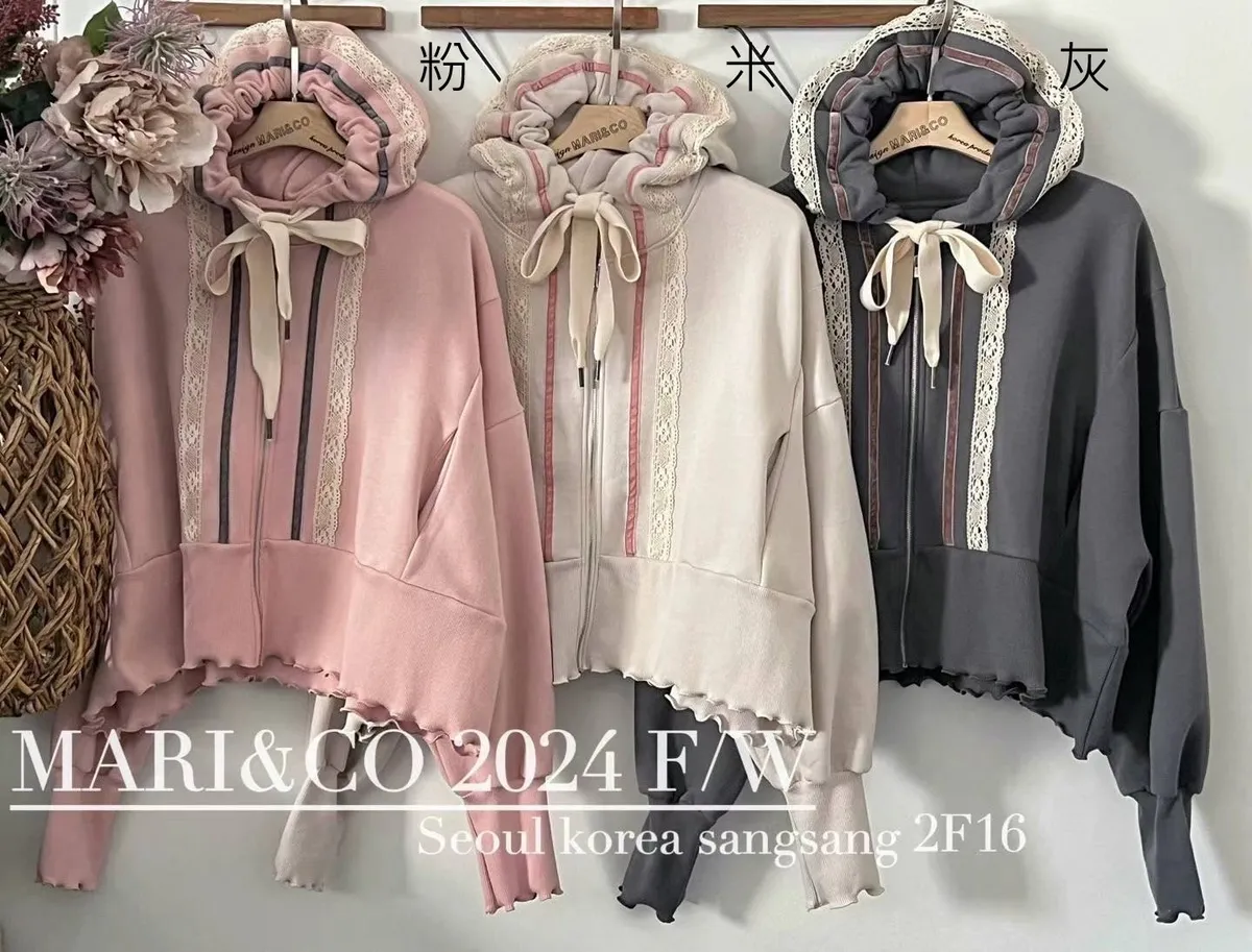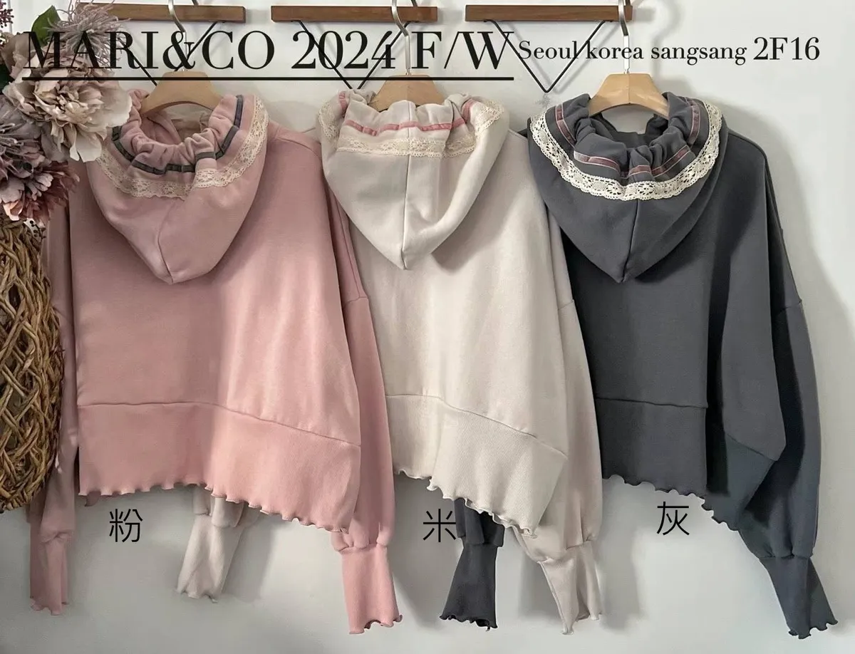 LV609套裝的絕美蕾絲連帽上衣 米 粉 灰 官網價$1390 線上價$1360