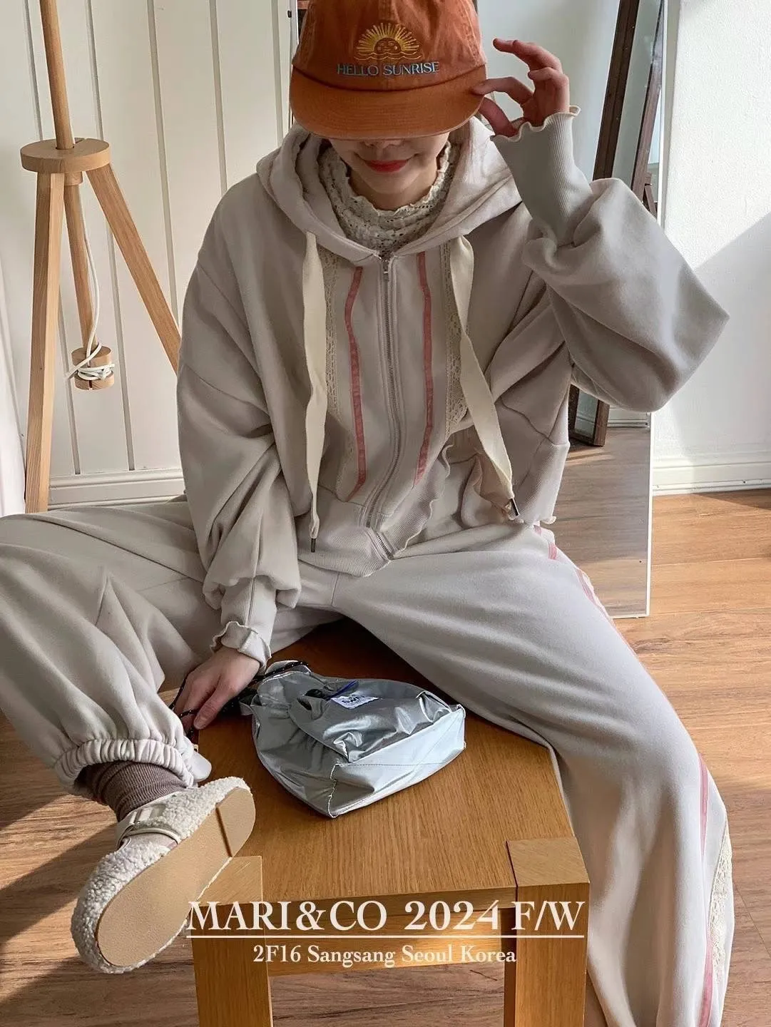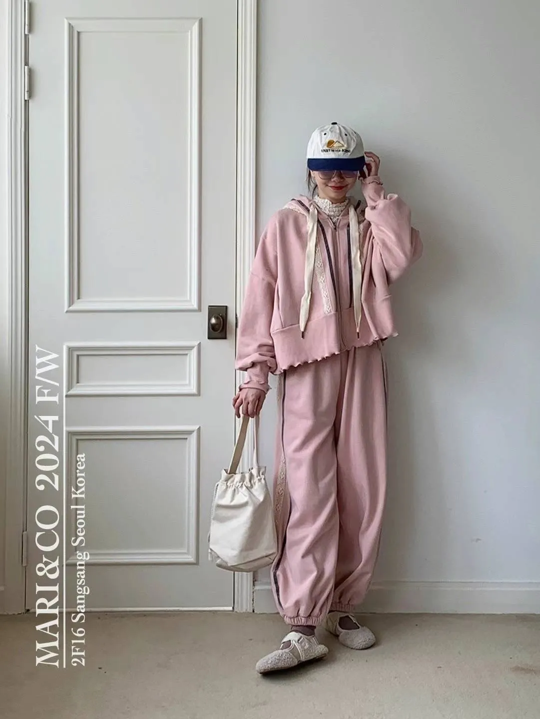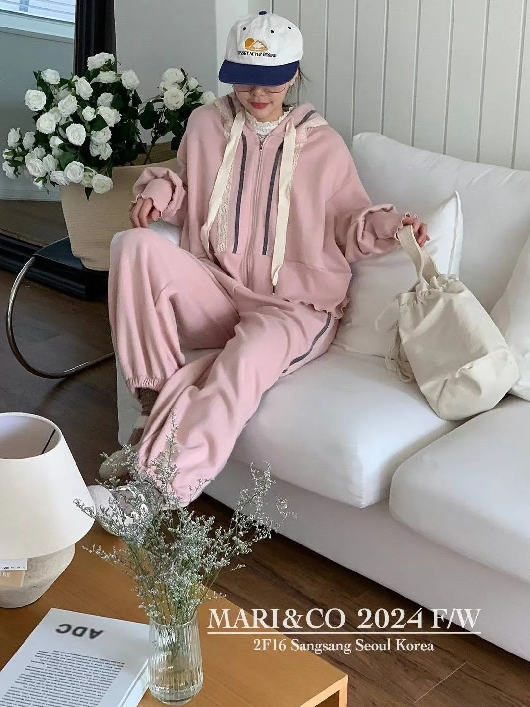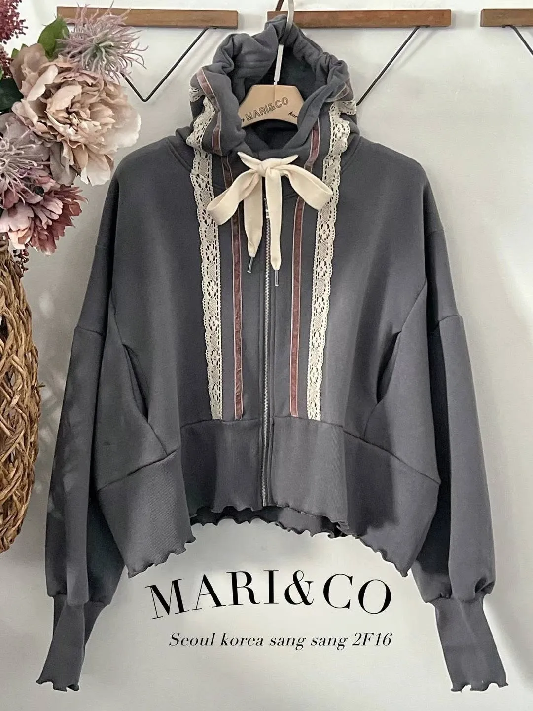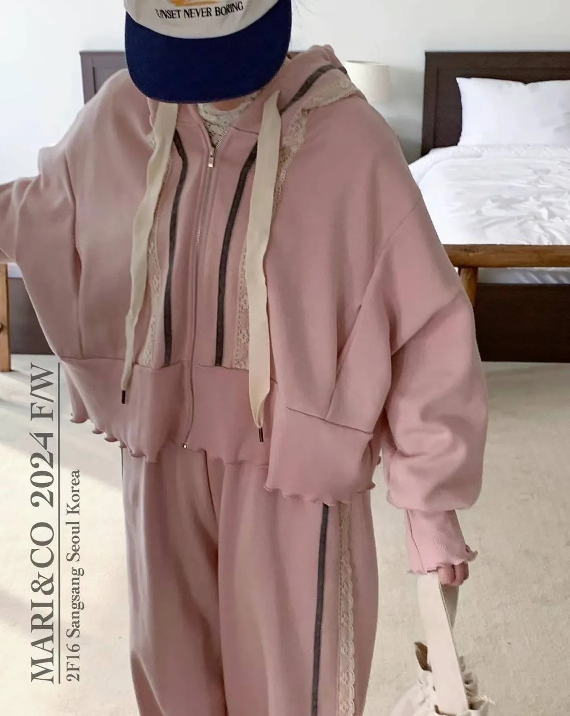 LV609套裝的絕美蕾絲連帽上衣 米 粉 灰 官網價$1390 線上價$1360