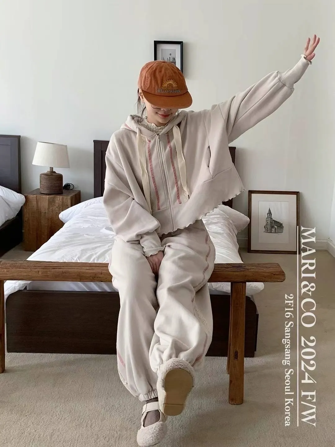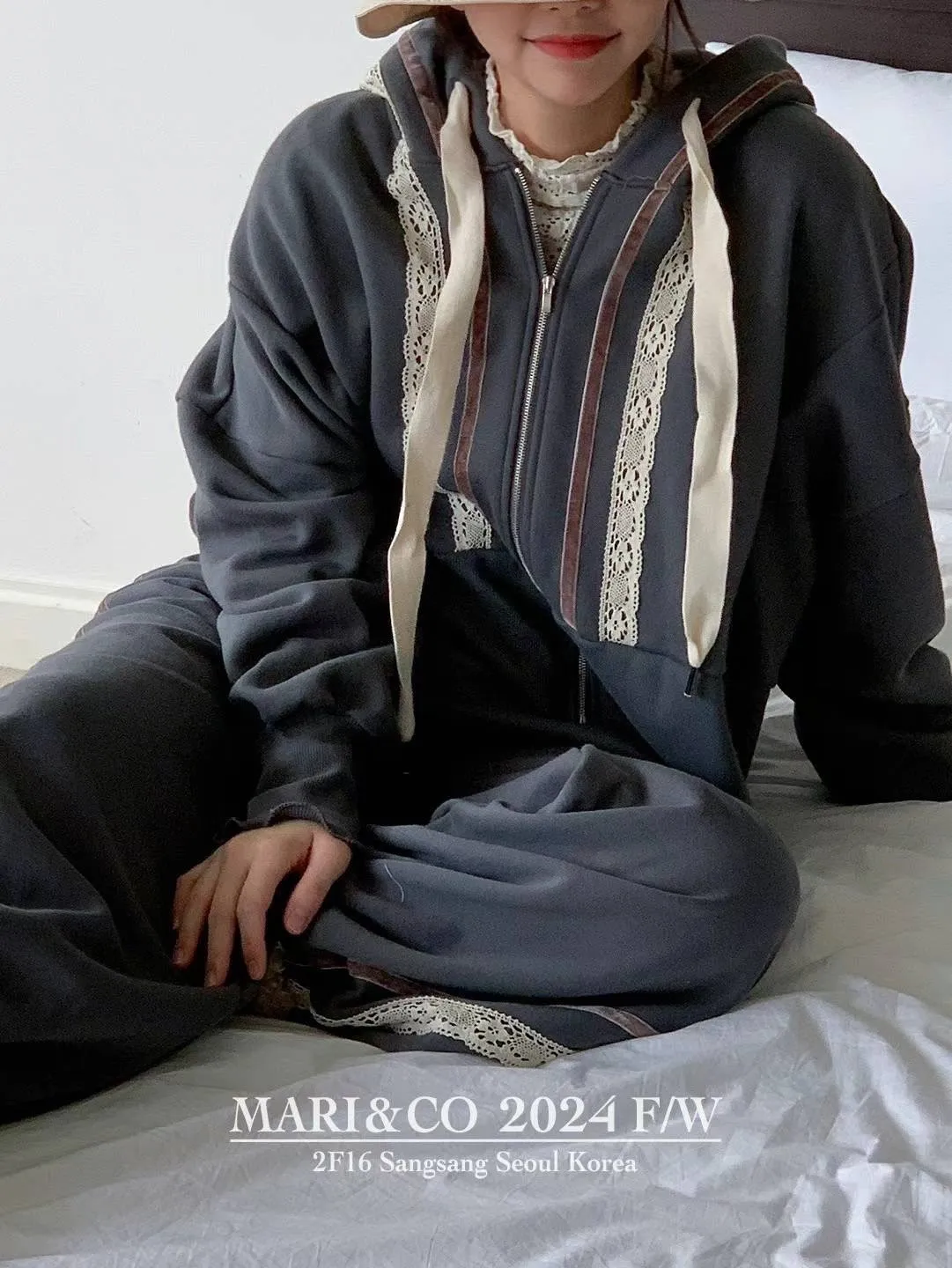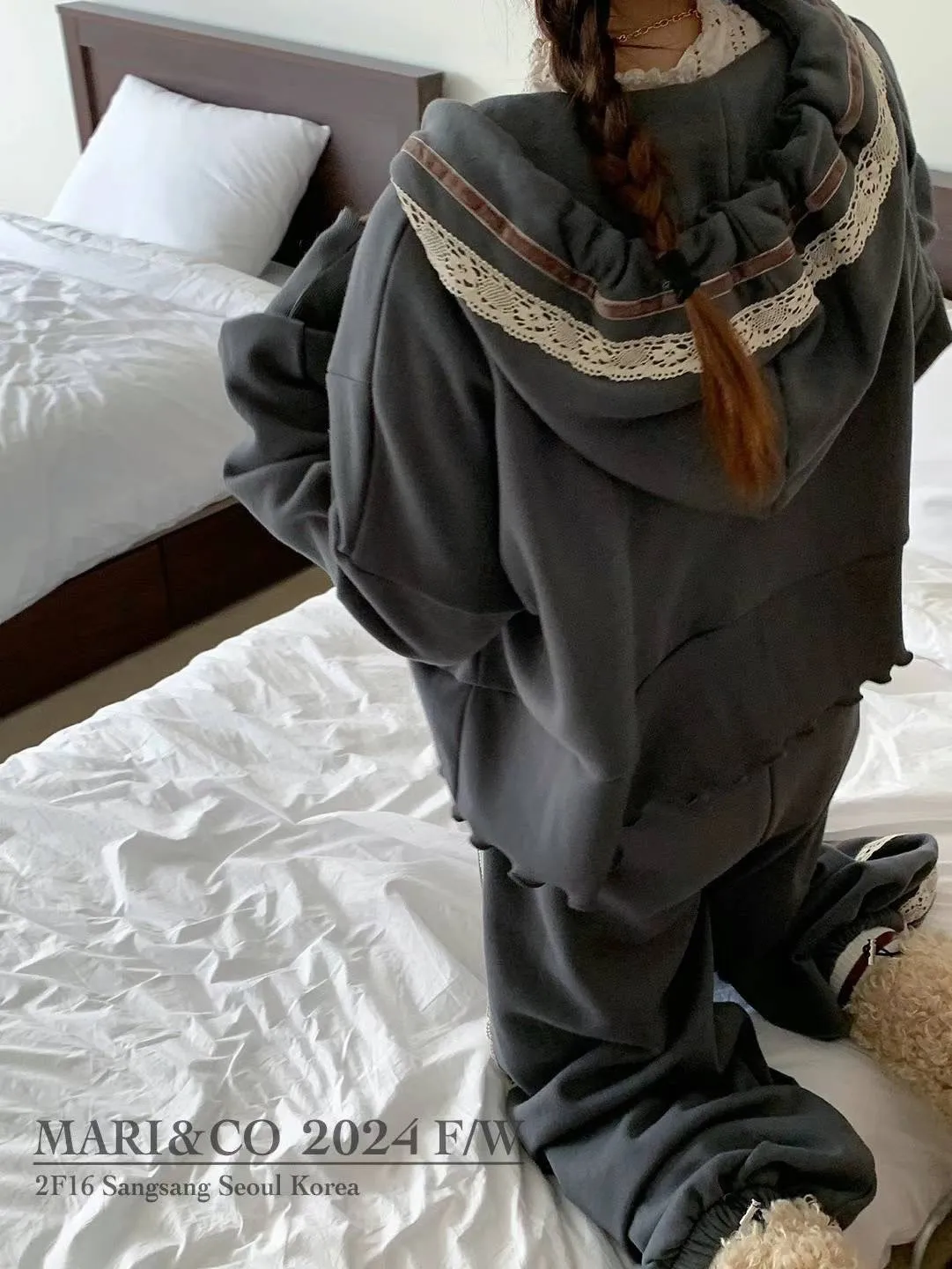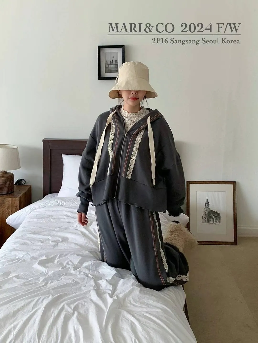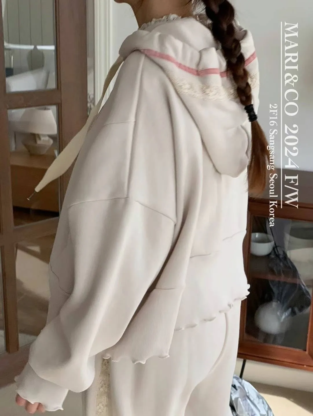 LV609套裝的絕美蕾絲連帽上衣 米 粉 灰 官網價$1390 線上價$1360
