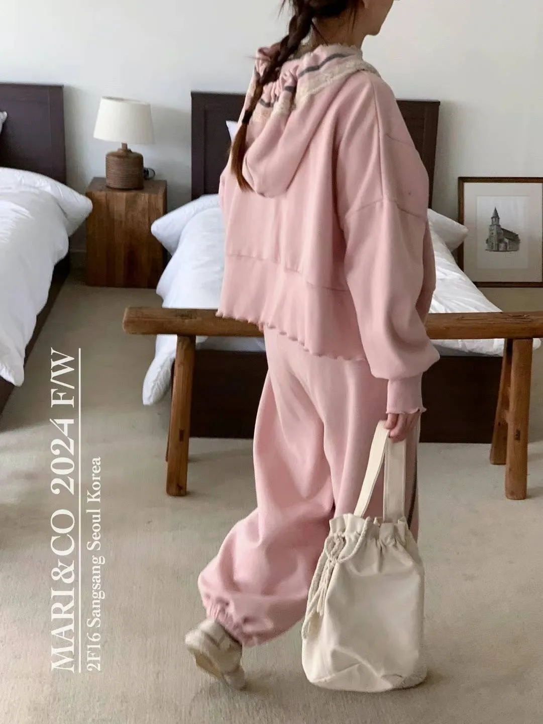 棉 薄款 內襯微刷毛 設計粗連帽抽繩 空間寬鬆舒適