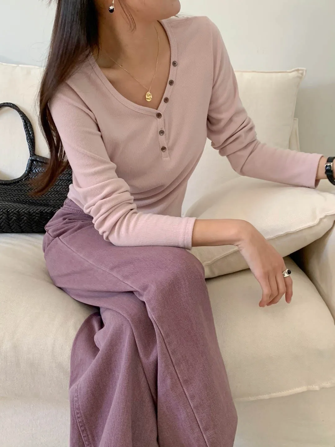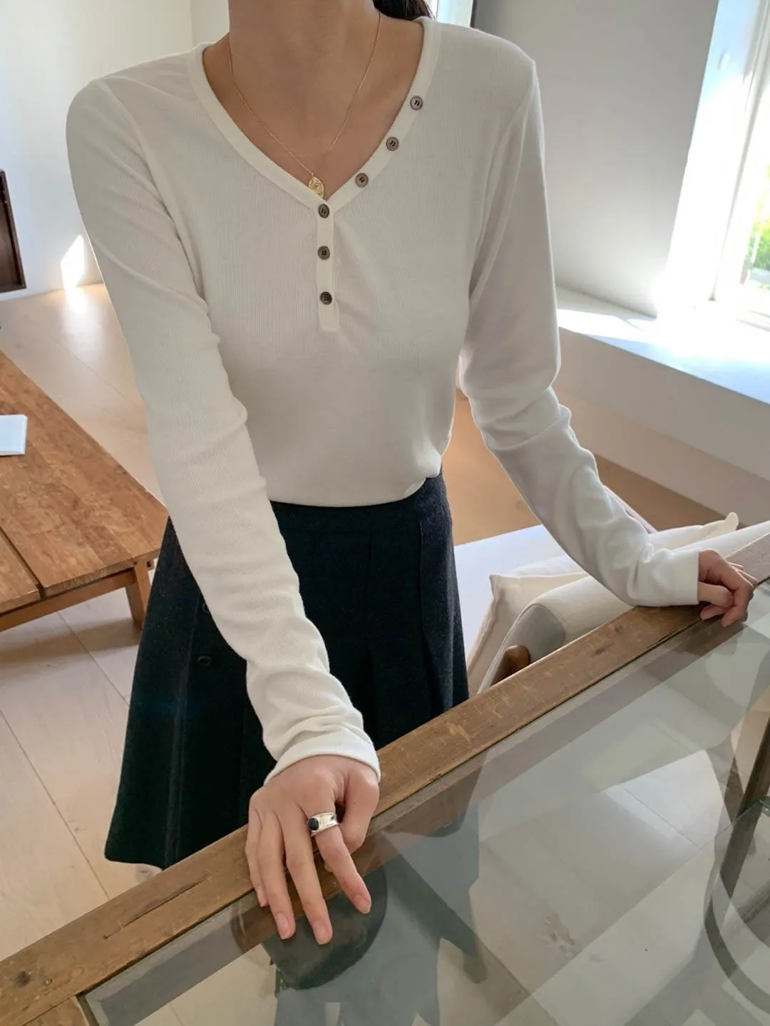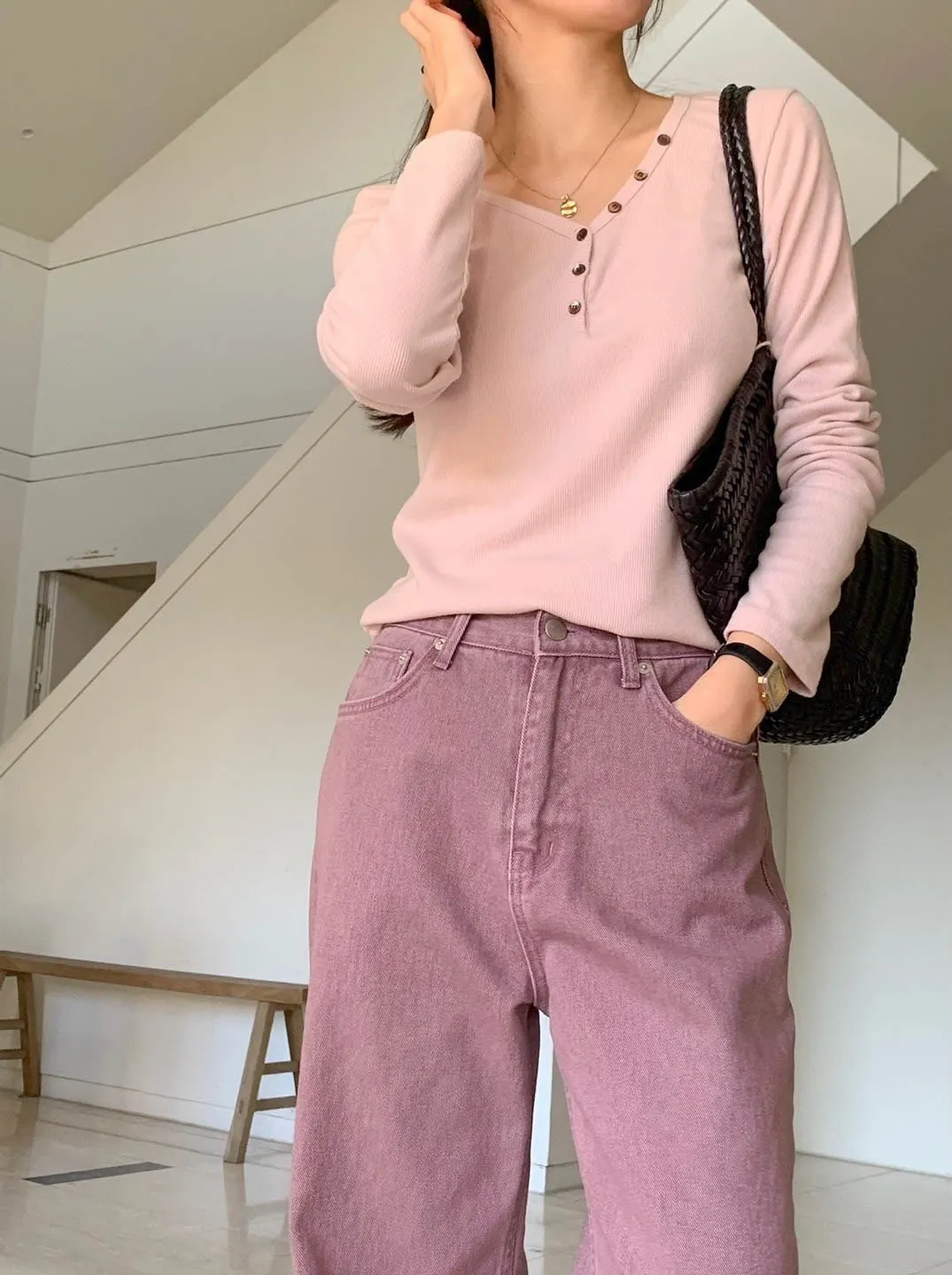 LV624側領設計釦子上衣 白 粉 灰 黑 官網價$629 永恆甜甜價$599