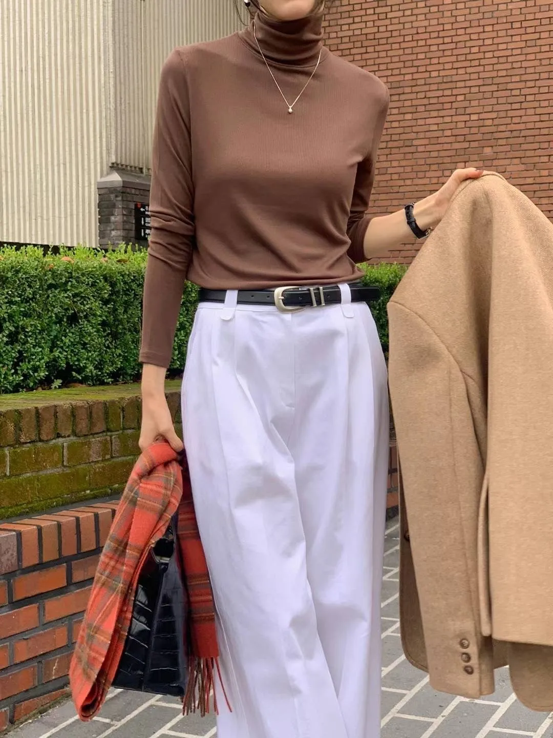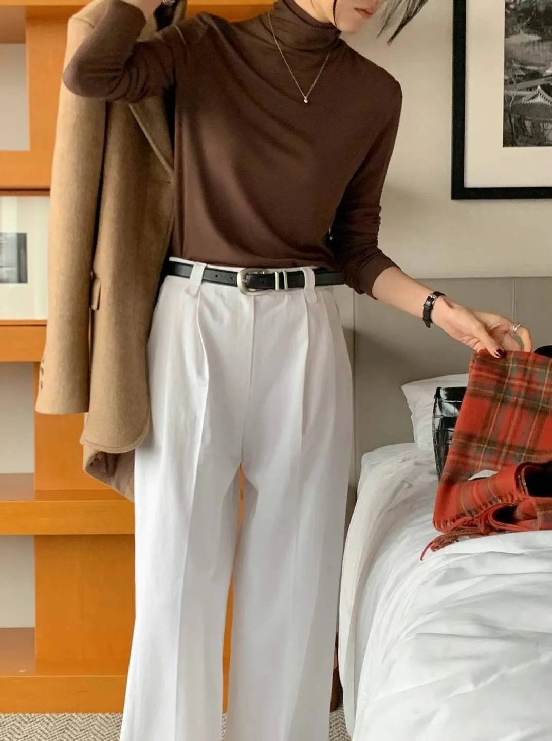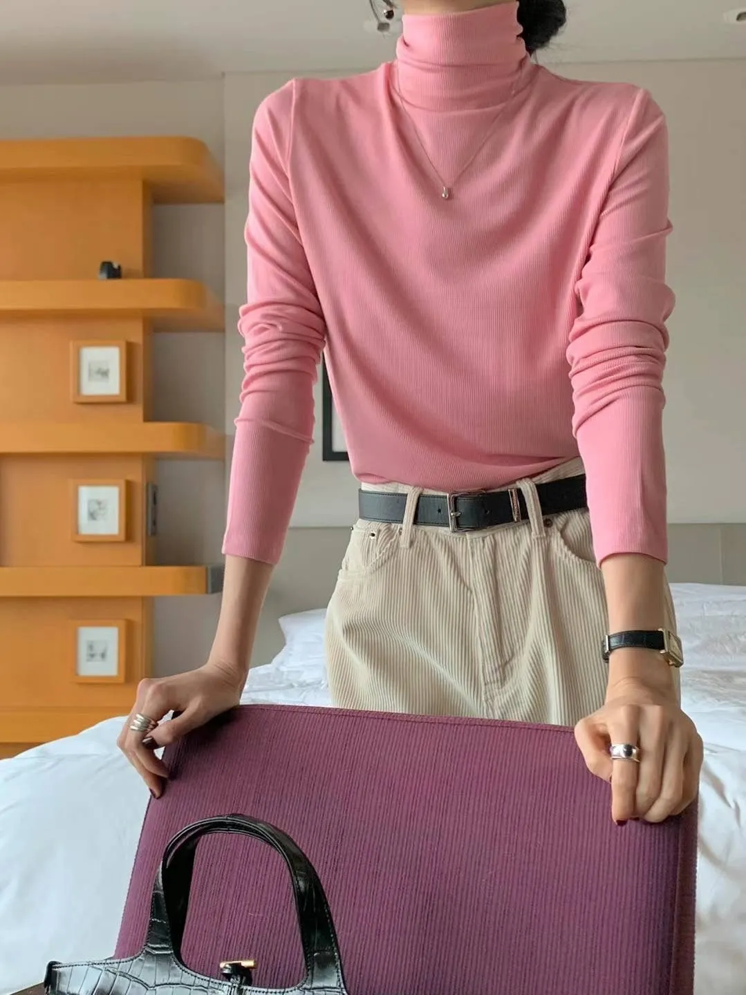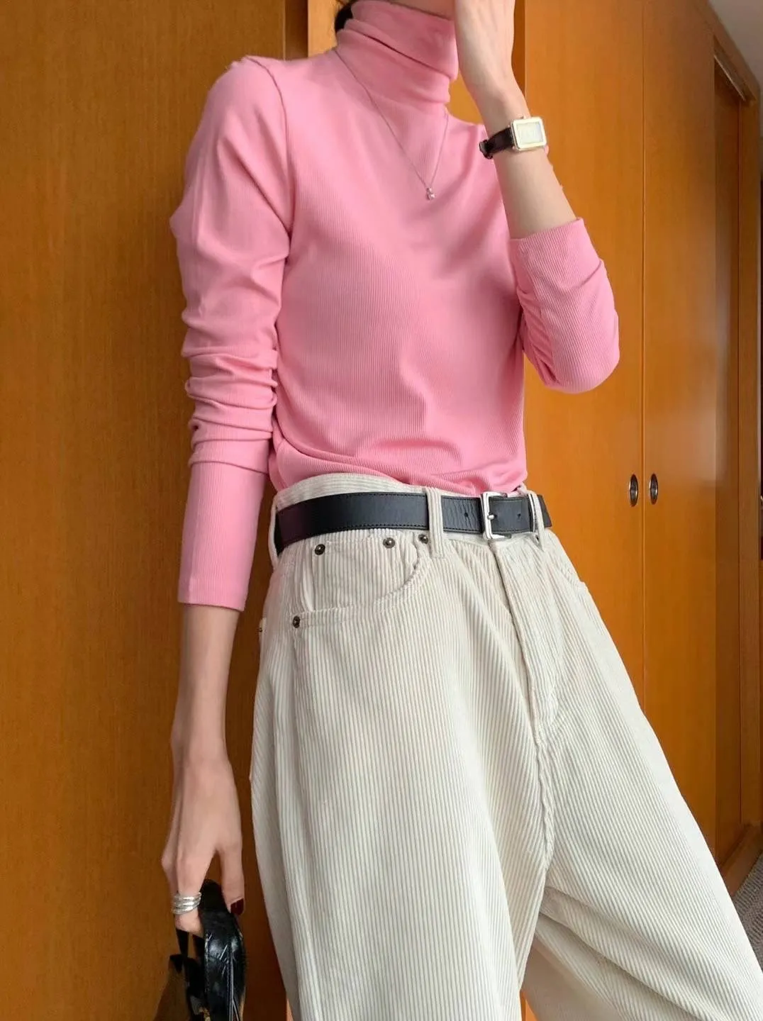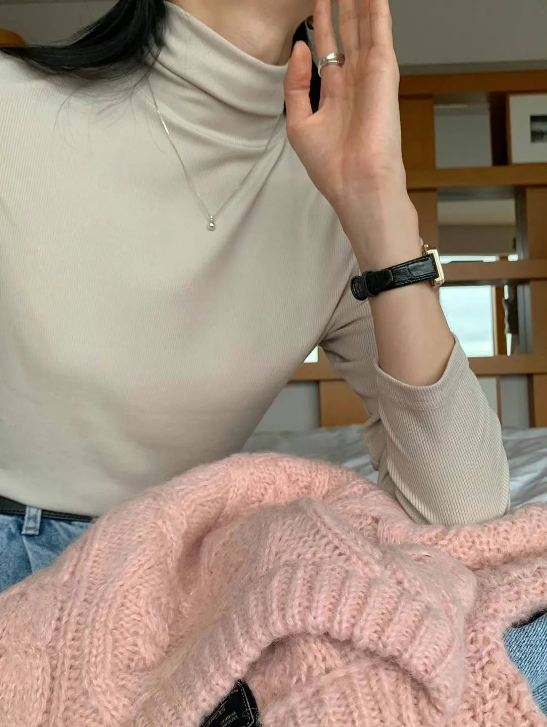 LV628天絲質感高領內搭上衣 白 米 粉 咖 灰 黑 官網價$729 永恆甜甜價$699