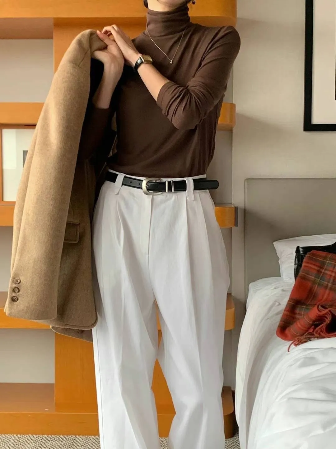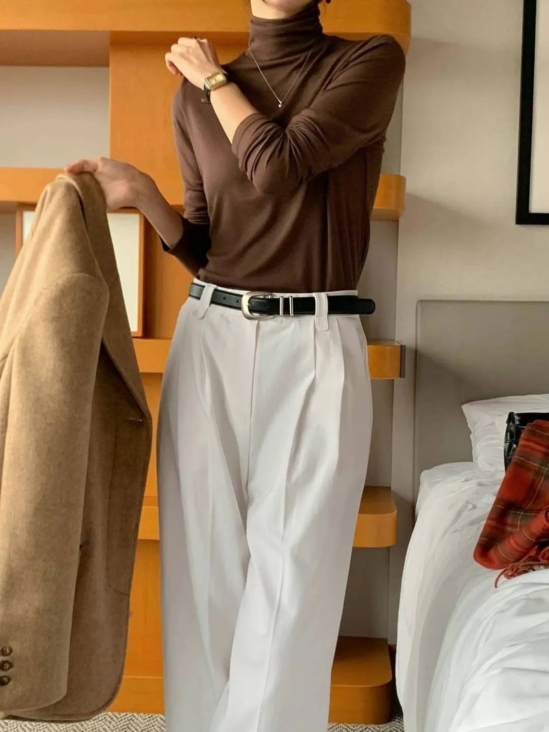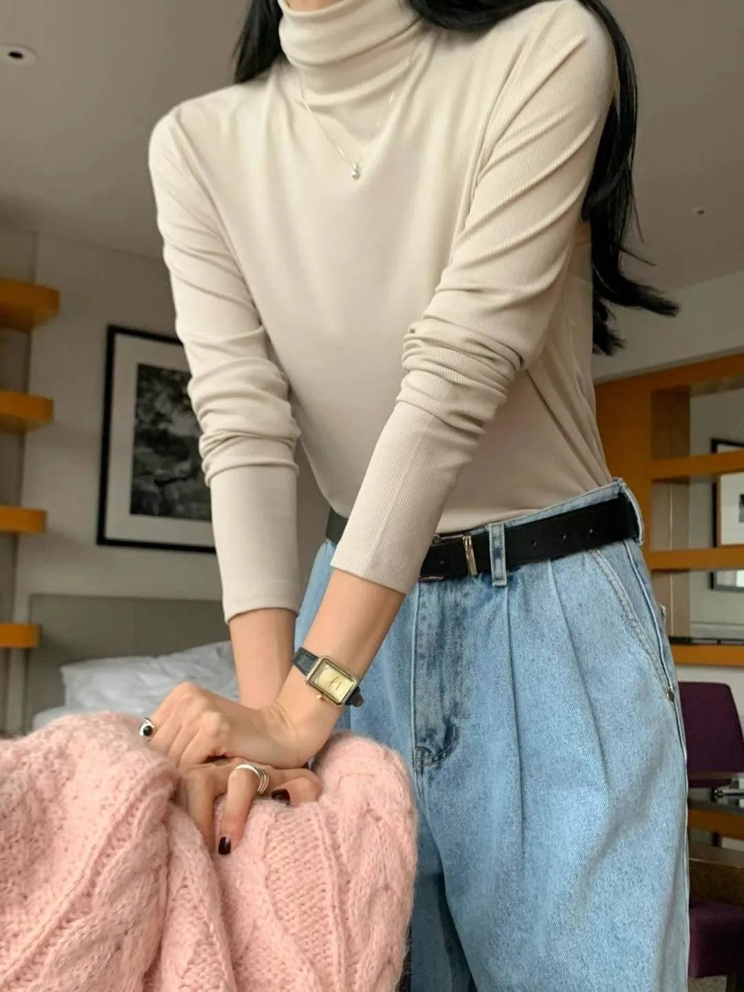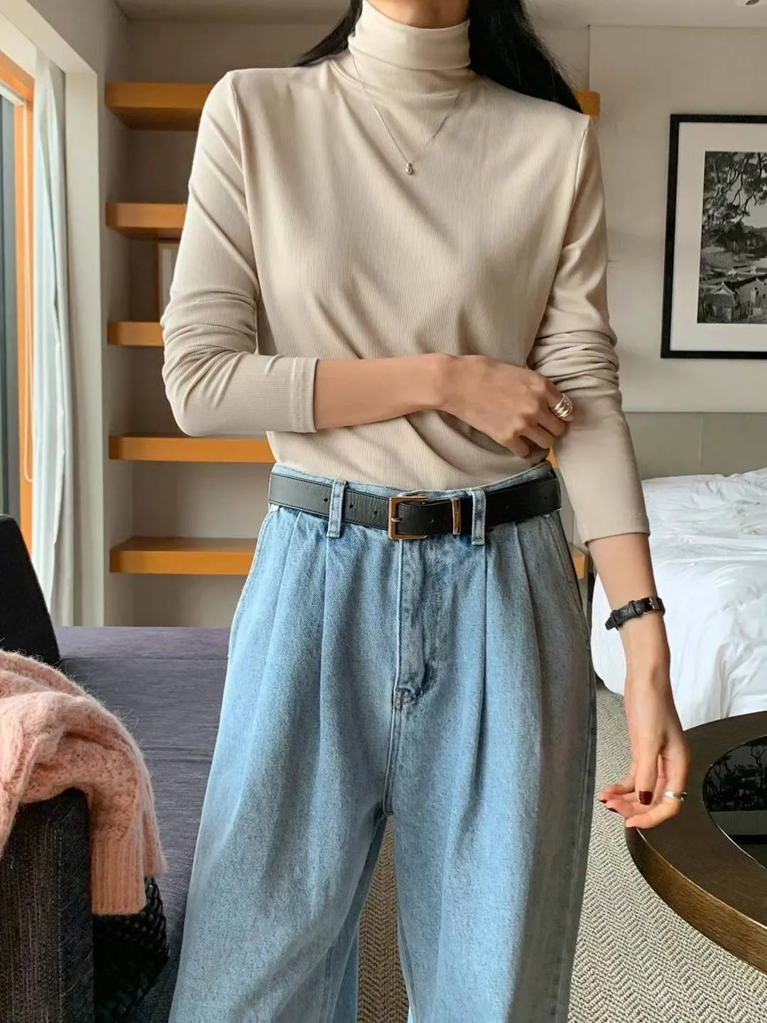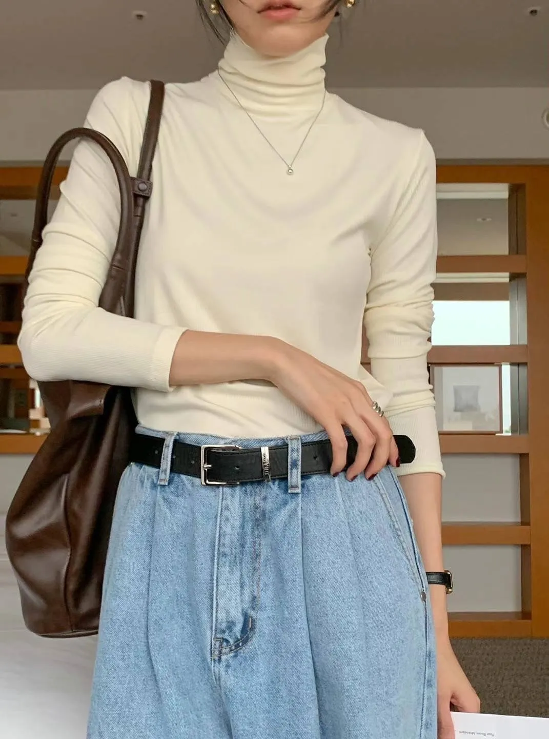 LV628天絲質感高領內搭上衣 白 米 粉 咖 灰 黑 官網價$729 永恆甜甜價$699