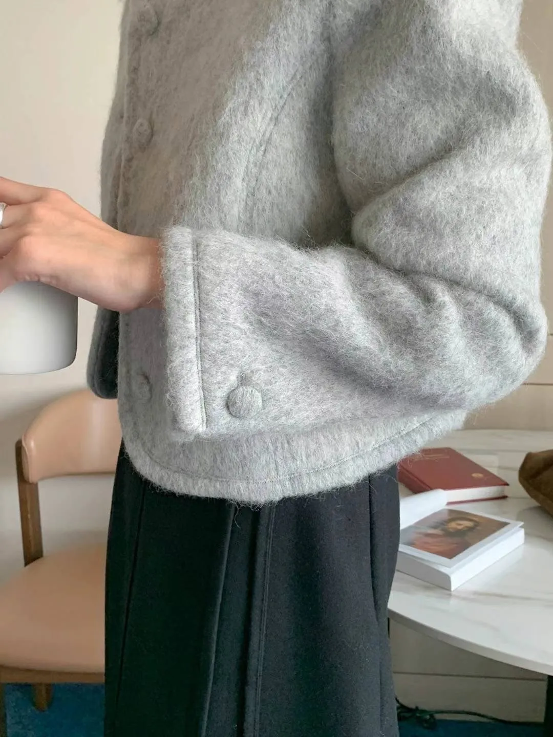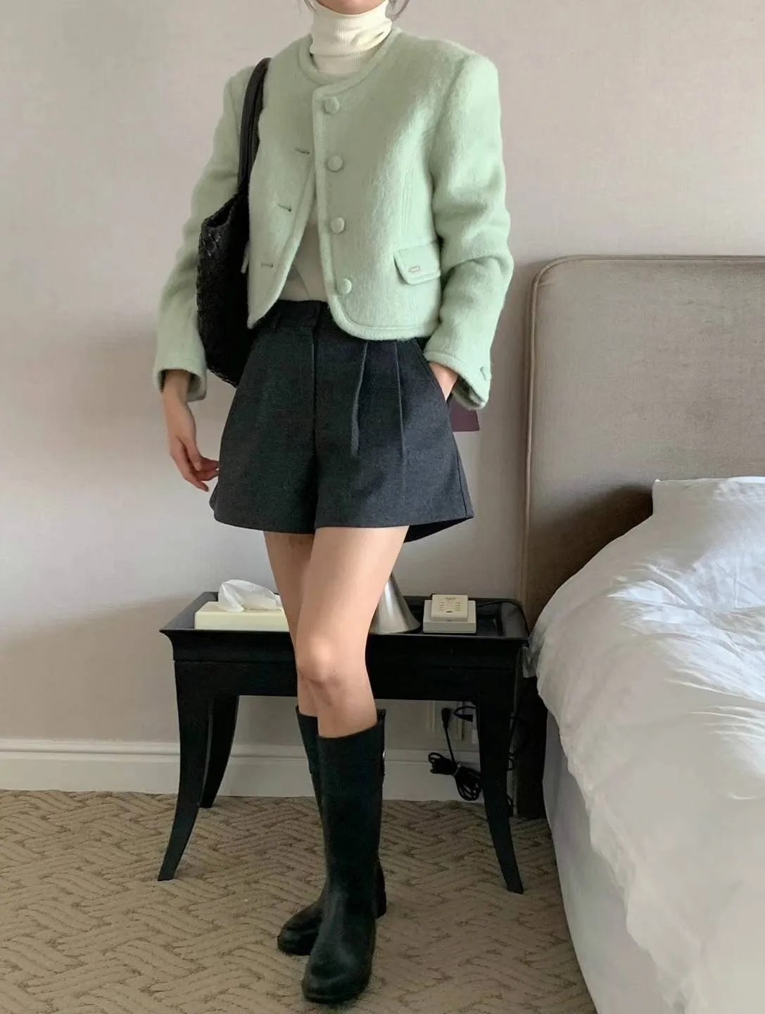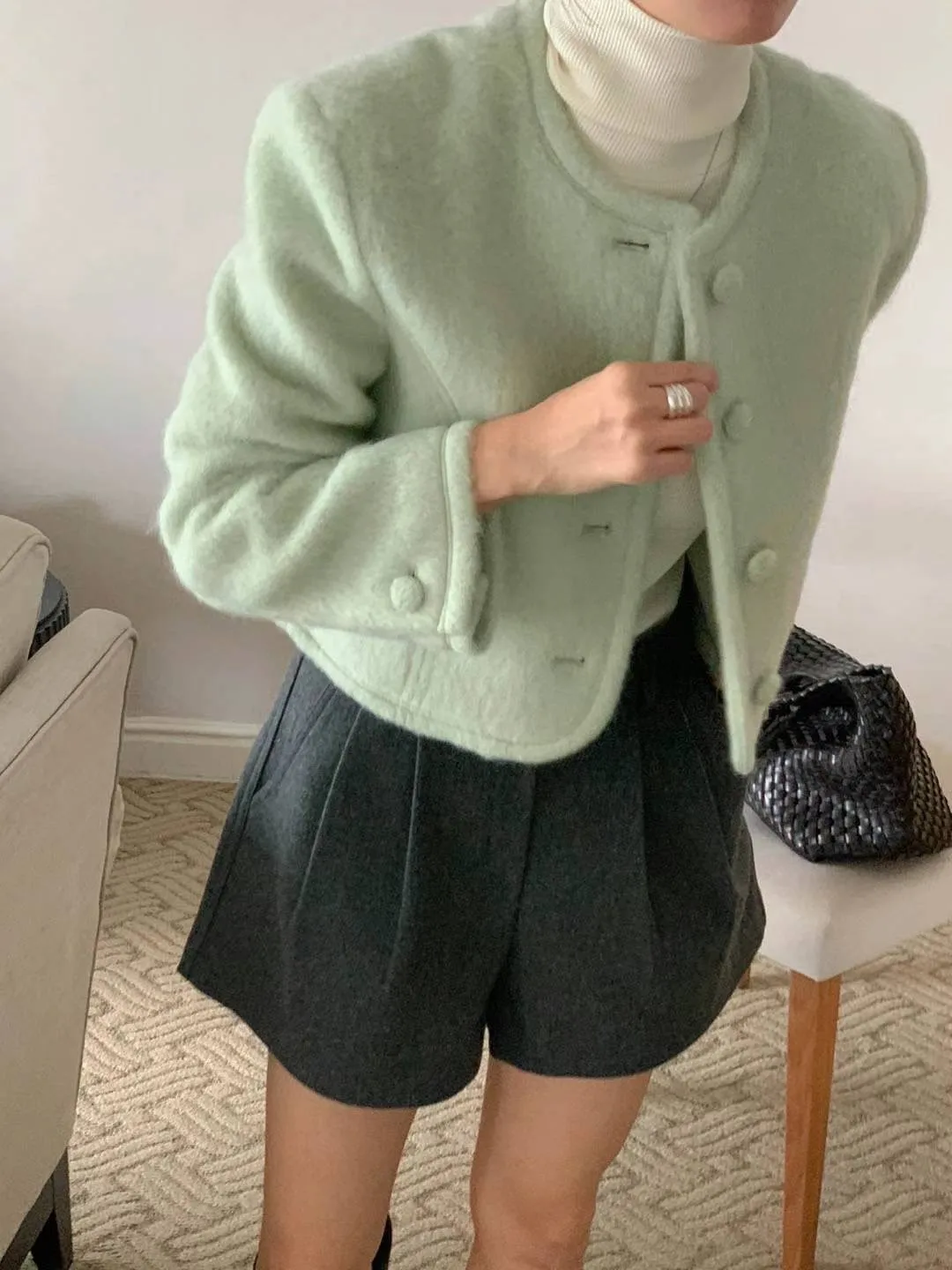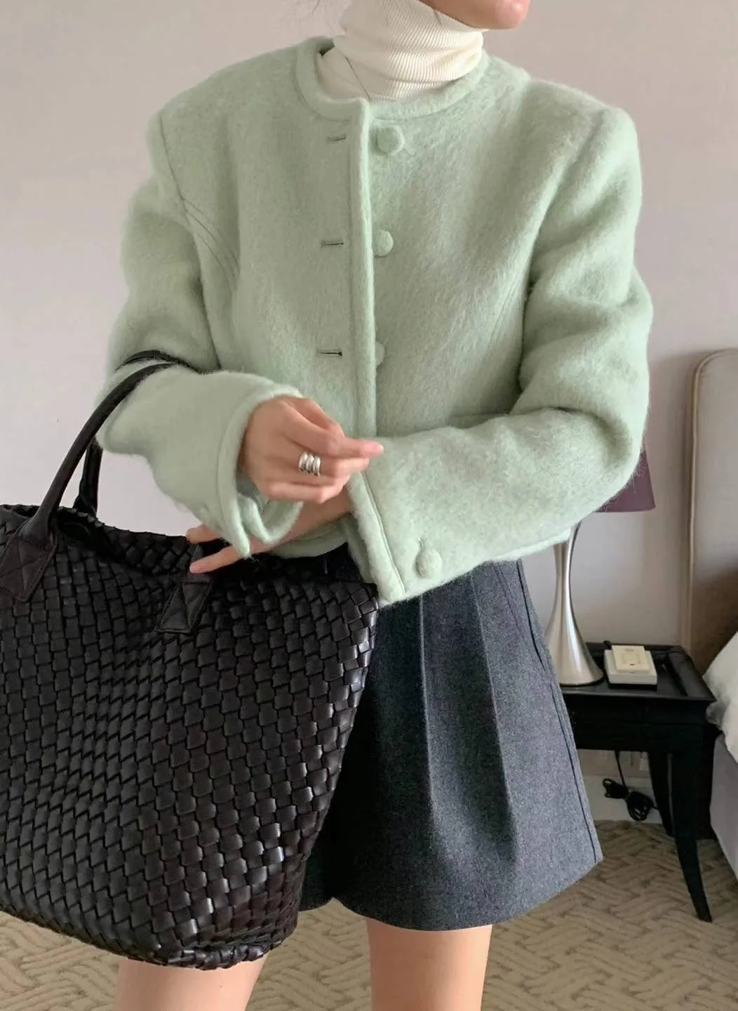 羊毛70% 視覺高級 排釦穿脫 輕盈不重 短版好比例 穿到M號