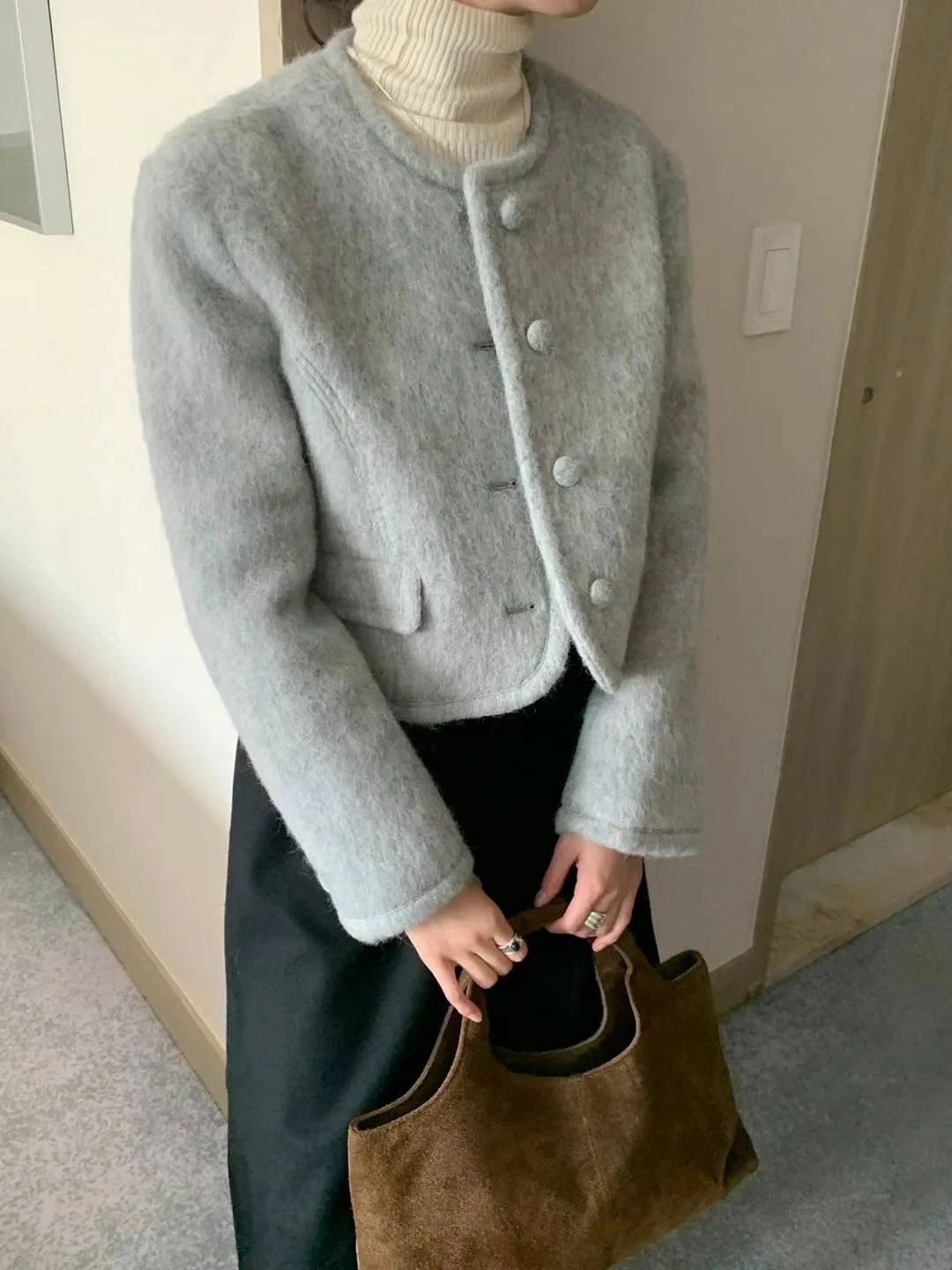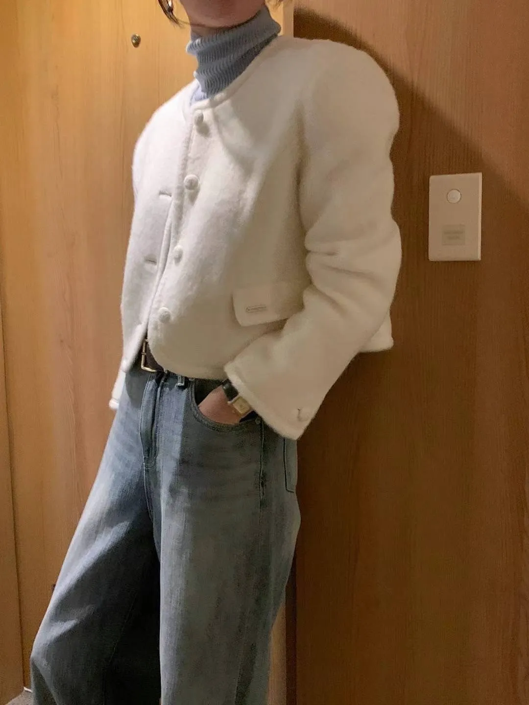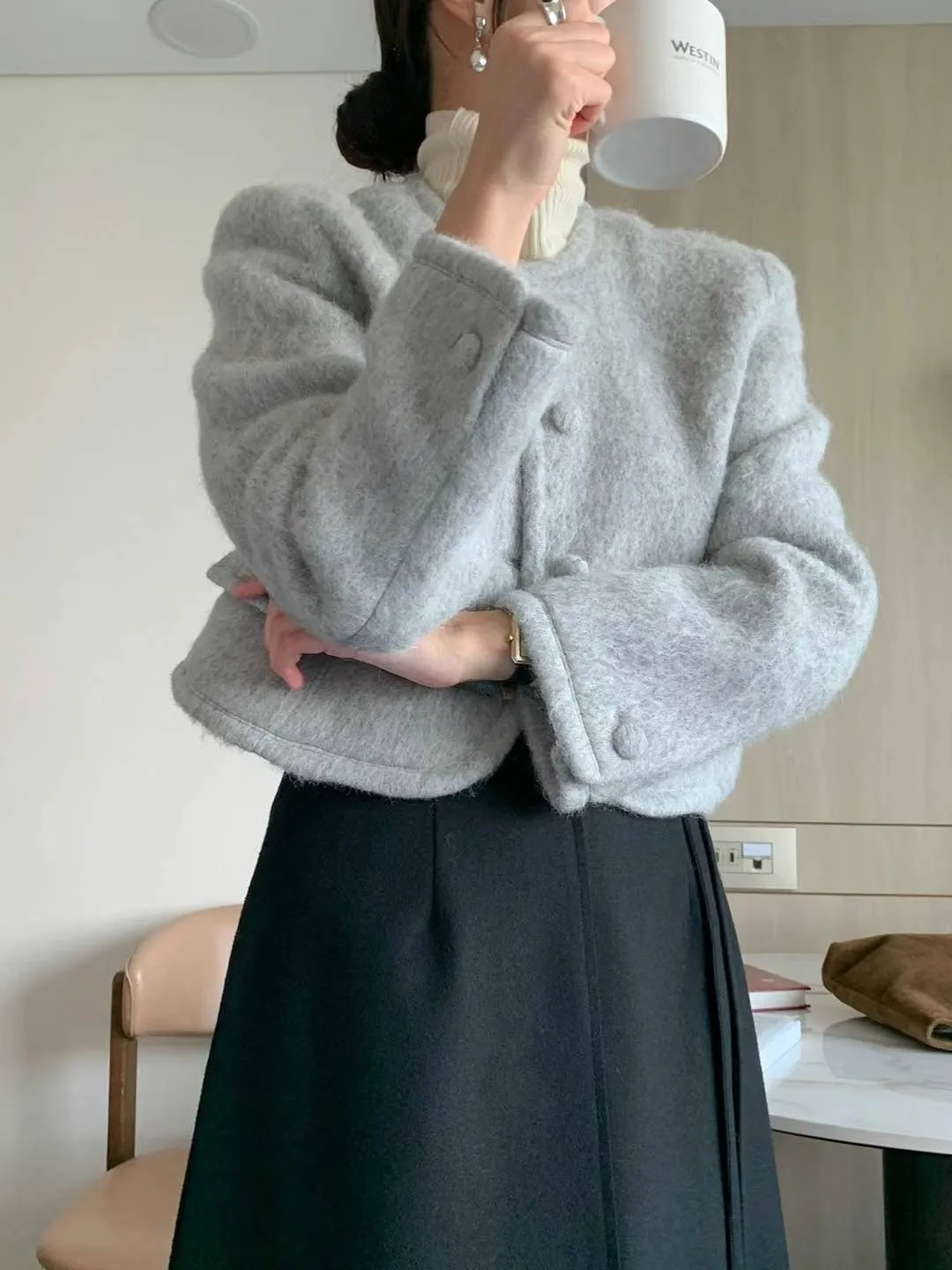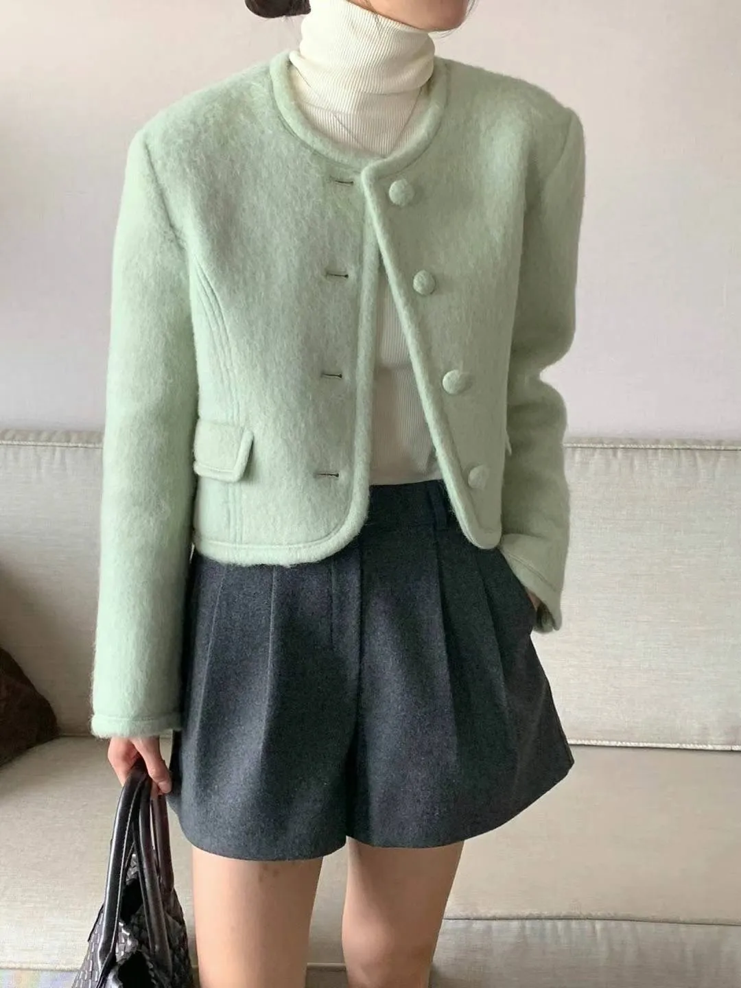 羊毛70% 視覺高級 排釦穿脫 輕盈不重 短版好比例 穿到M號