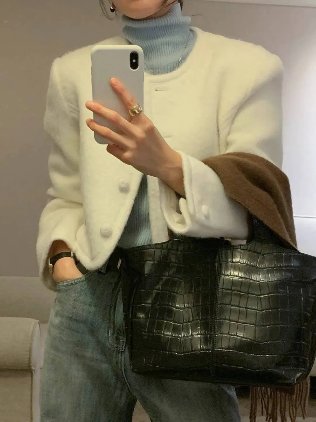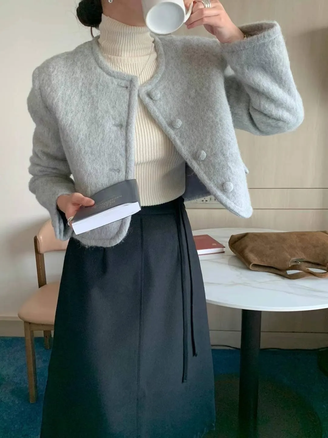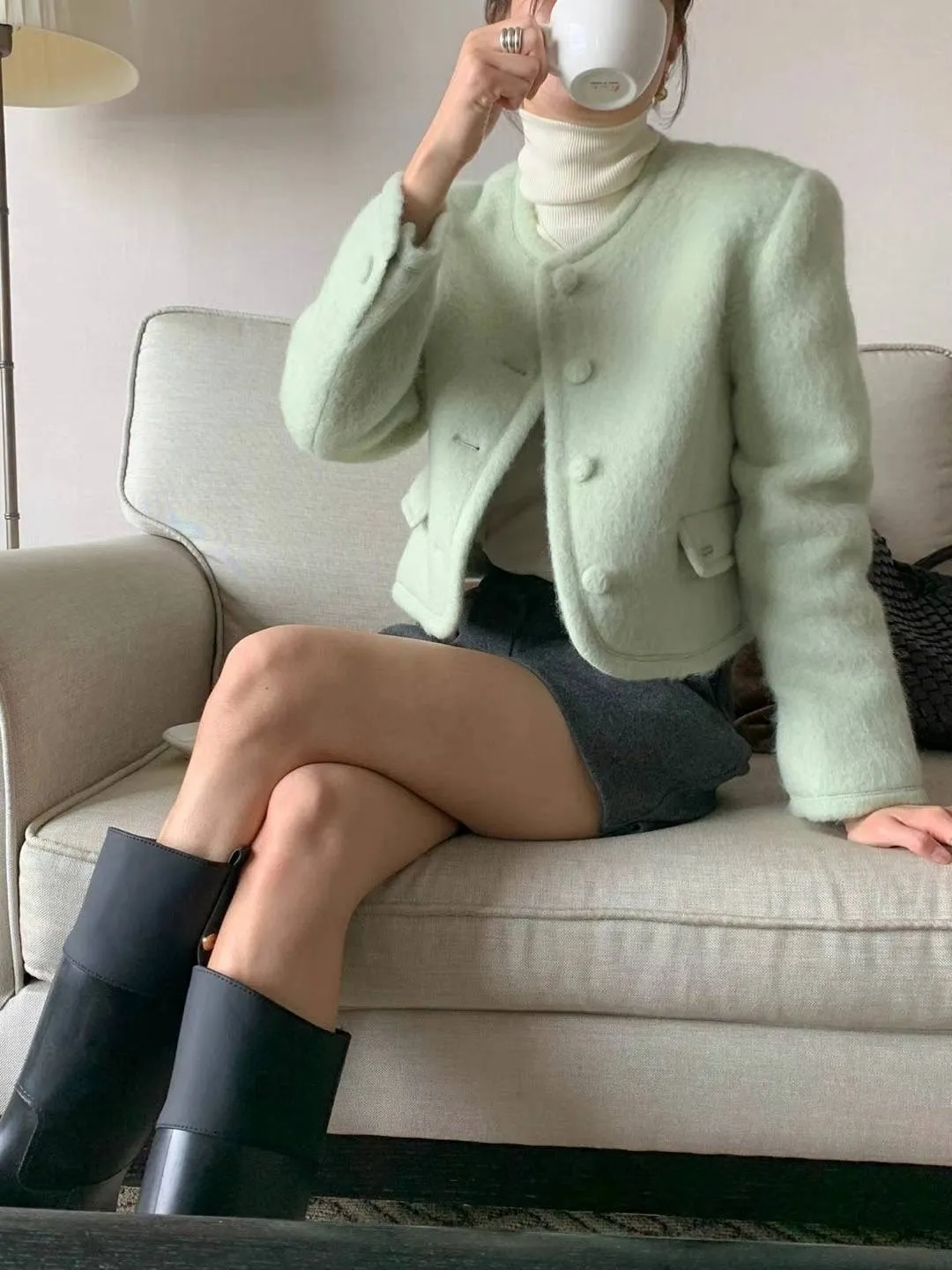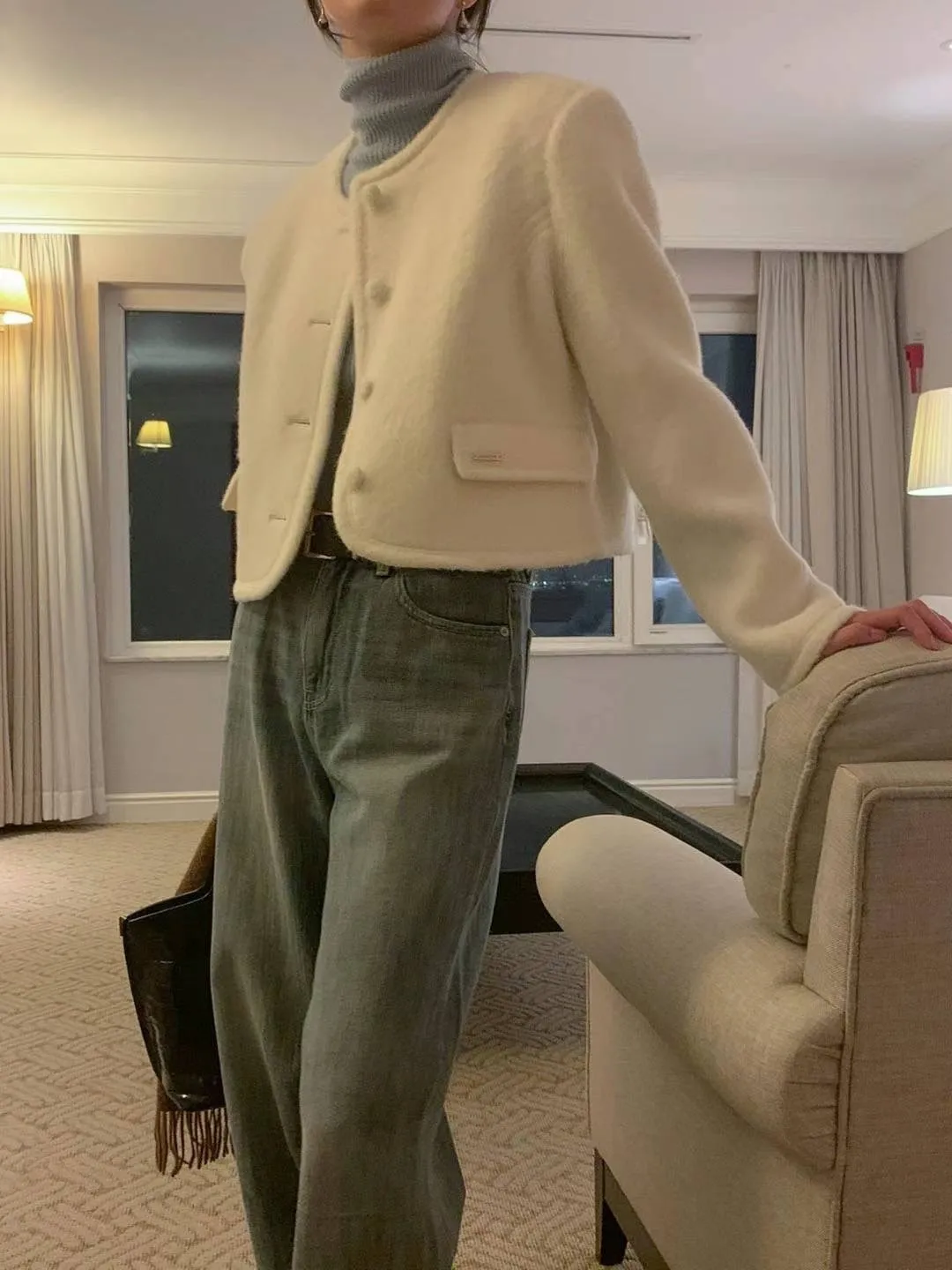 羊毛70% 視覺高級 排釦穿脫 輕盈不重 短版好比例 穿到M號