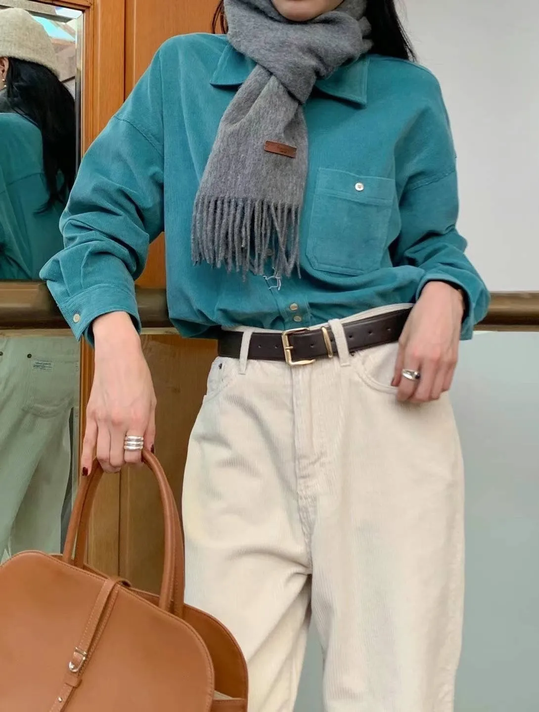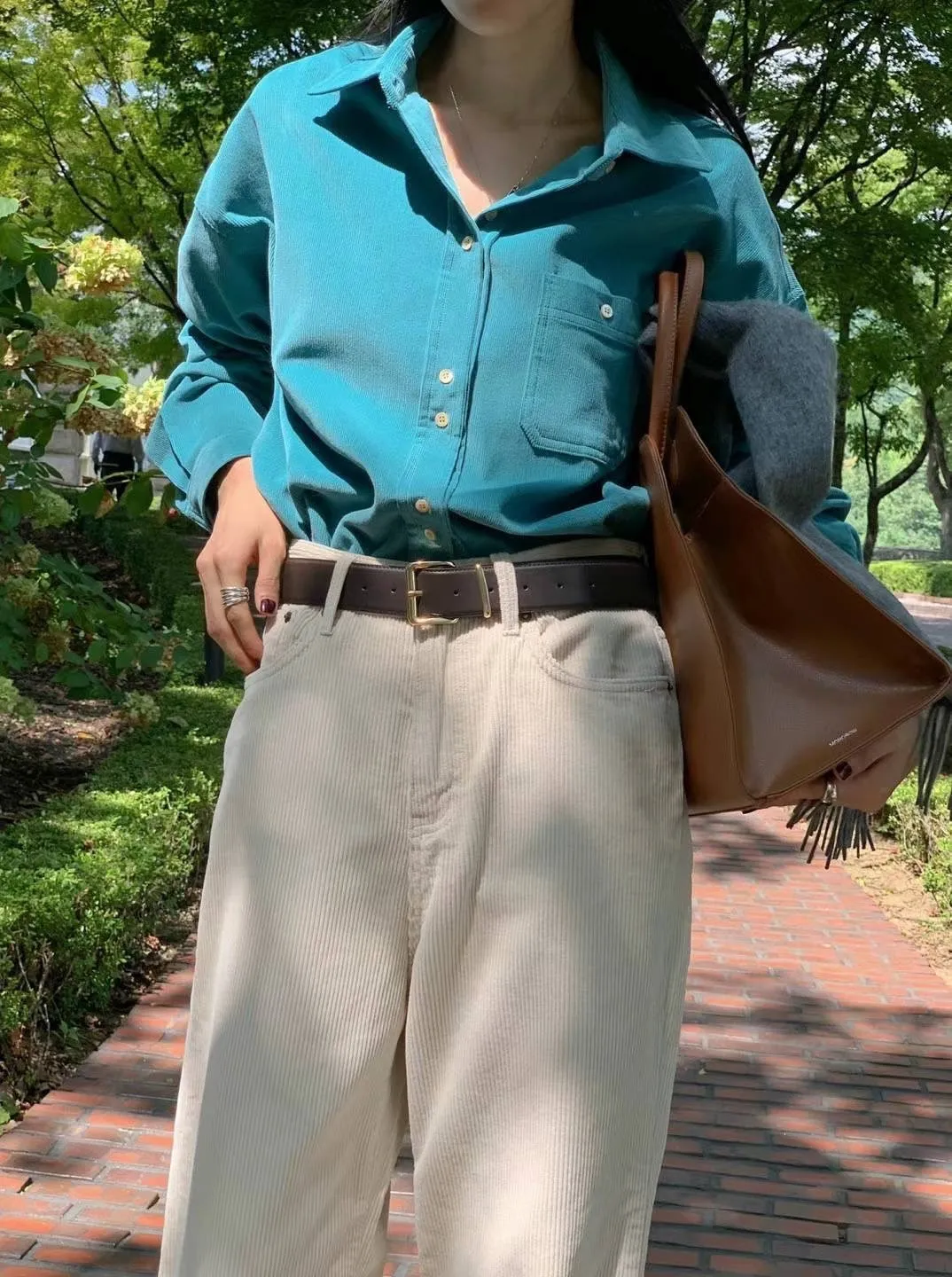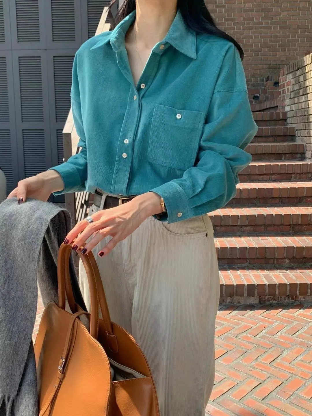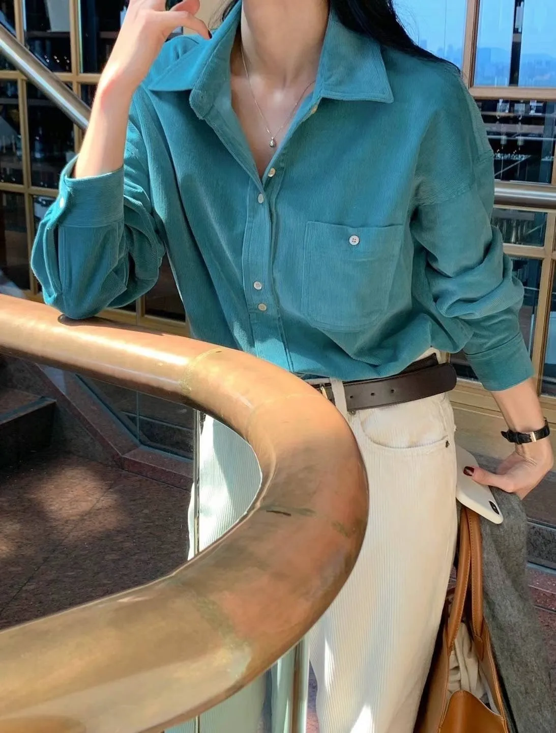 LV639質感燈芯絨單口袋襯衫 米 綠 咖 官網價$940 永恆甜甜價$910