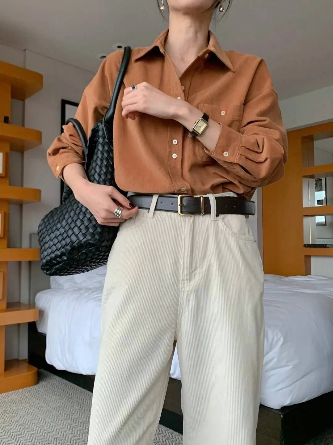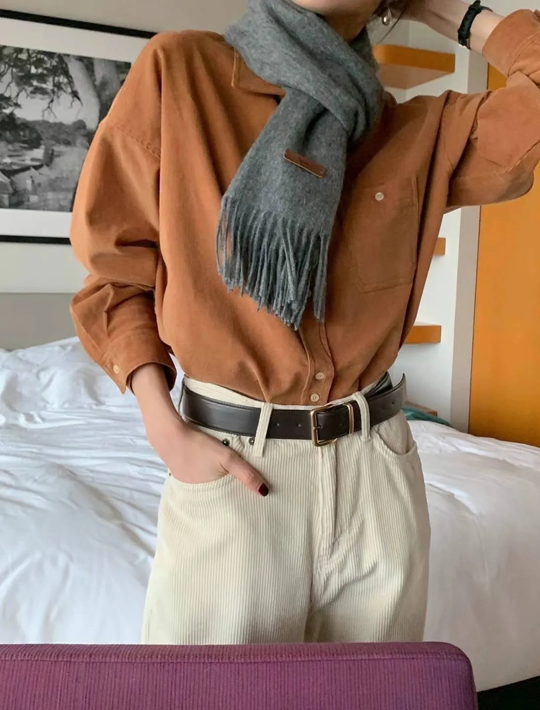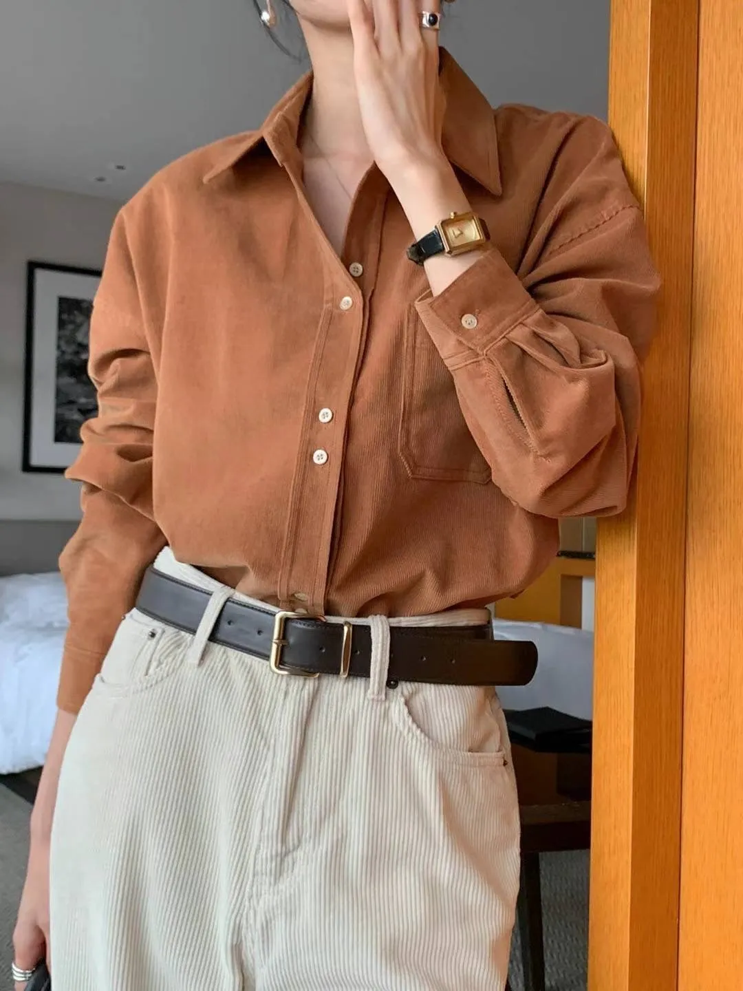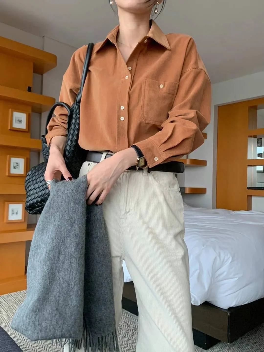 LV639質感燈芯絨單口袋襯衫 米 綠 咖 官網價$940 永恆甜甜價$910